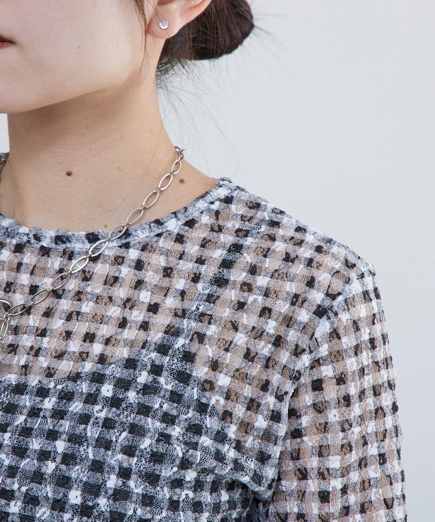 蕾絲格紋印花 上衣