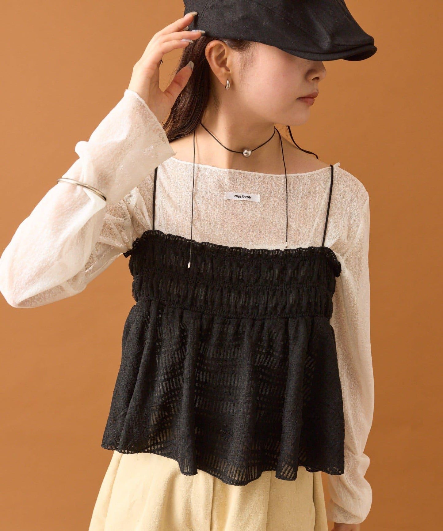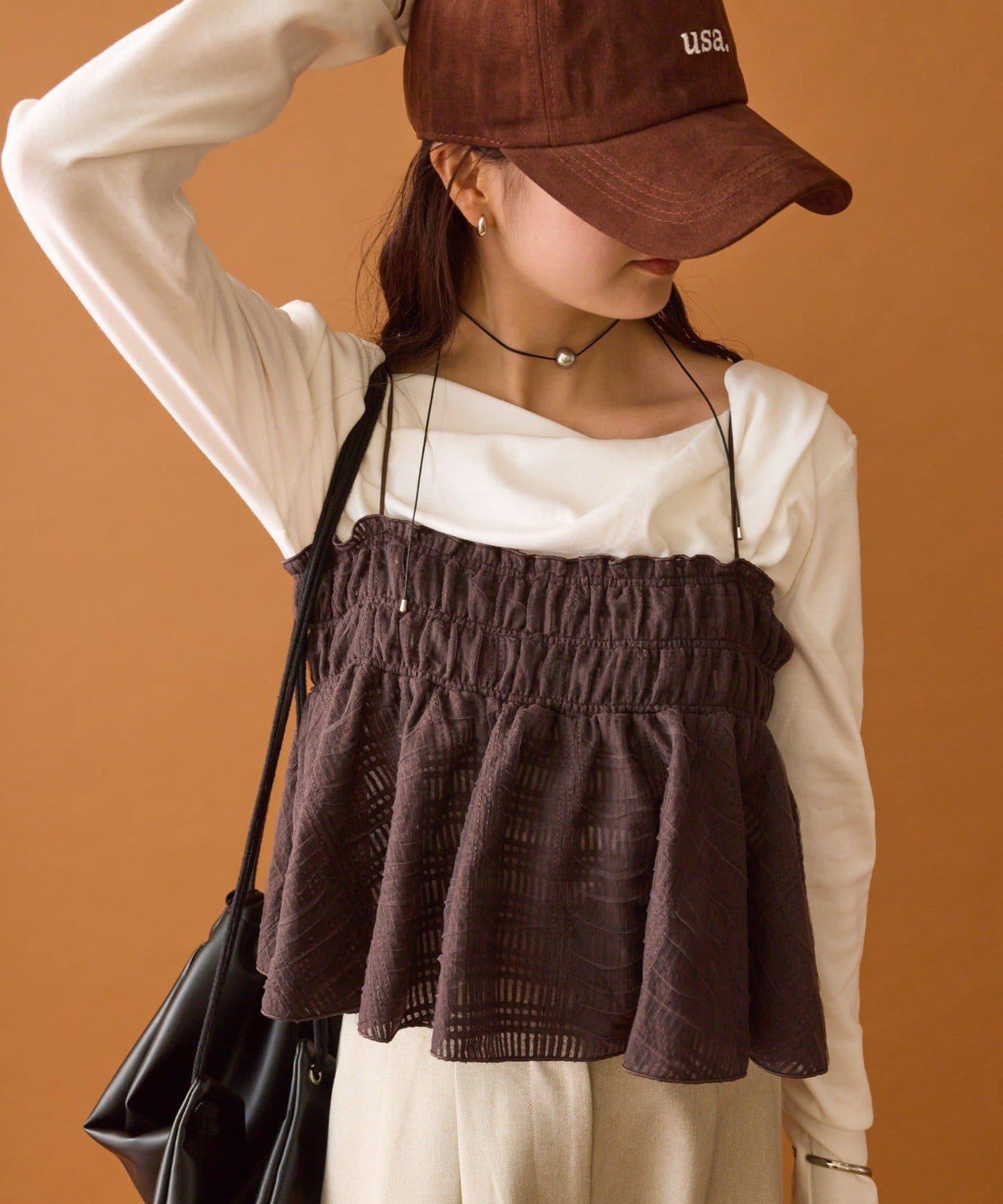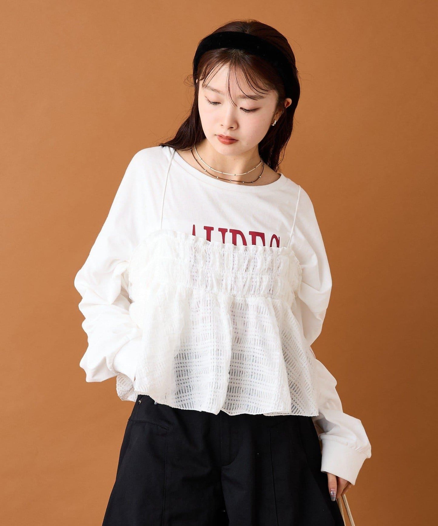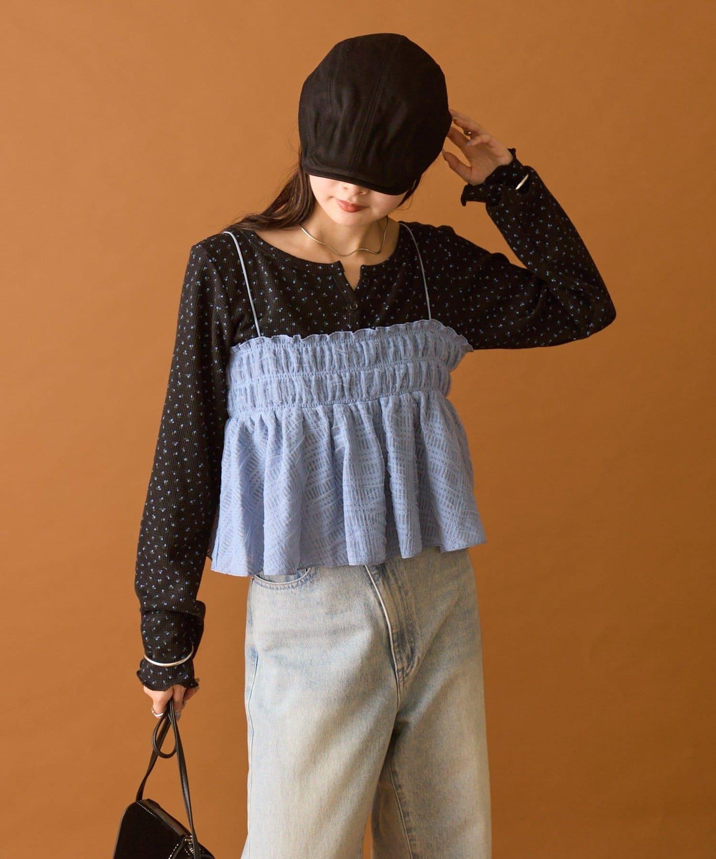 在簡單的搭配中加入這件單品,會給人一種華麗的印象。