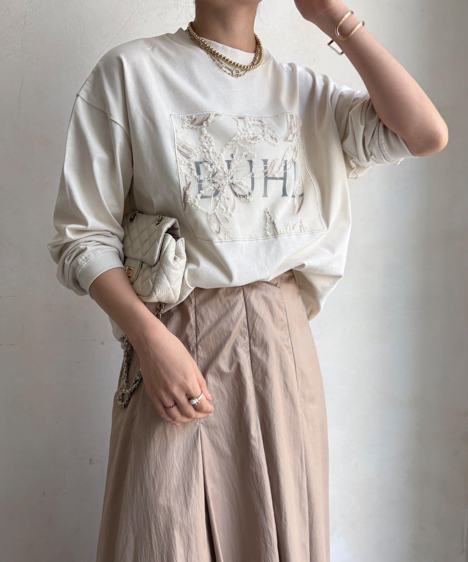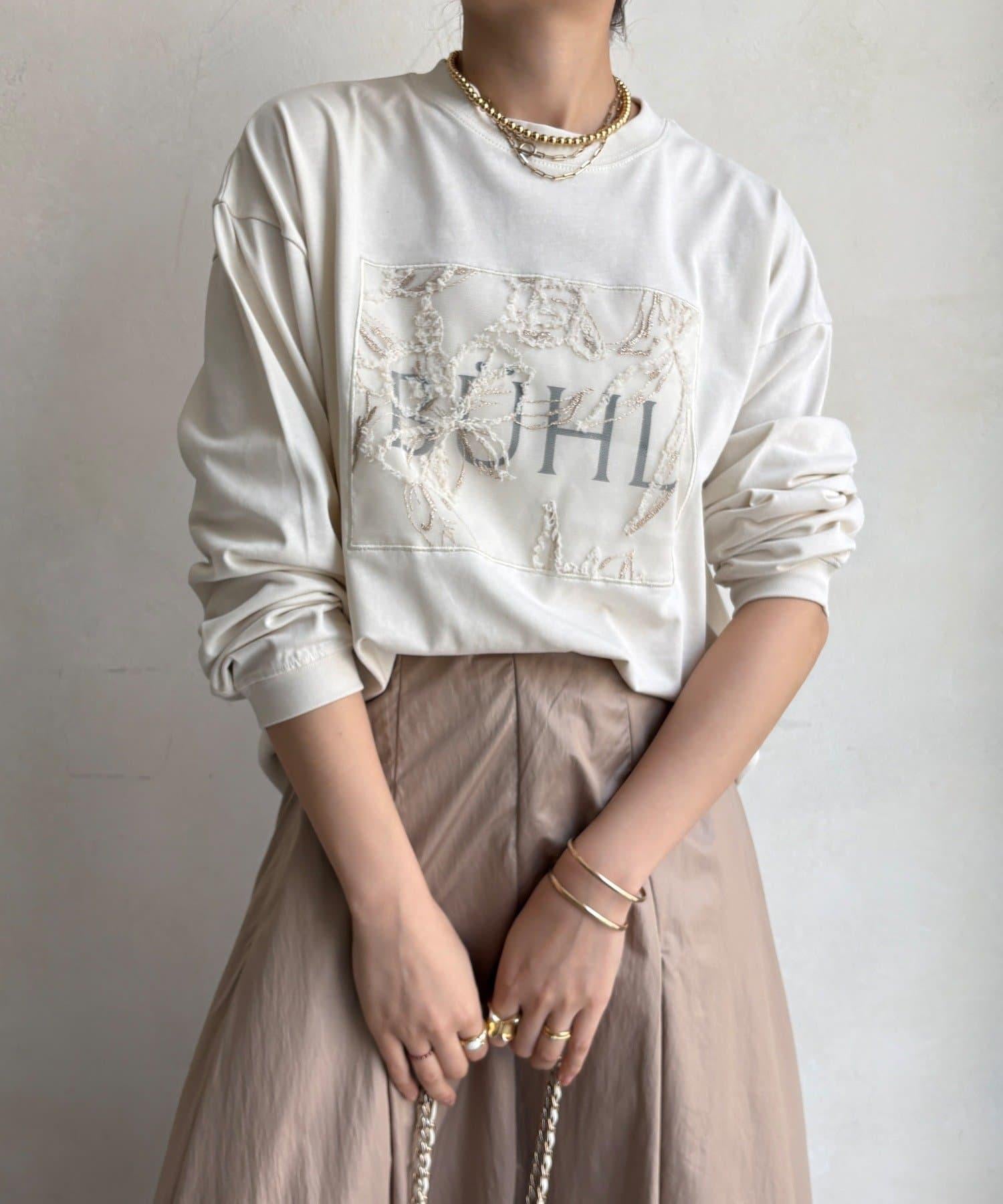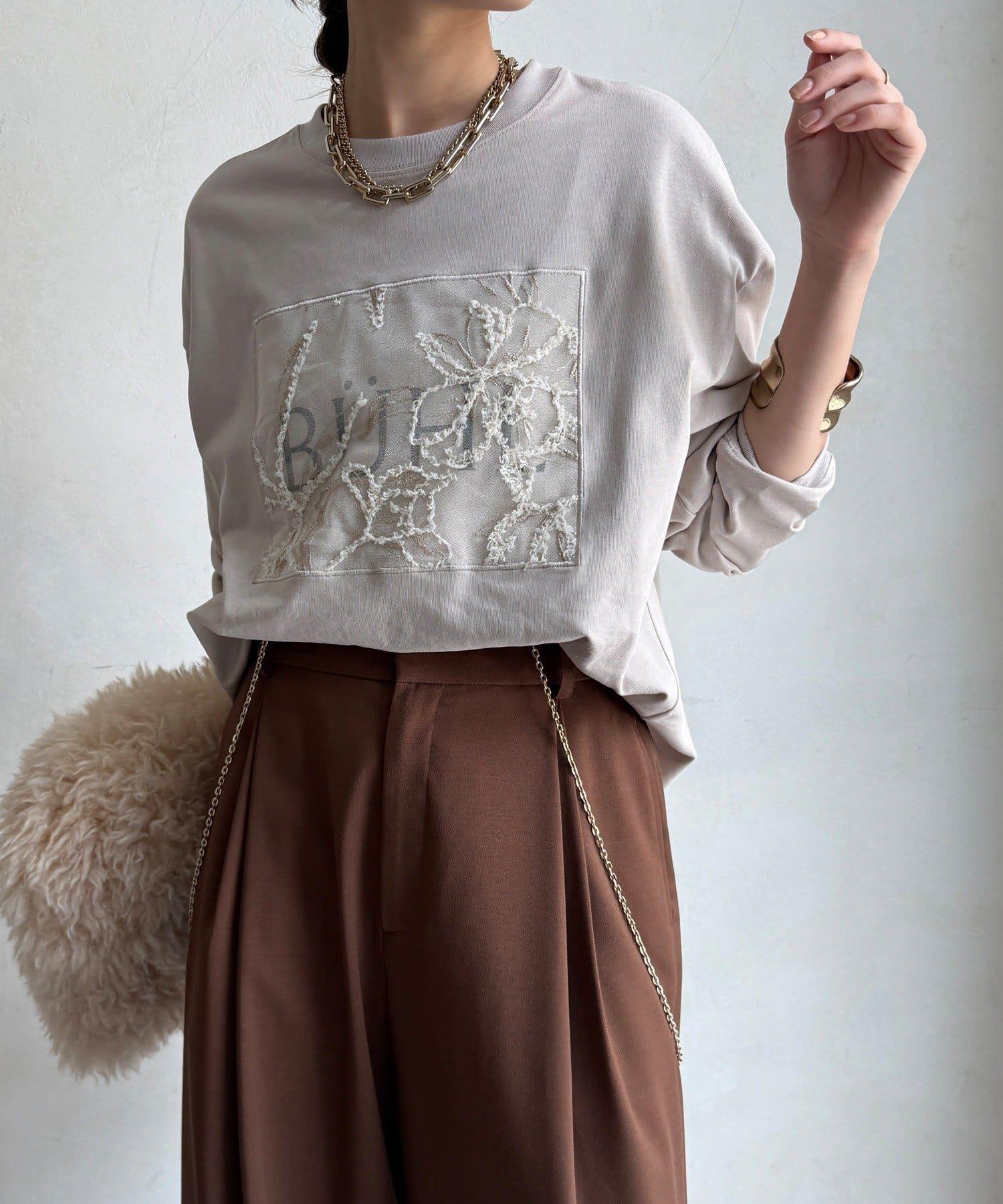 這款單品將休閒長 T 與精緻蕾絲相結合,打造出不甜膩的成人女性風格。