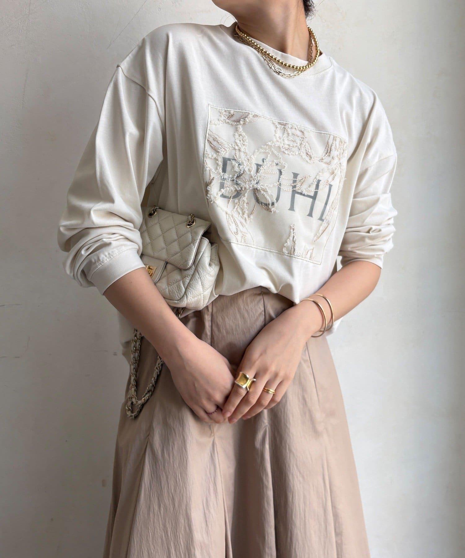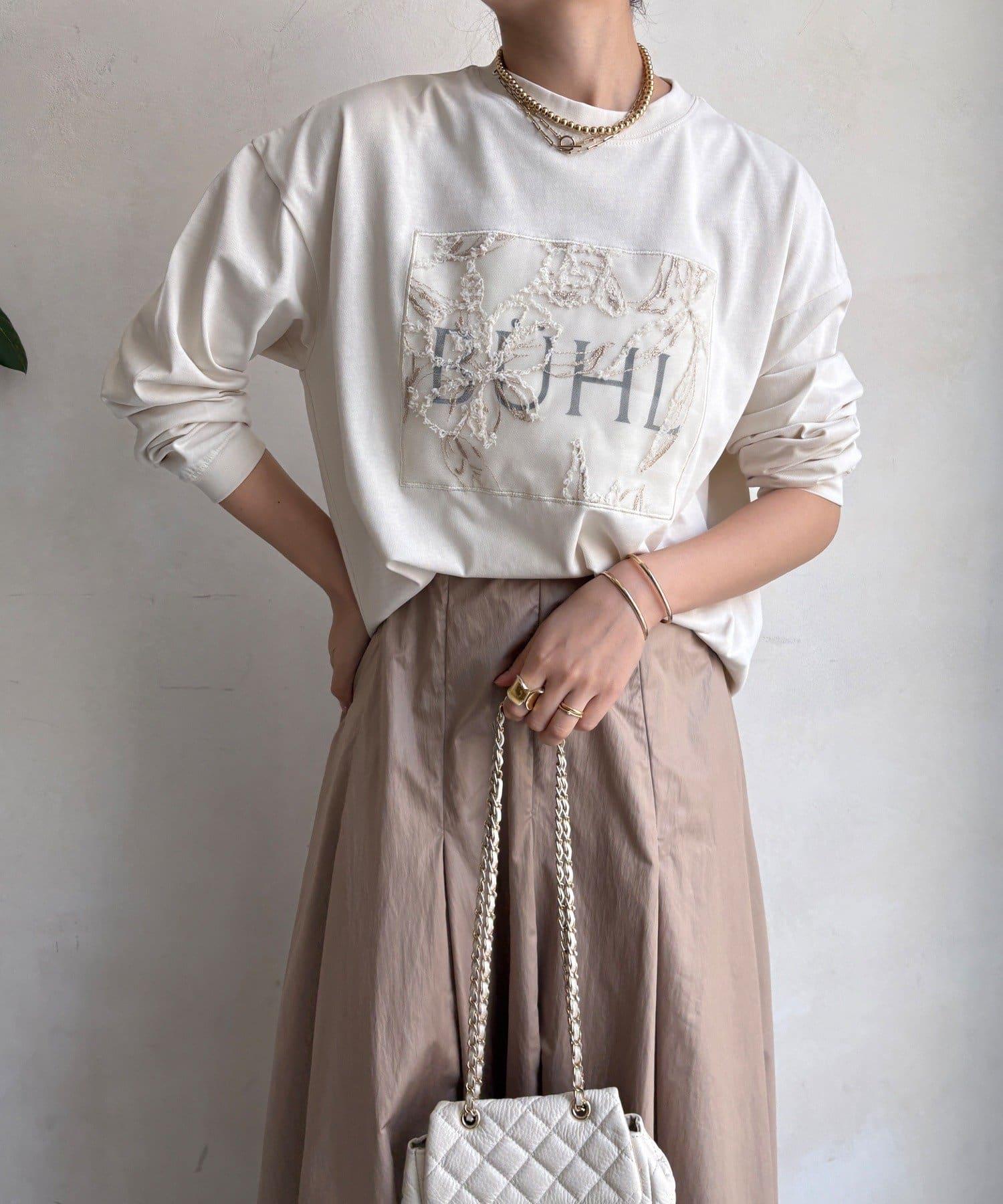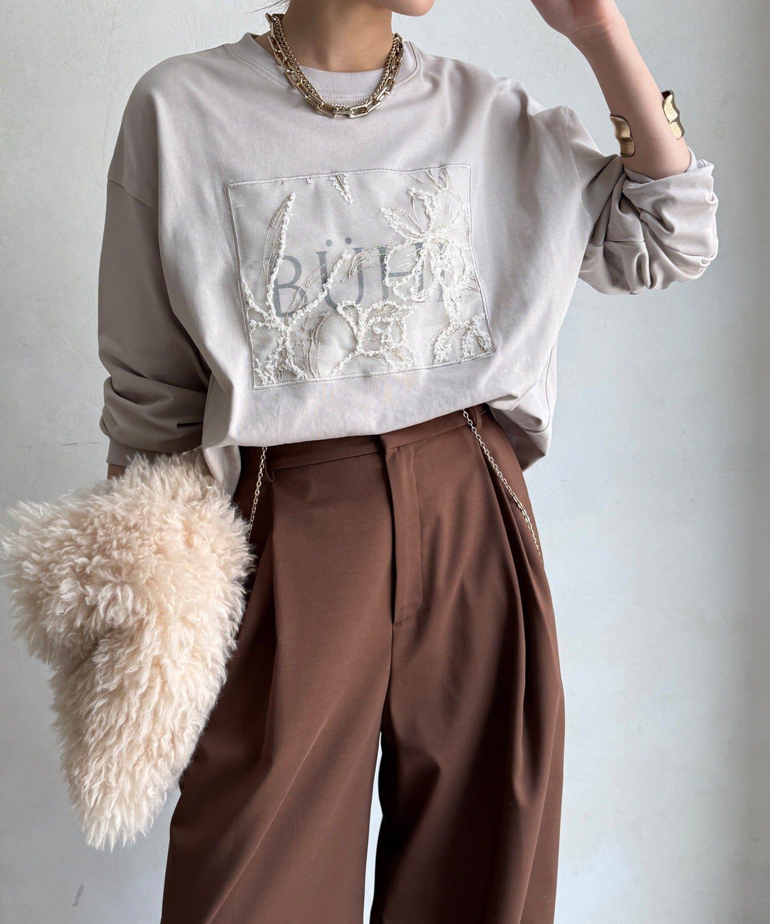 這款單品將休閒長 T 與精緻蕾絲相結合,打造出不甜膩的成人女性風格。