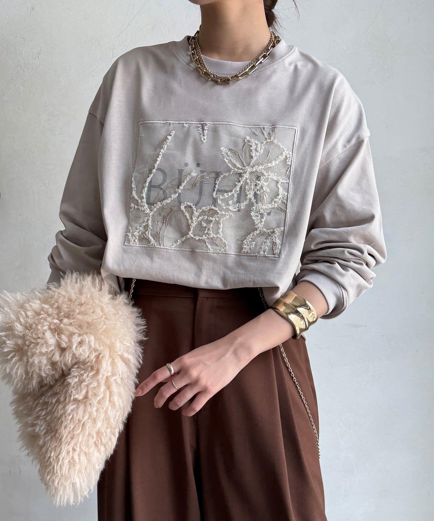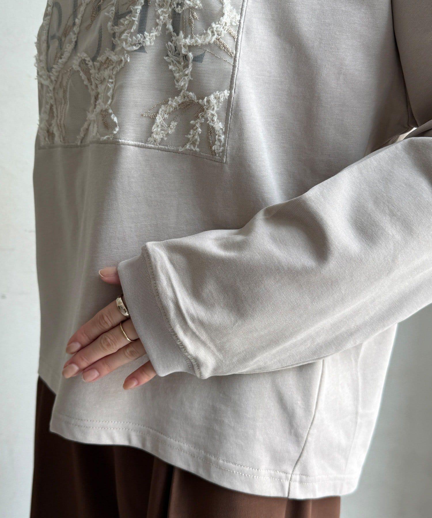 敢於將甜美的蕾絲融入休閒長 T 的設計。