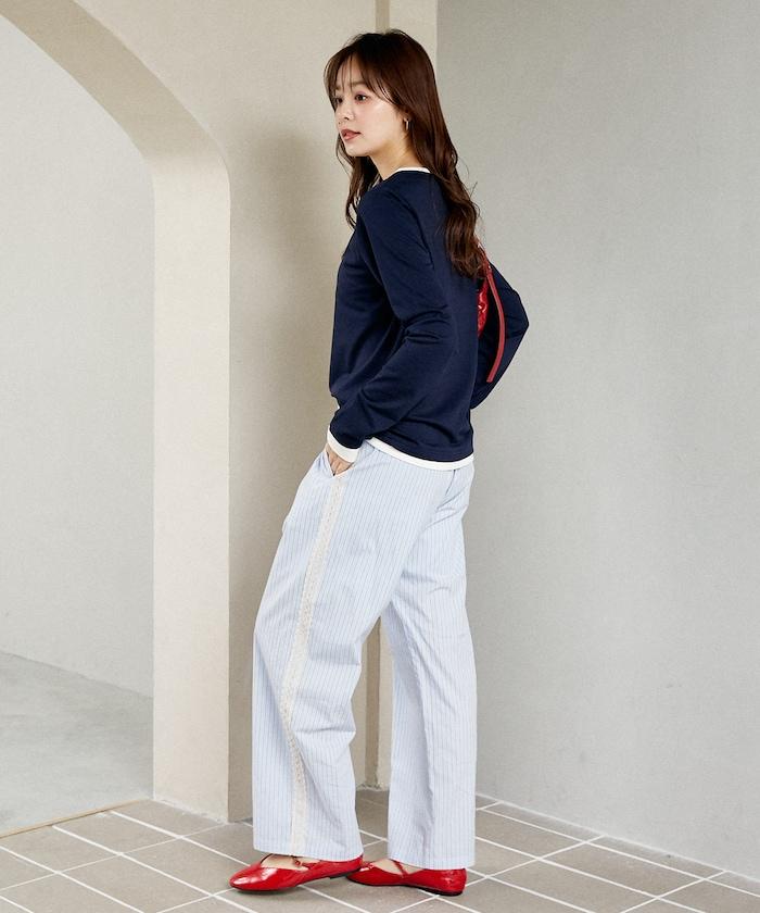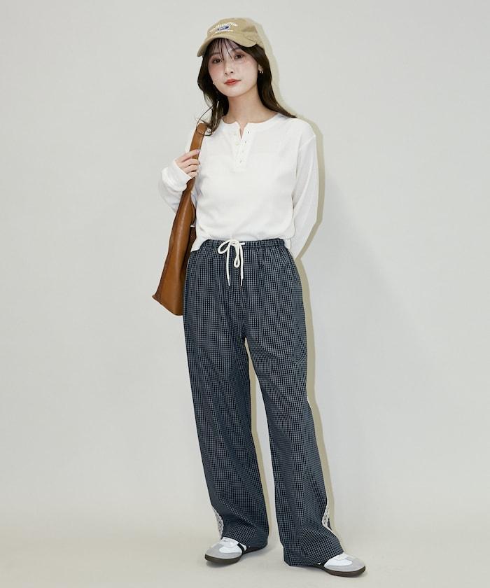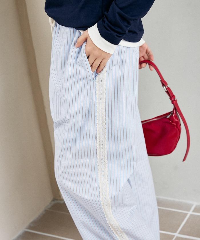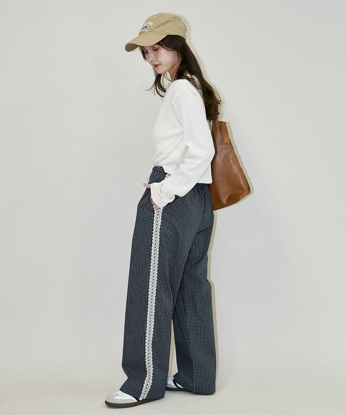 輕鬆愜意的長褲,兩側的蕾絲花邊更顯精緻。