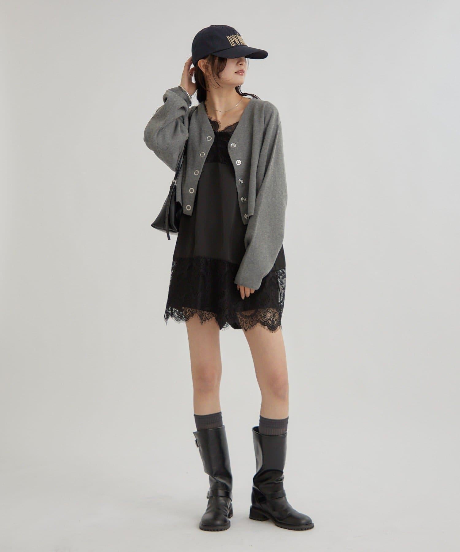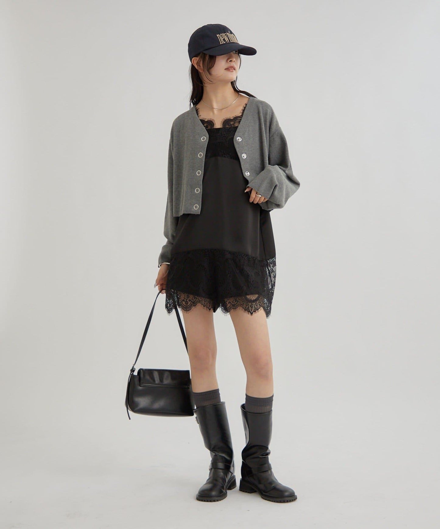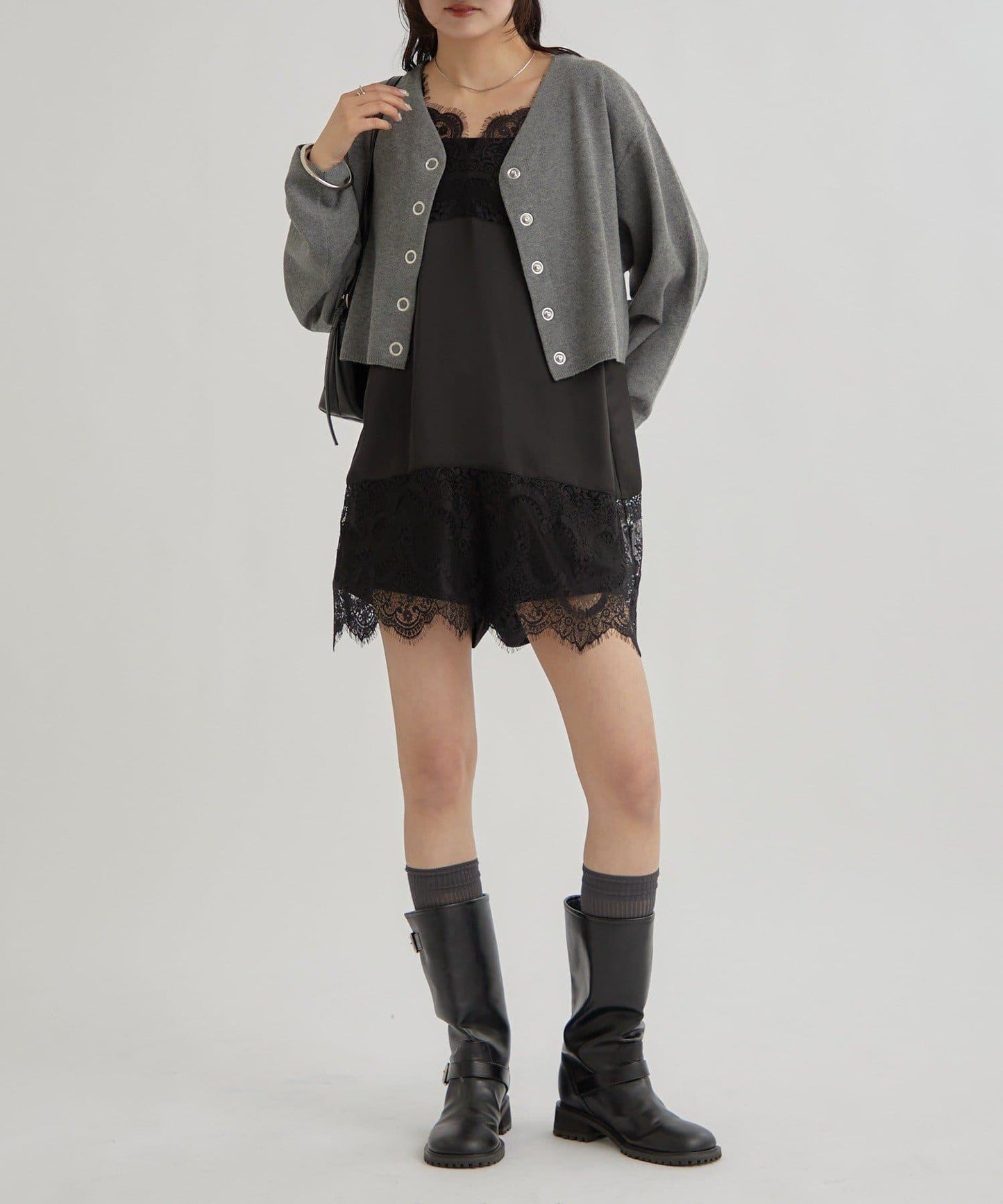 蕾絲下襬和半身裙華麗可愛,光亮的緞面面料有一種奢華感!