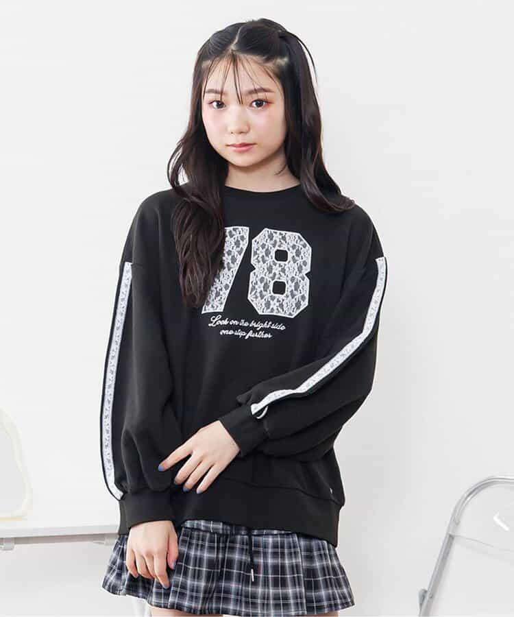 蕾絲編號裝飾寬鬆衛衣