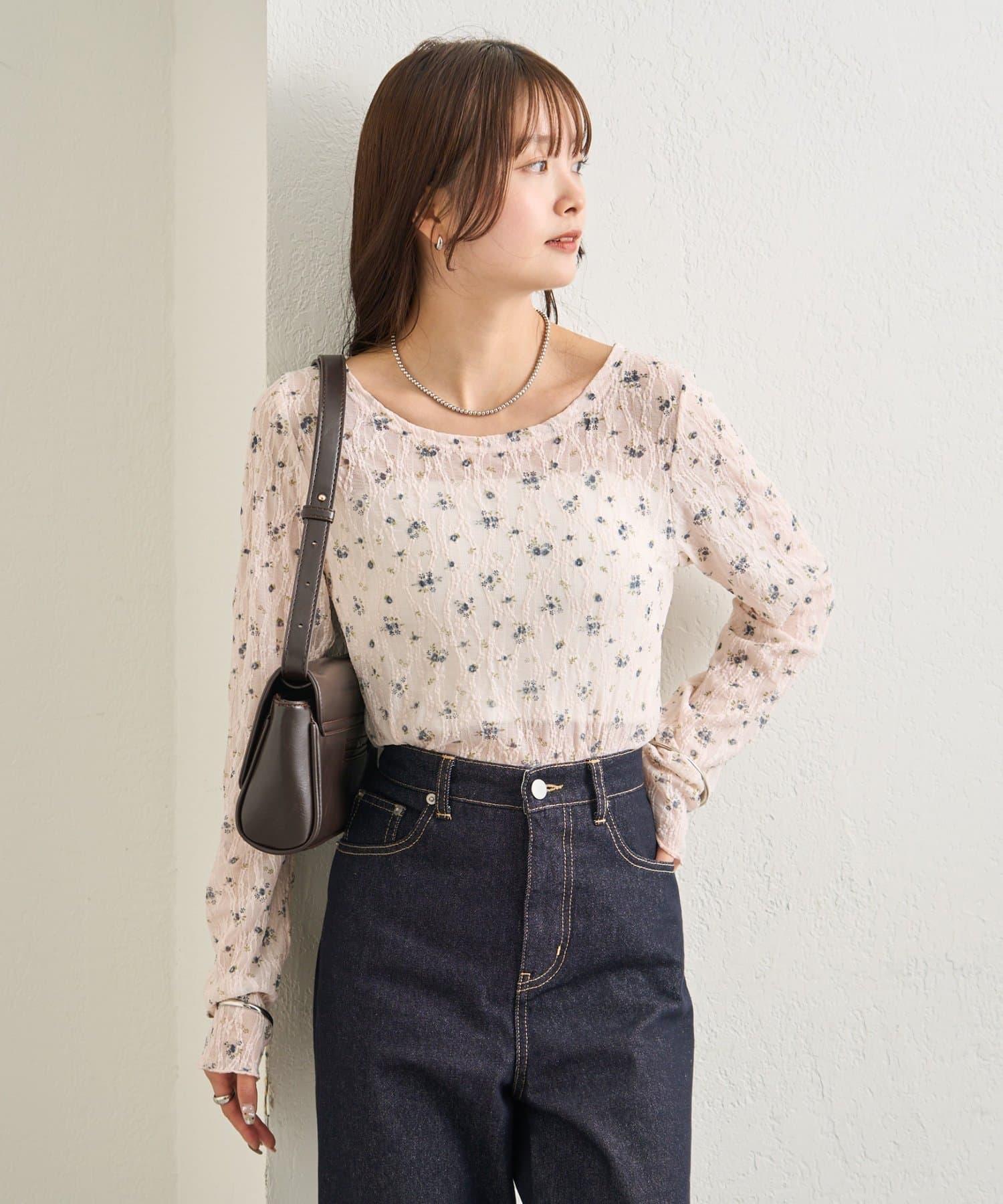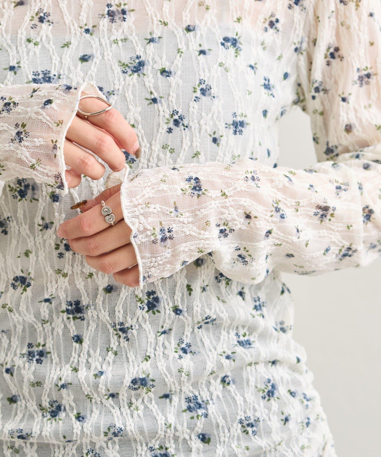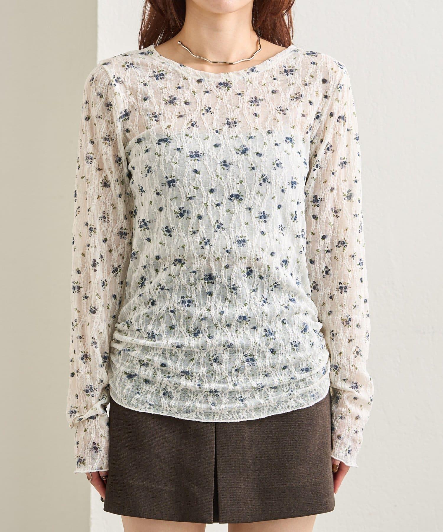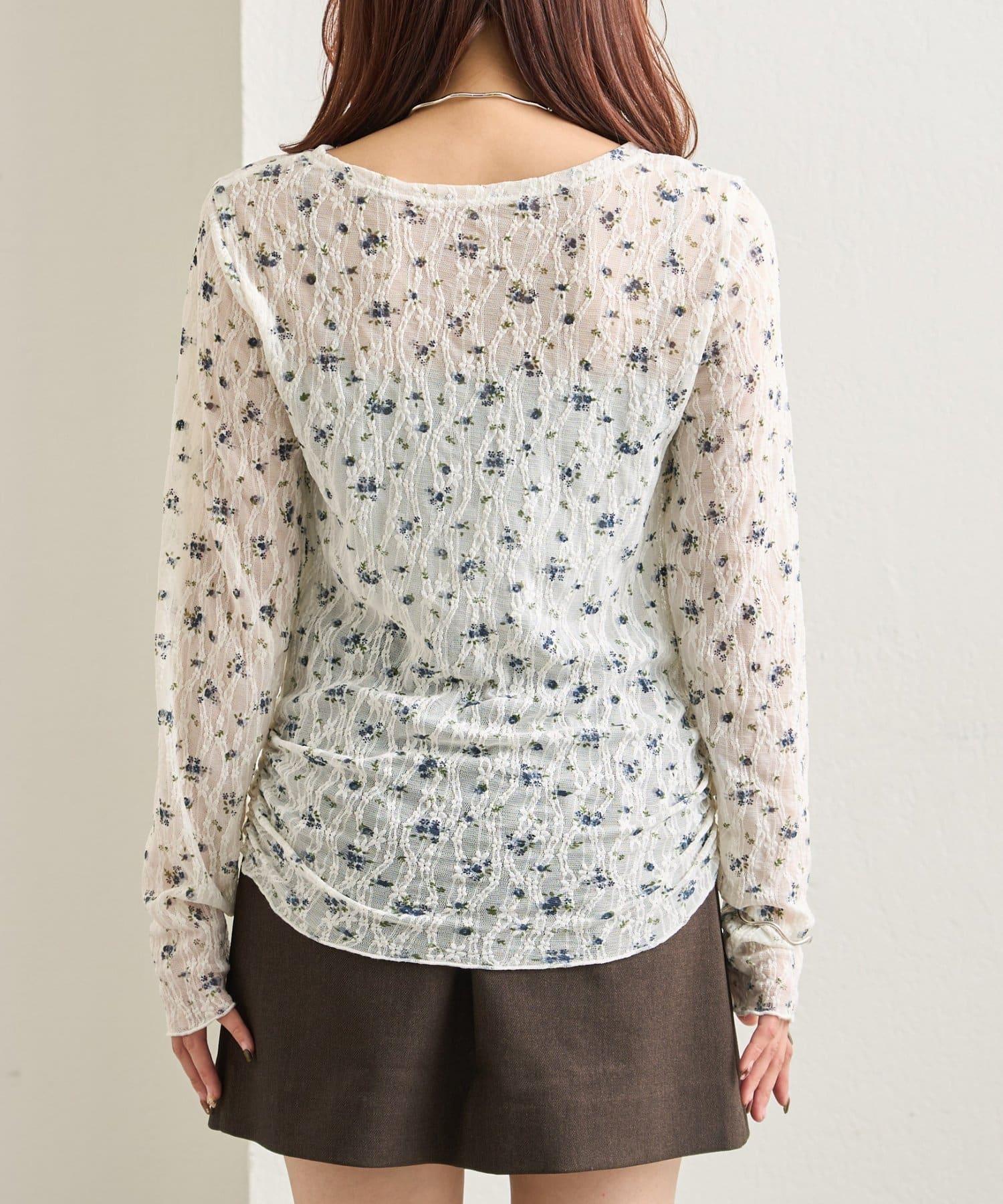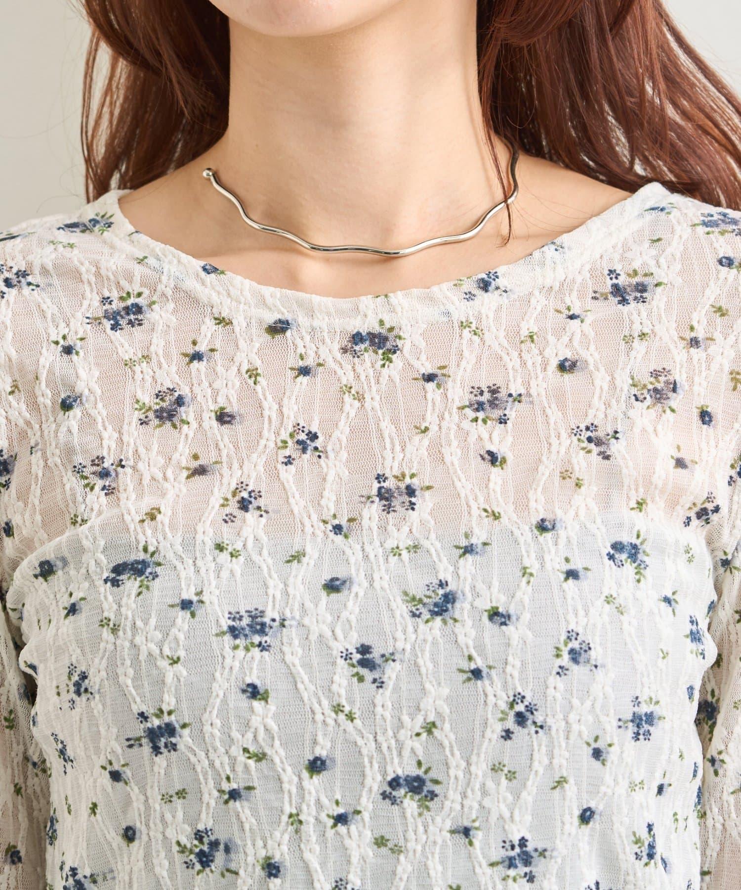 可愛中帶有恰到好處的透明感!蕾絲花卉圖案透視 T,適合多層次款式。