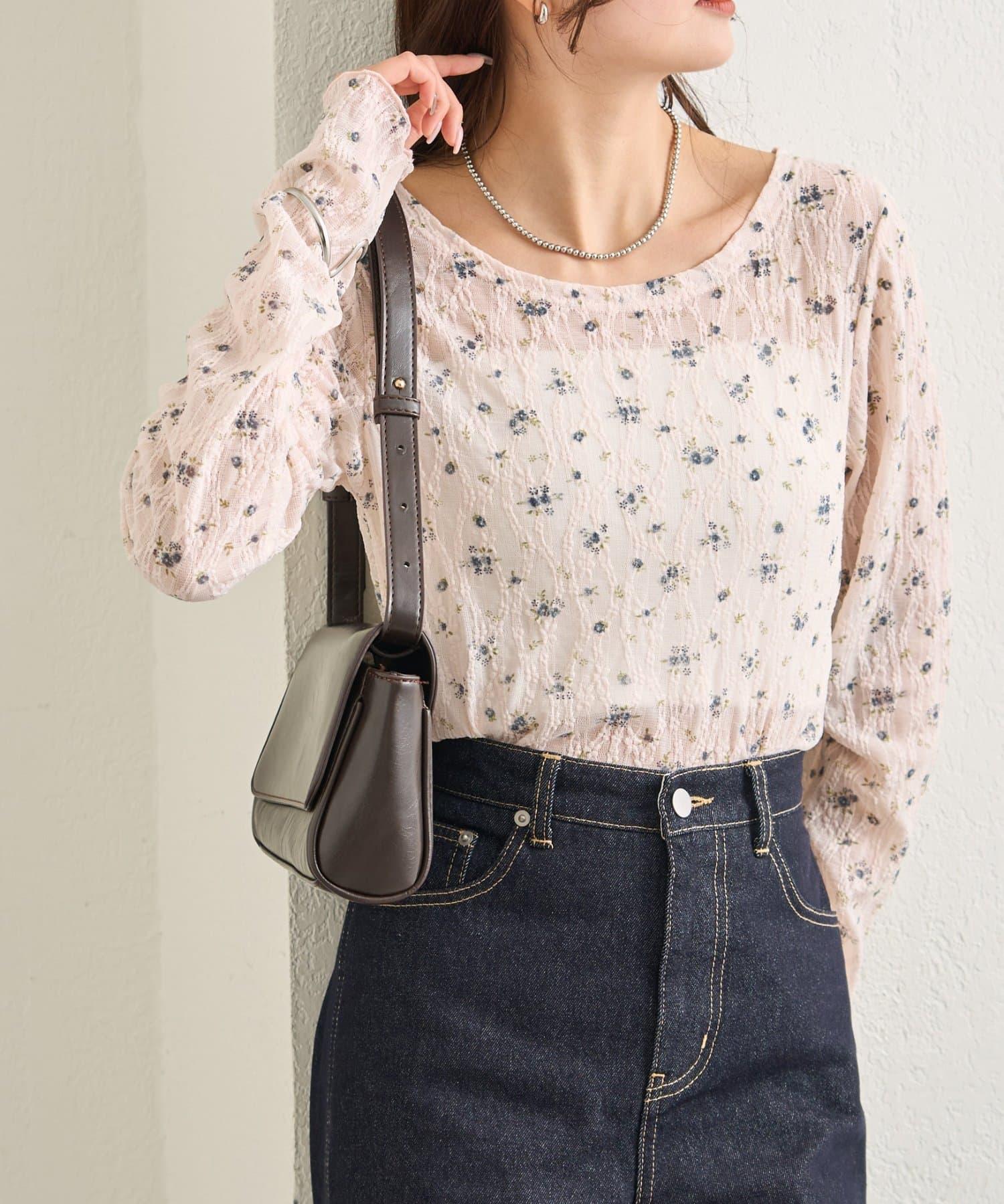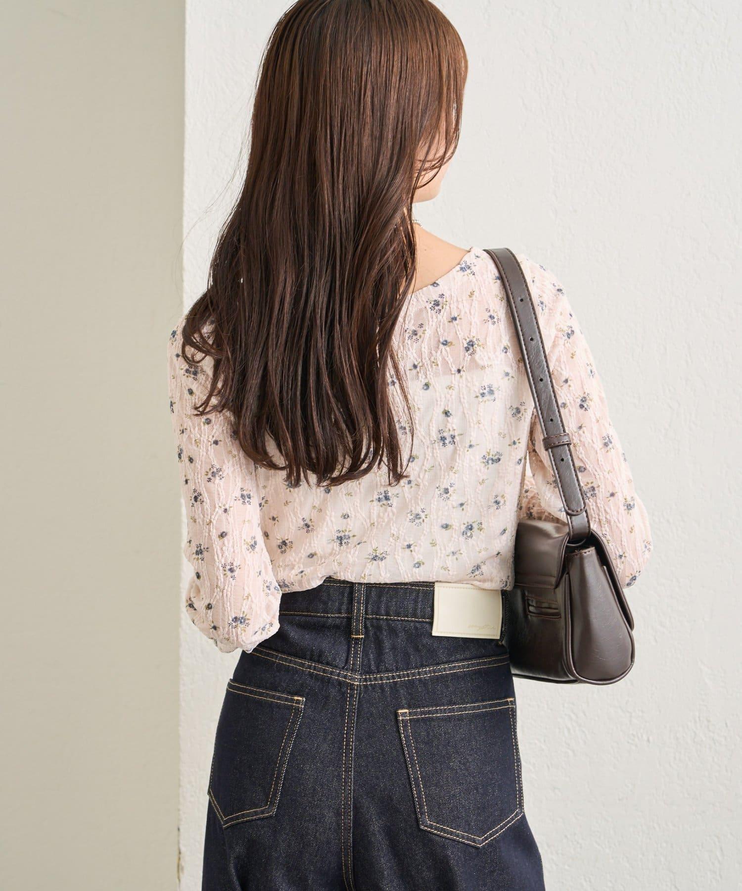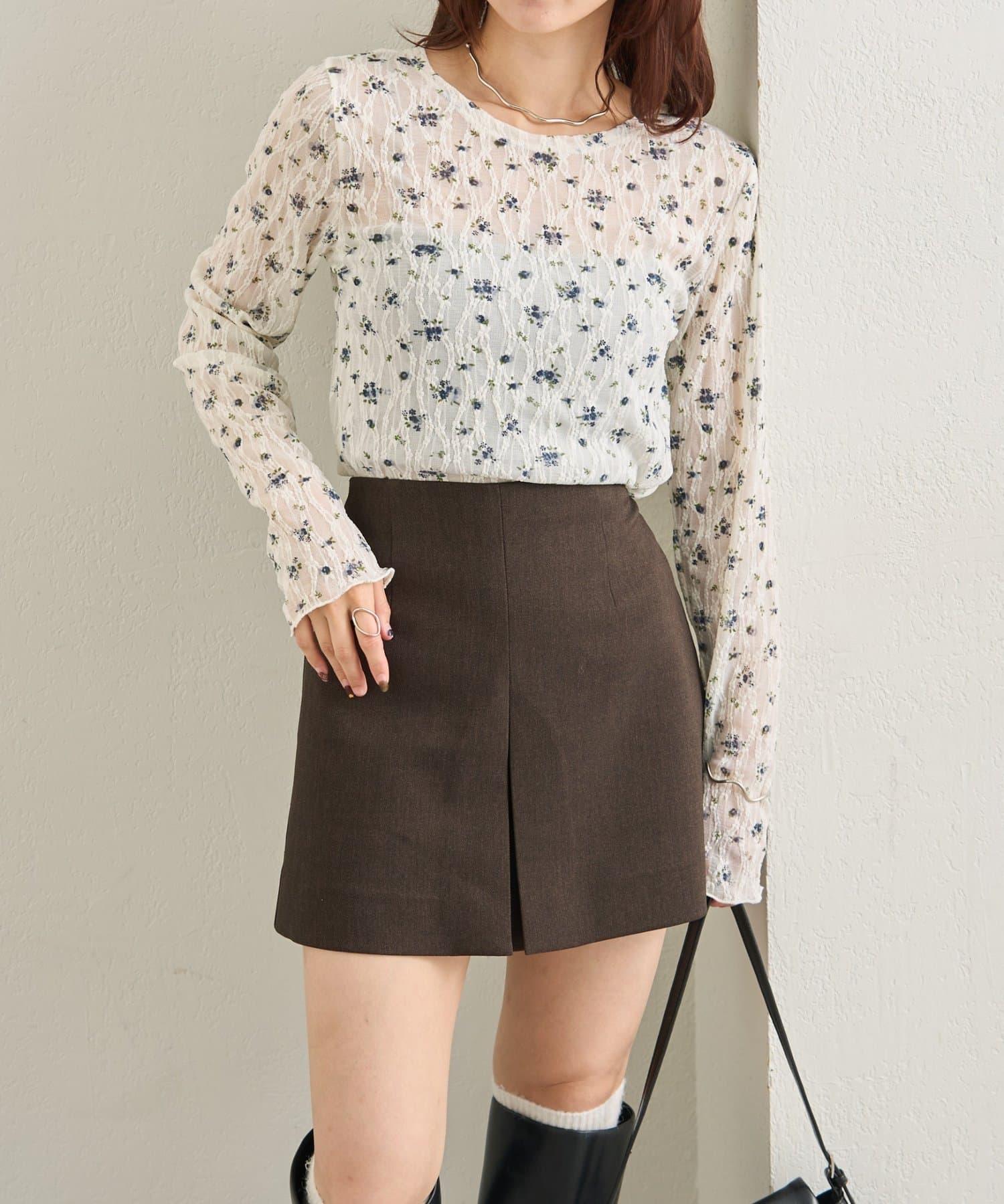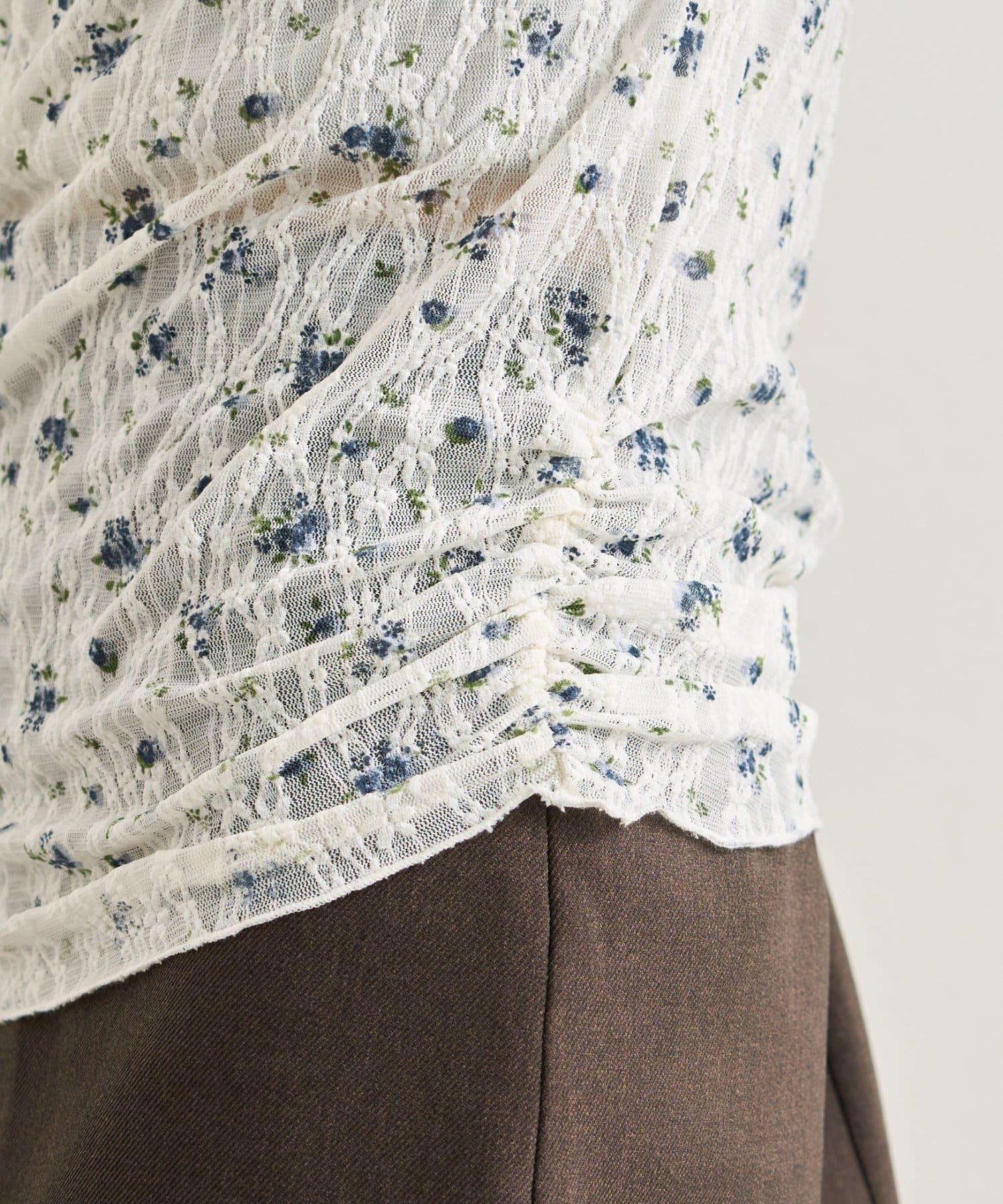 可愛中帶有恰到好處的透明感!蕾絲花卉圖案透視 T,適合多層次款式。