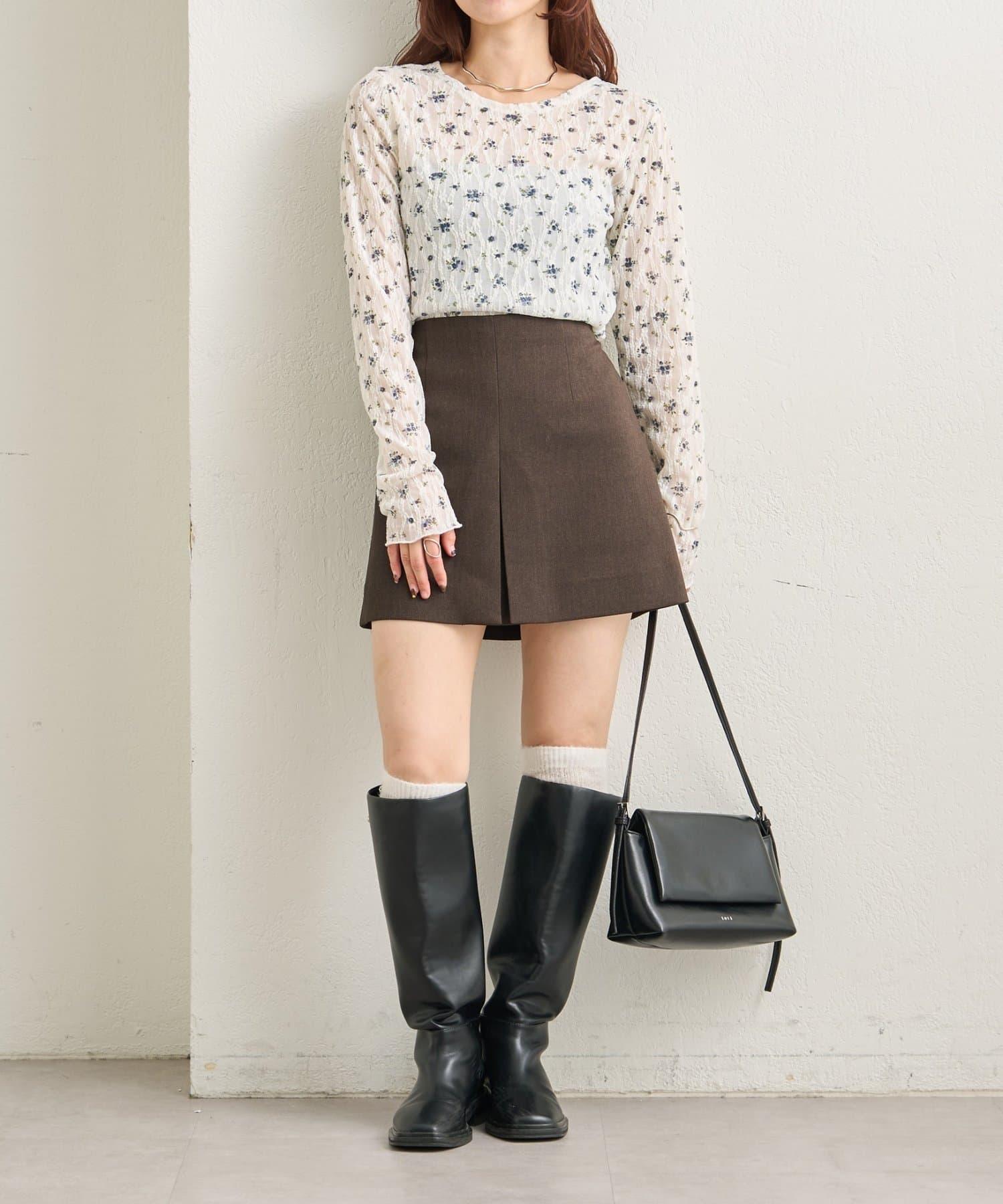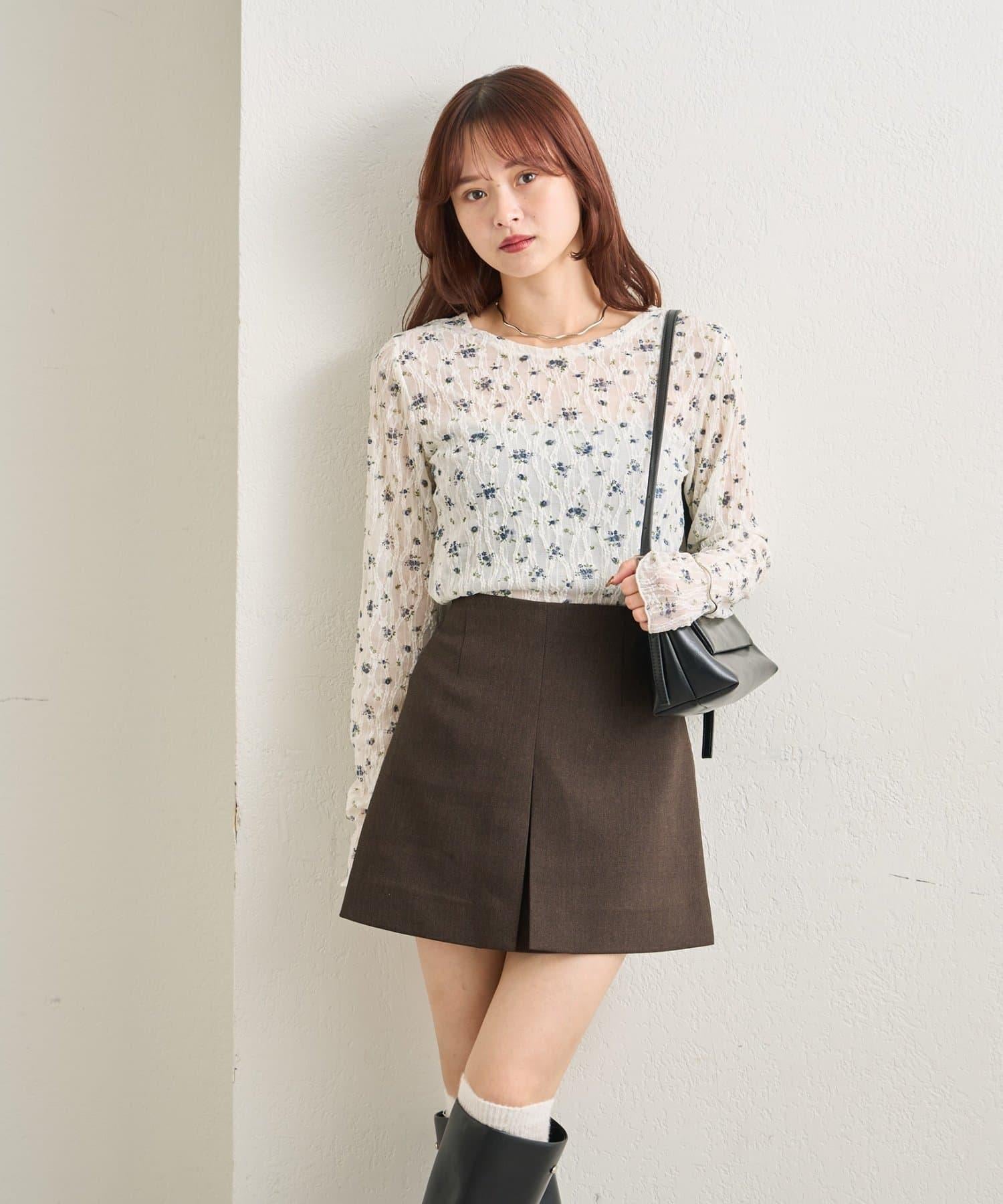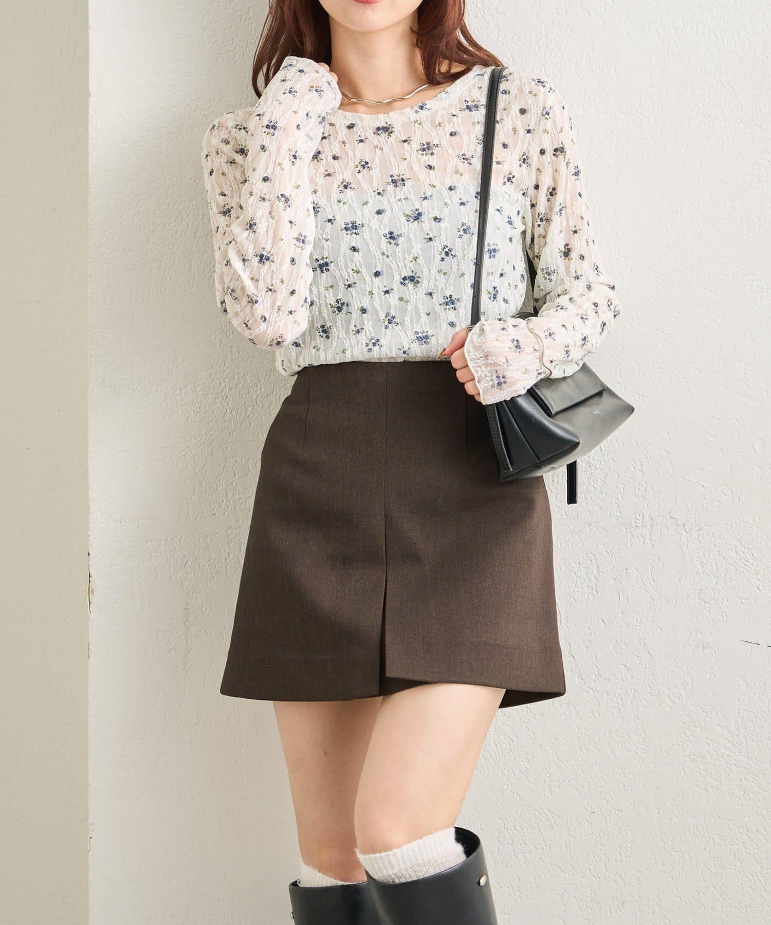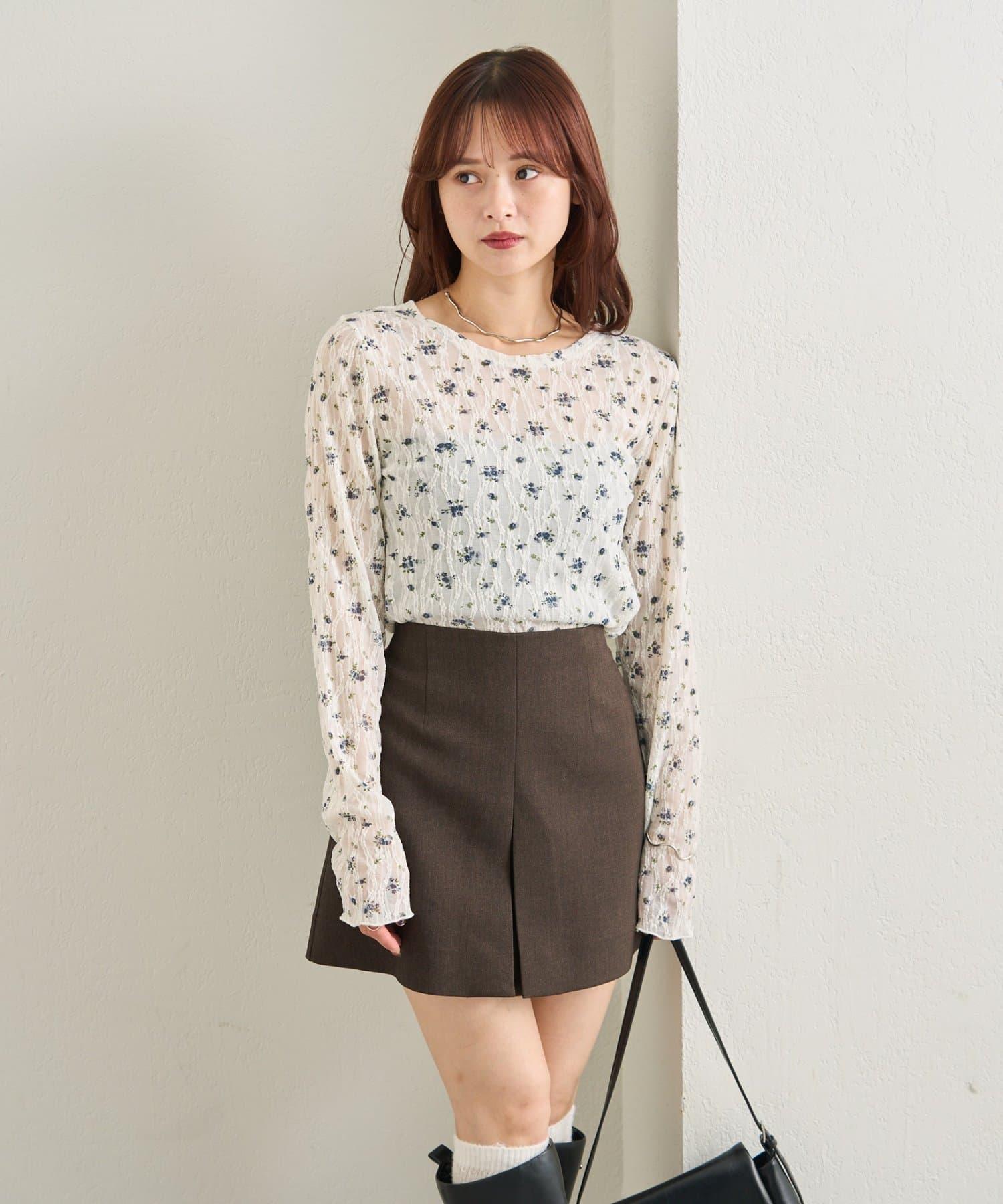 可愛中帶有恰到好處的透明感!蕾絲花卉圖案透視 T,適合多層次款式。