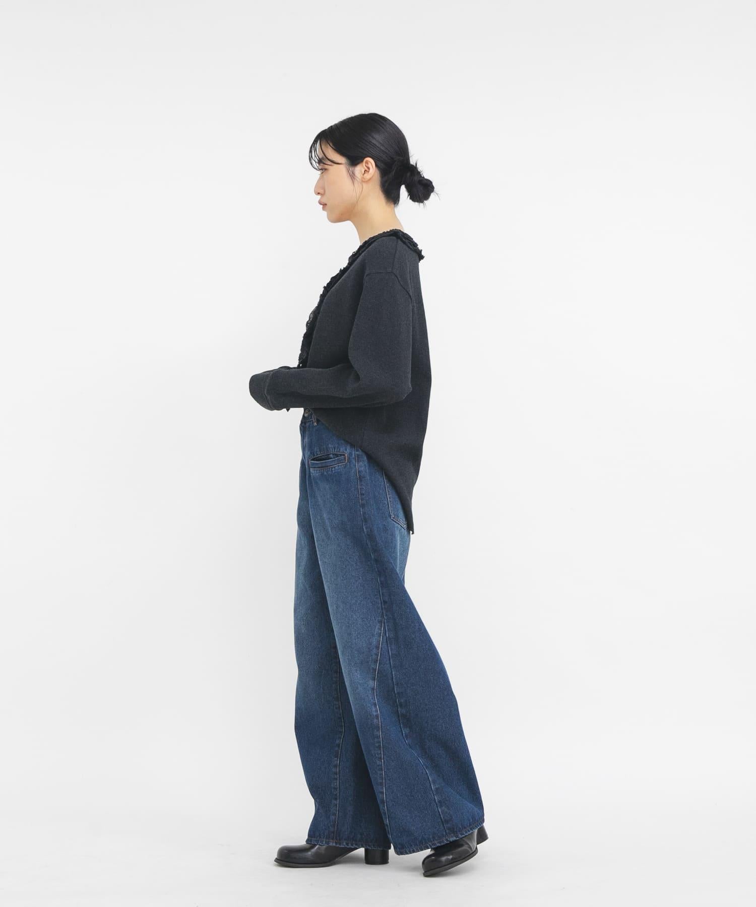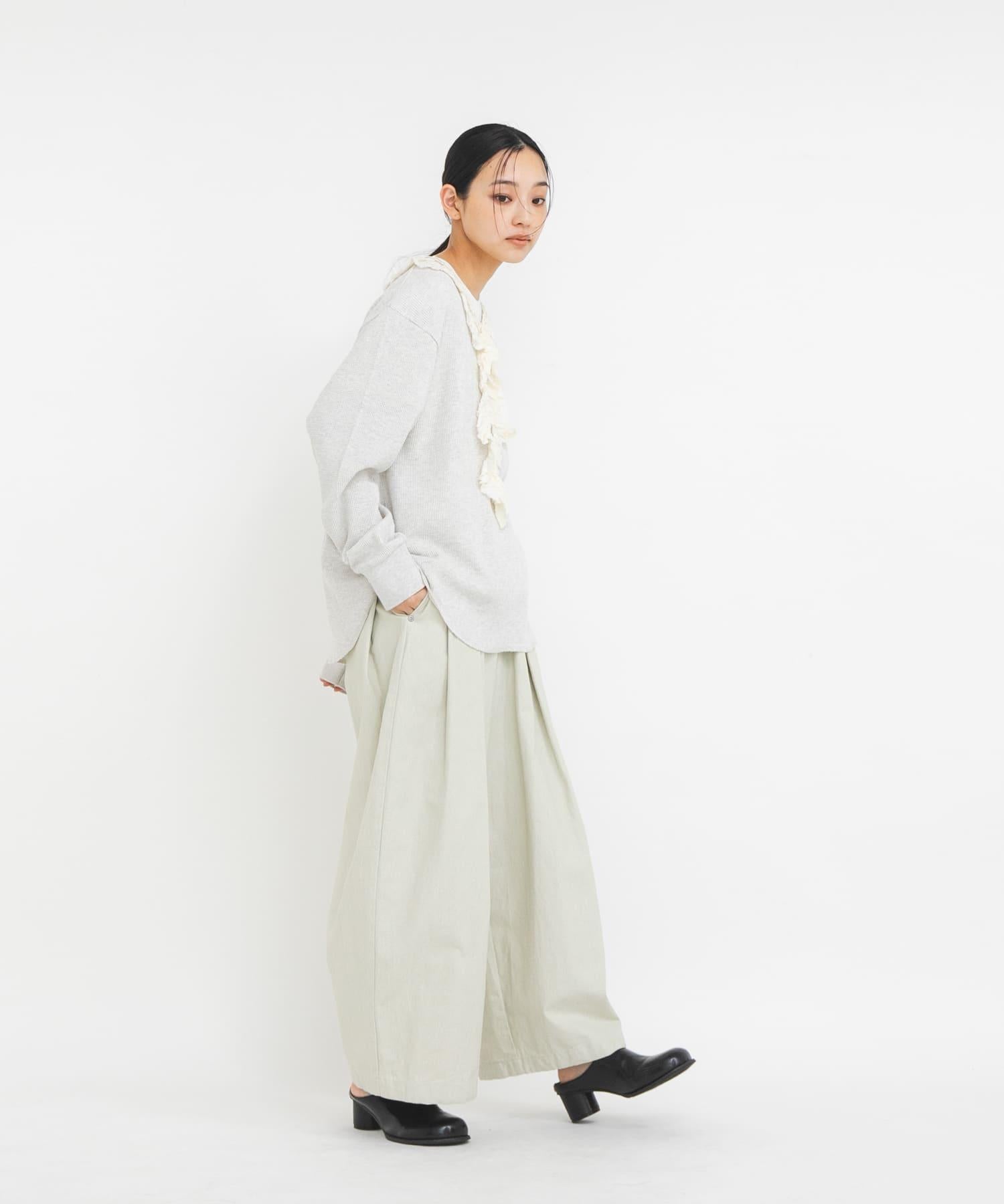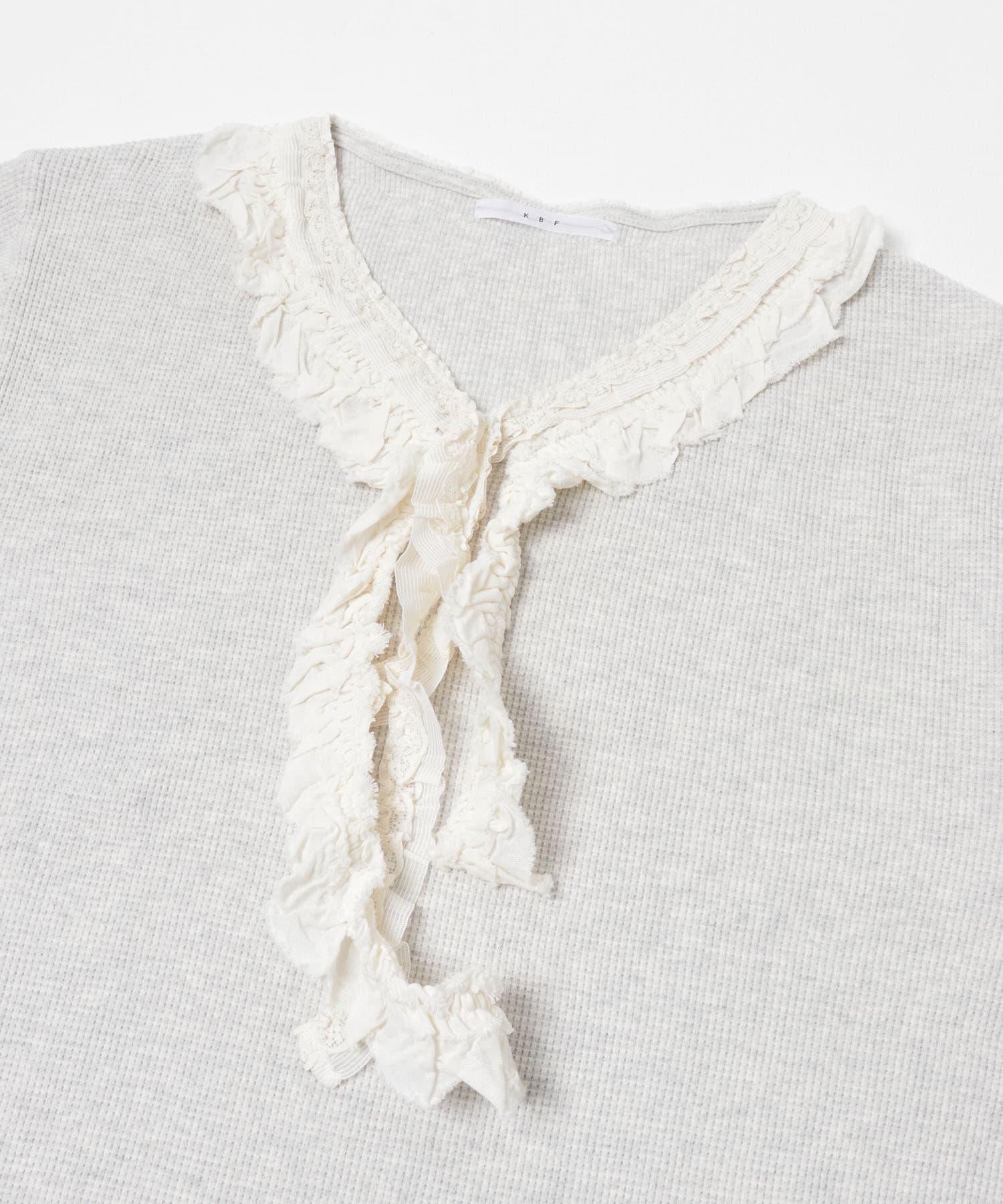 蕾絲荷葉邊華夫格套頭上衣