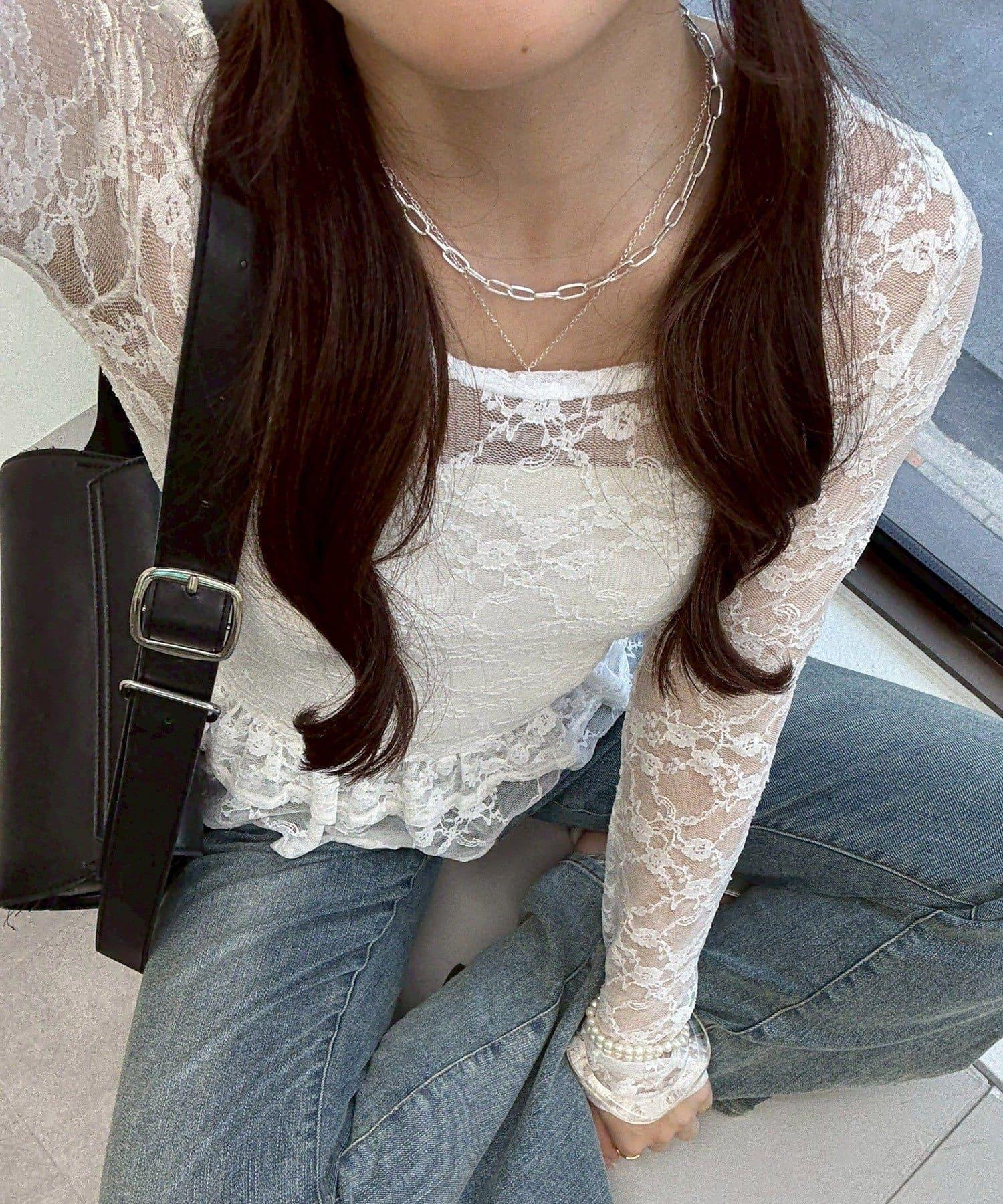下襬部分採用荷葉邊鏤空設計,單穿也很好看。