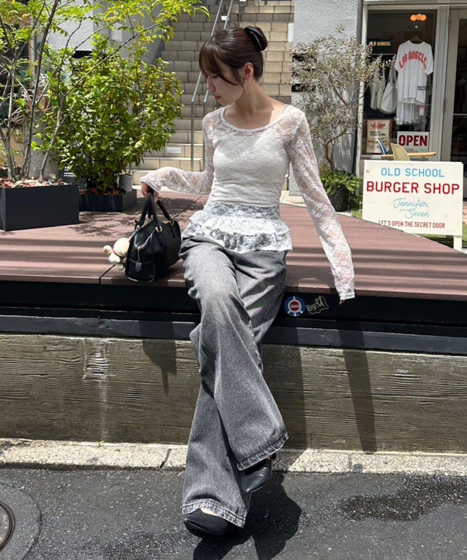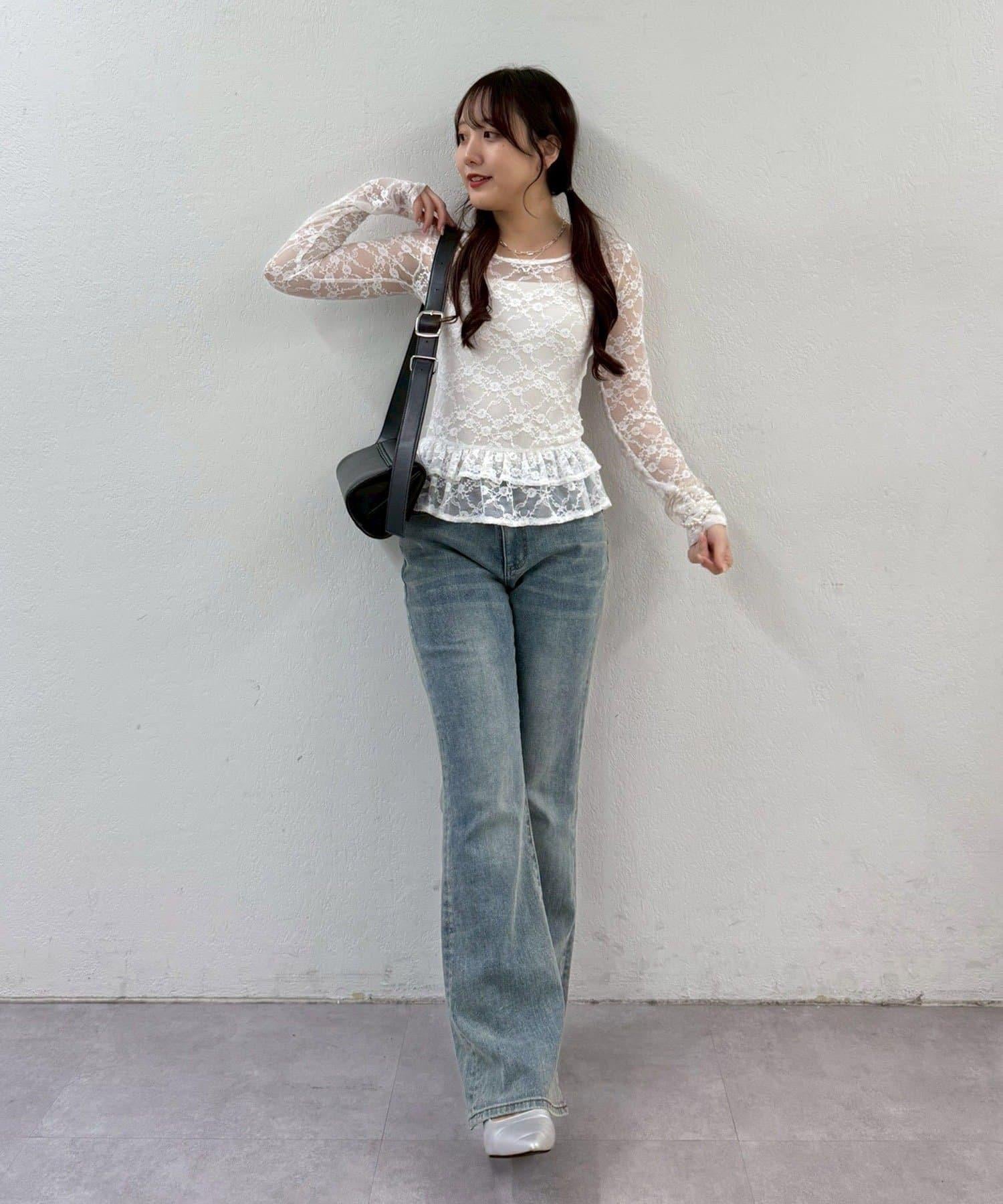 上衣可搭配時尚寬鬆牛仔褲或喇叭牛仔褲,是韓式休閒造型的👍選擇。