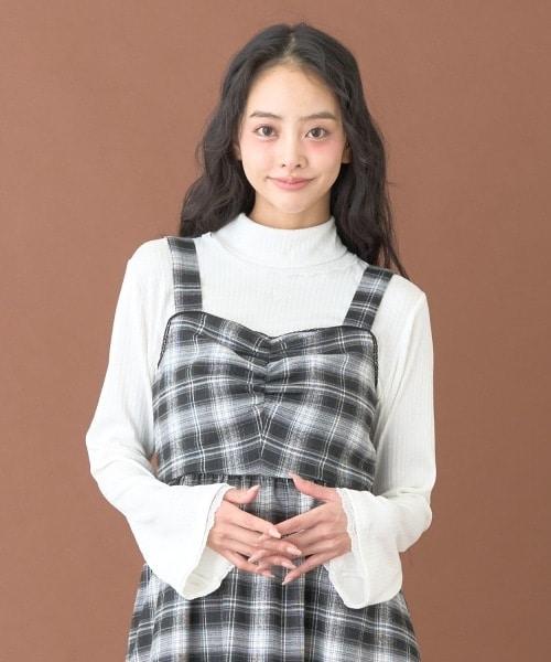 針刺漂白麵料的垂直線條增強了服裝的簡潔輪廓和甜美感。