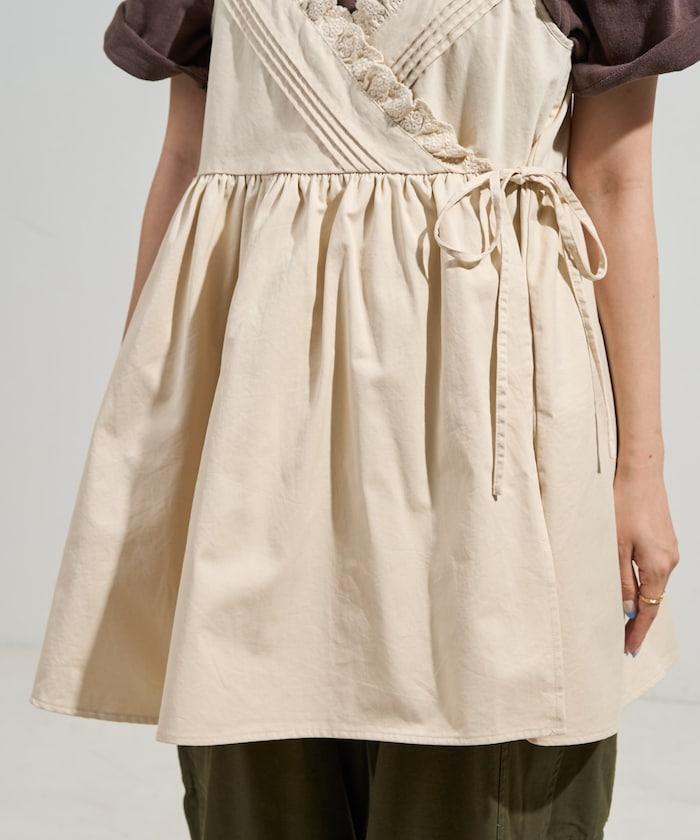 蕾絲褶皺裹身長款上衣<可搭配套裝>