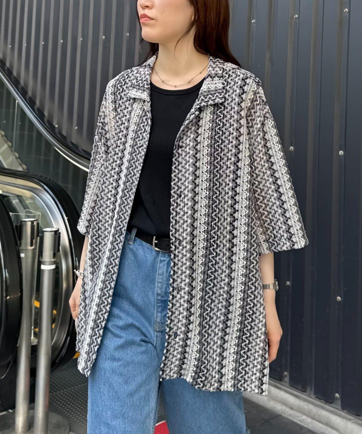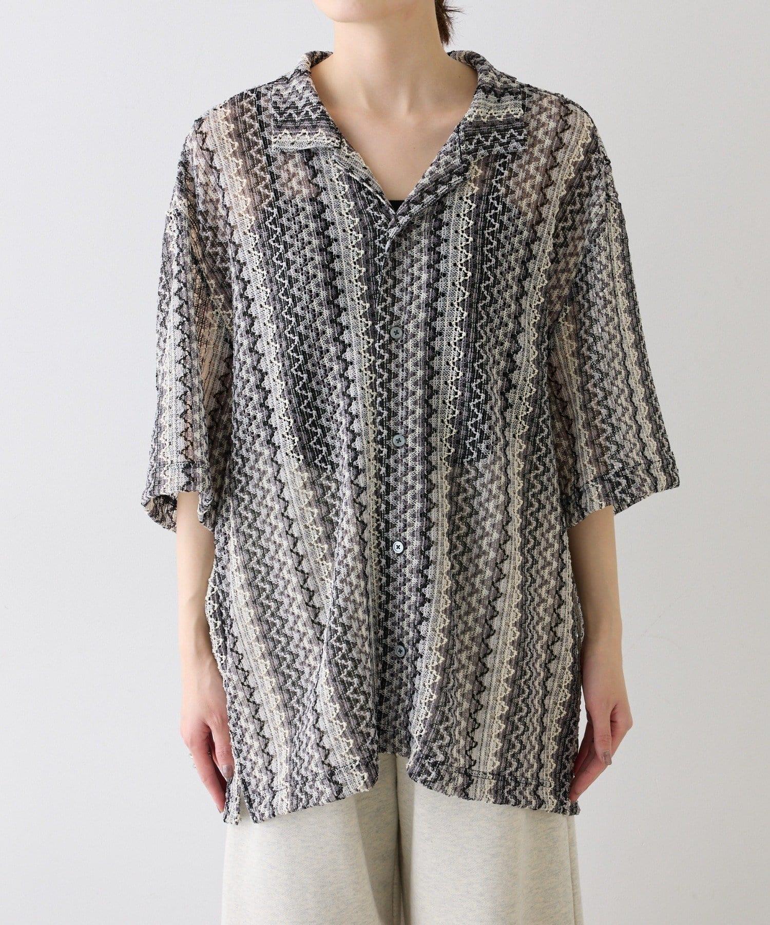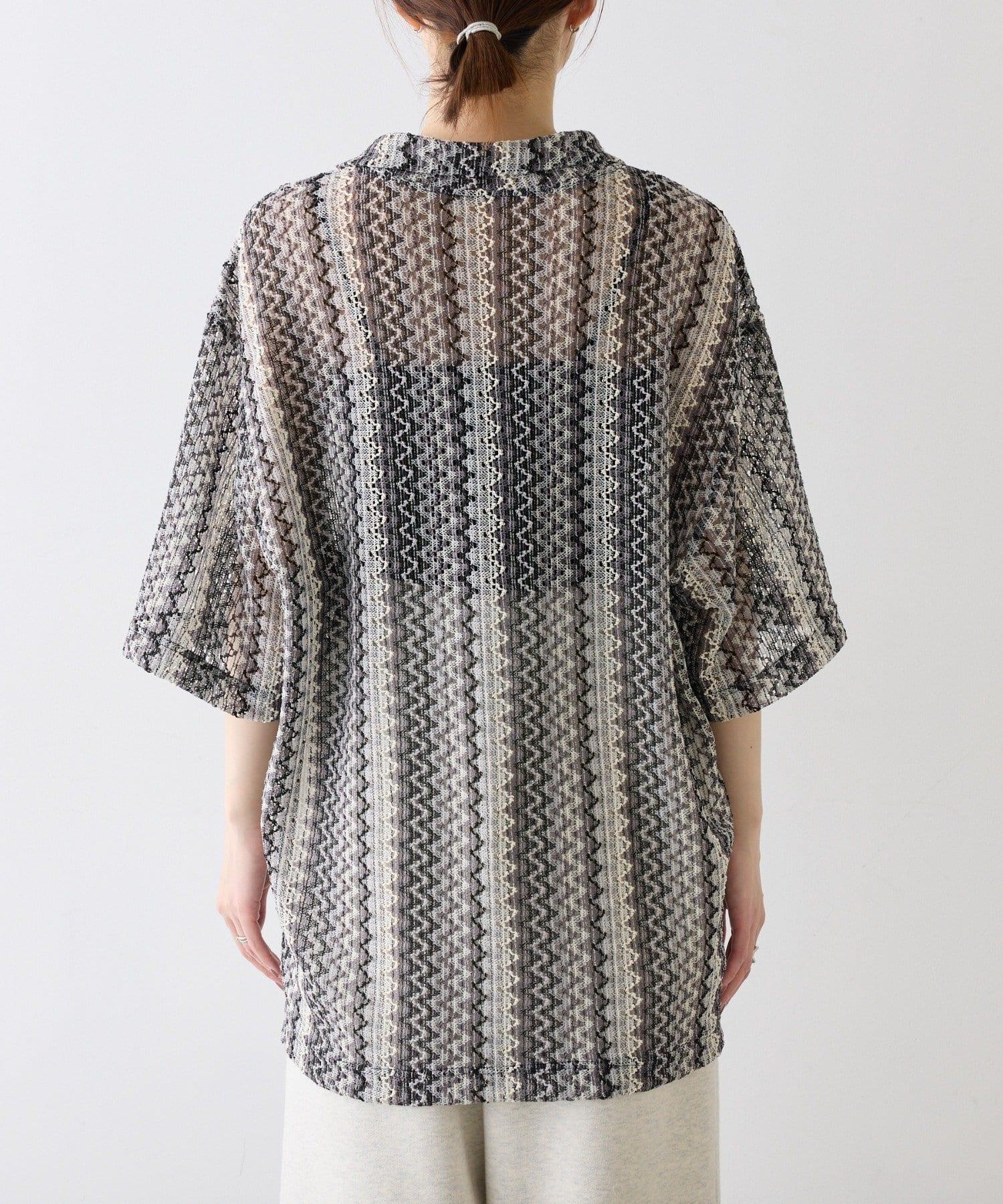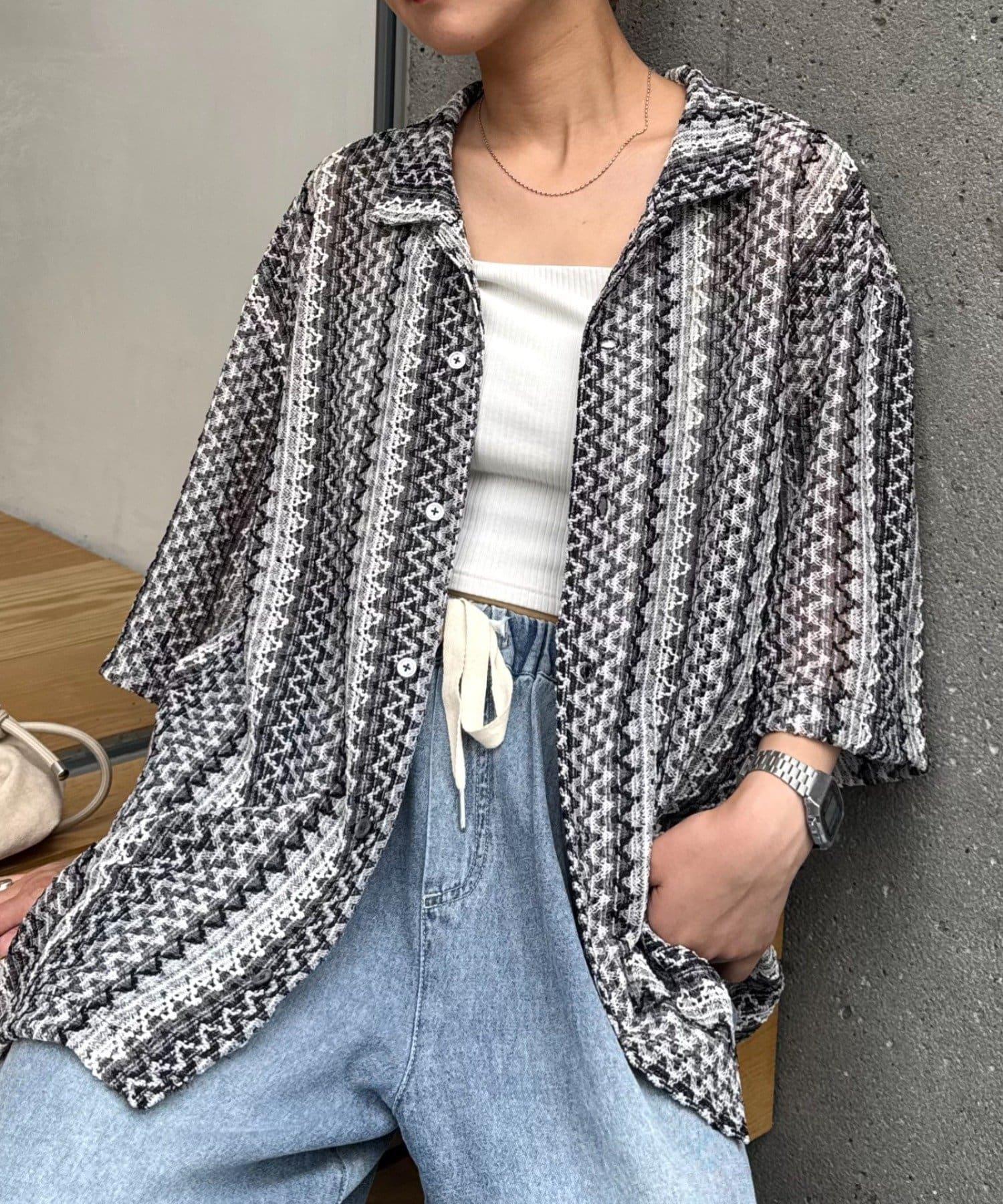 蕾絲透視條紋寬鬆襯衫