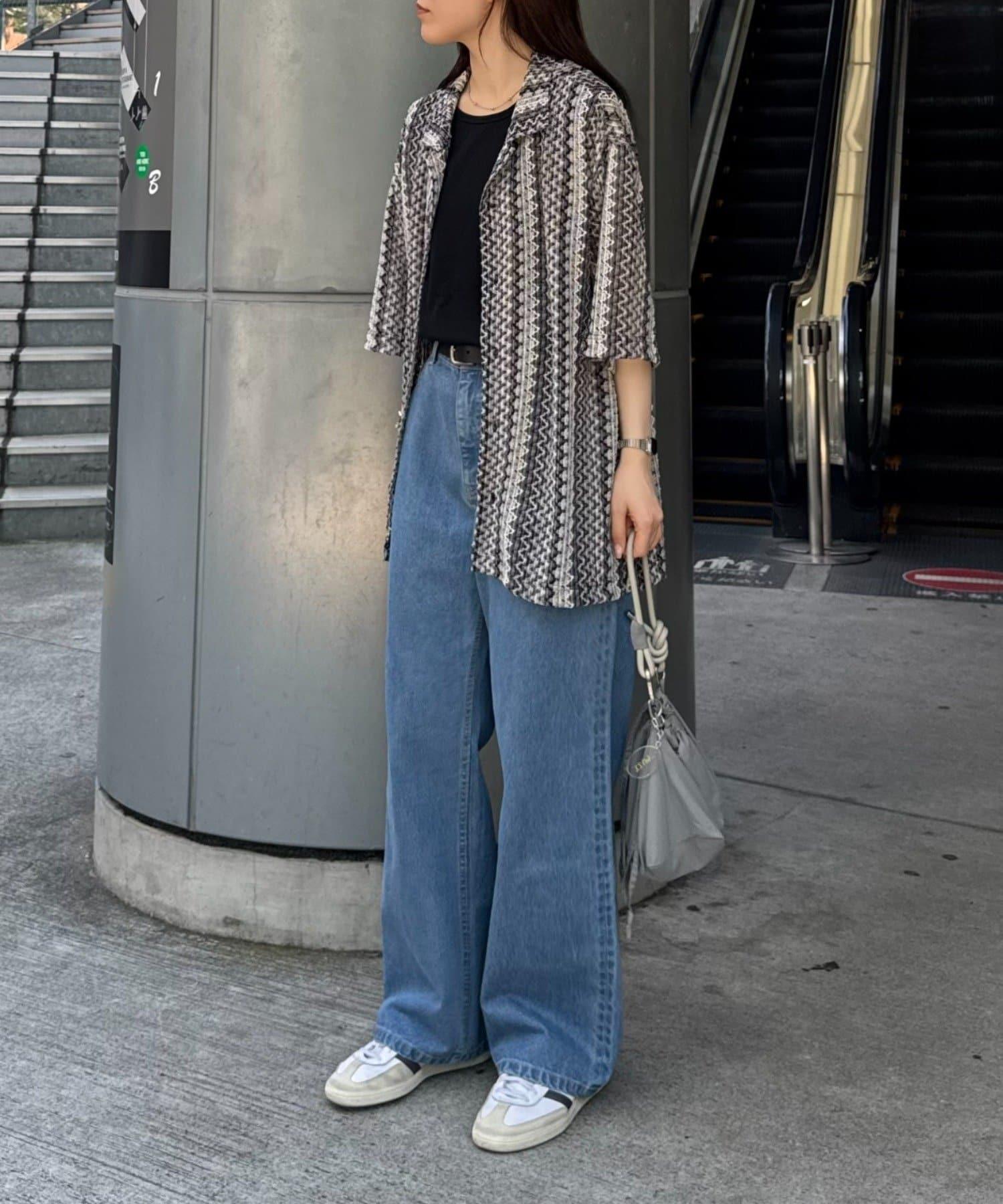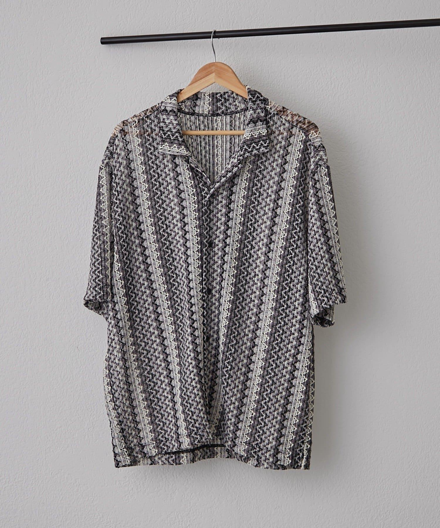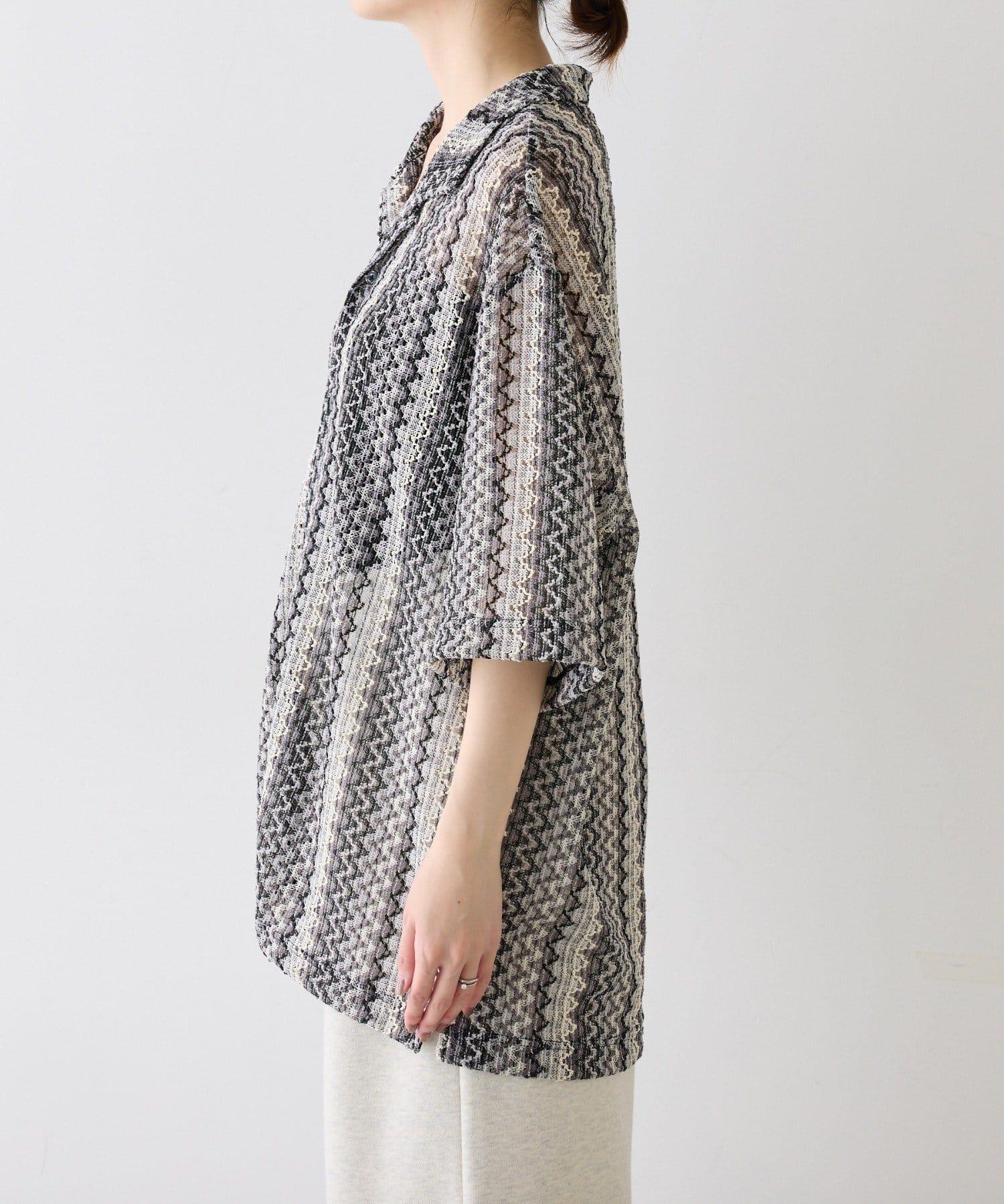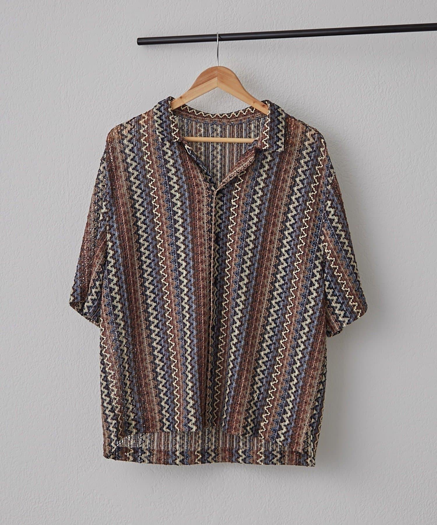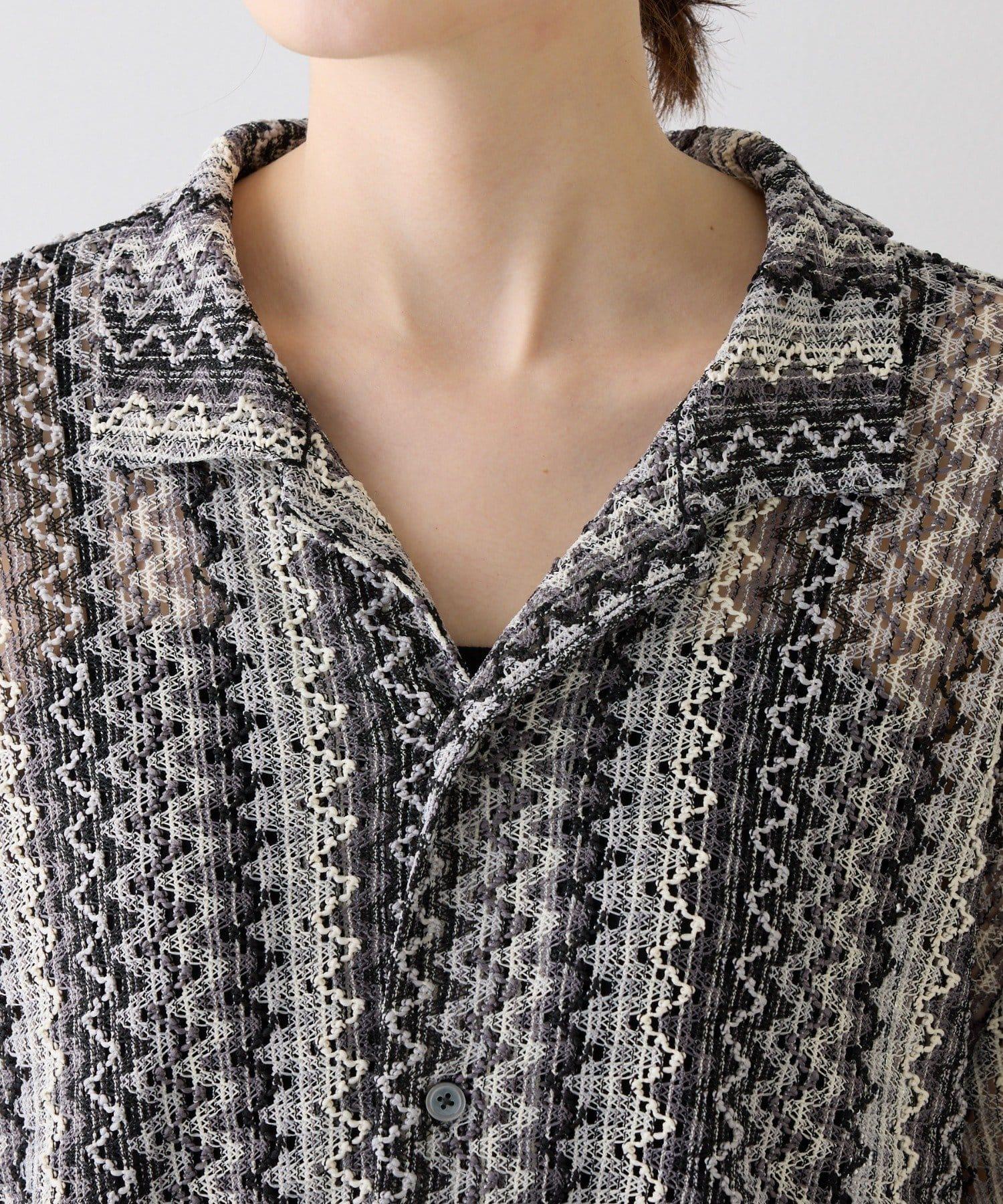 蕾絲透視條紋寬鬆襯衫