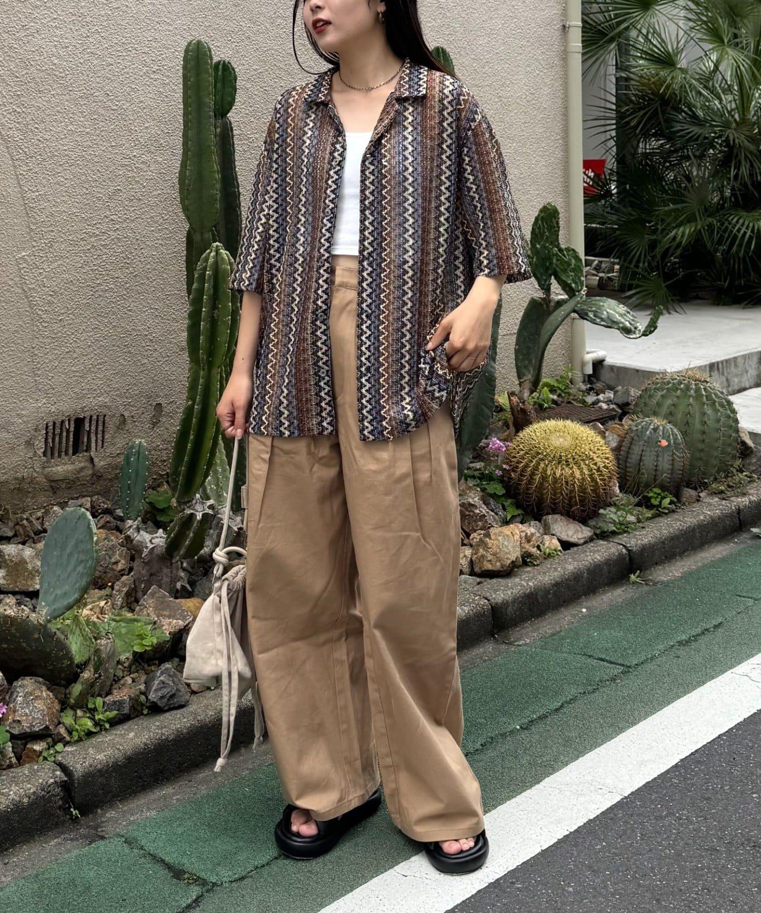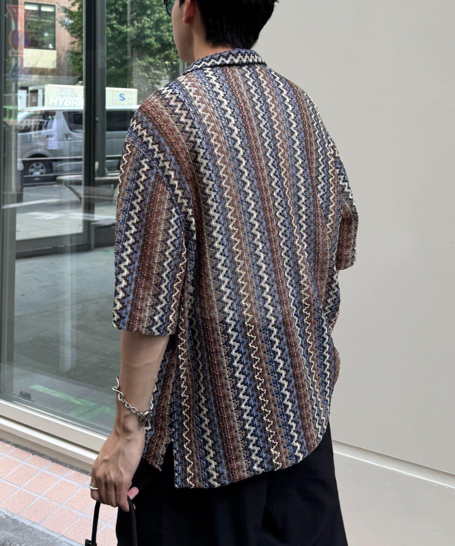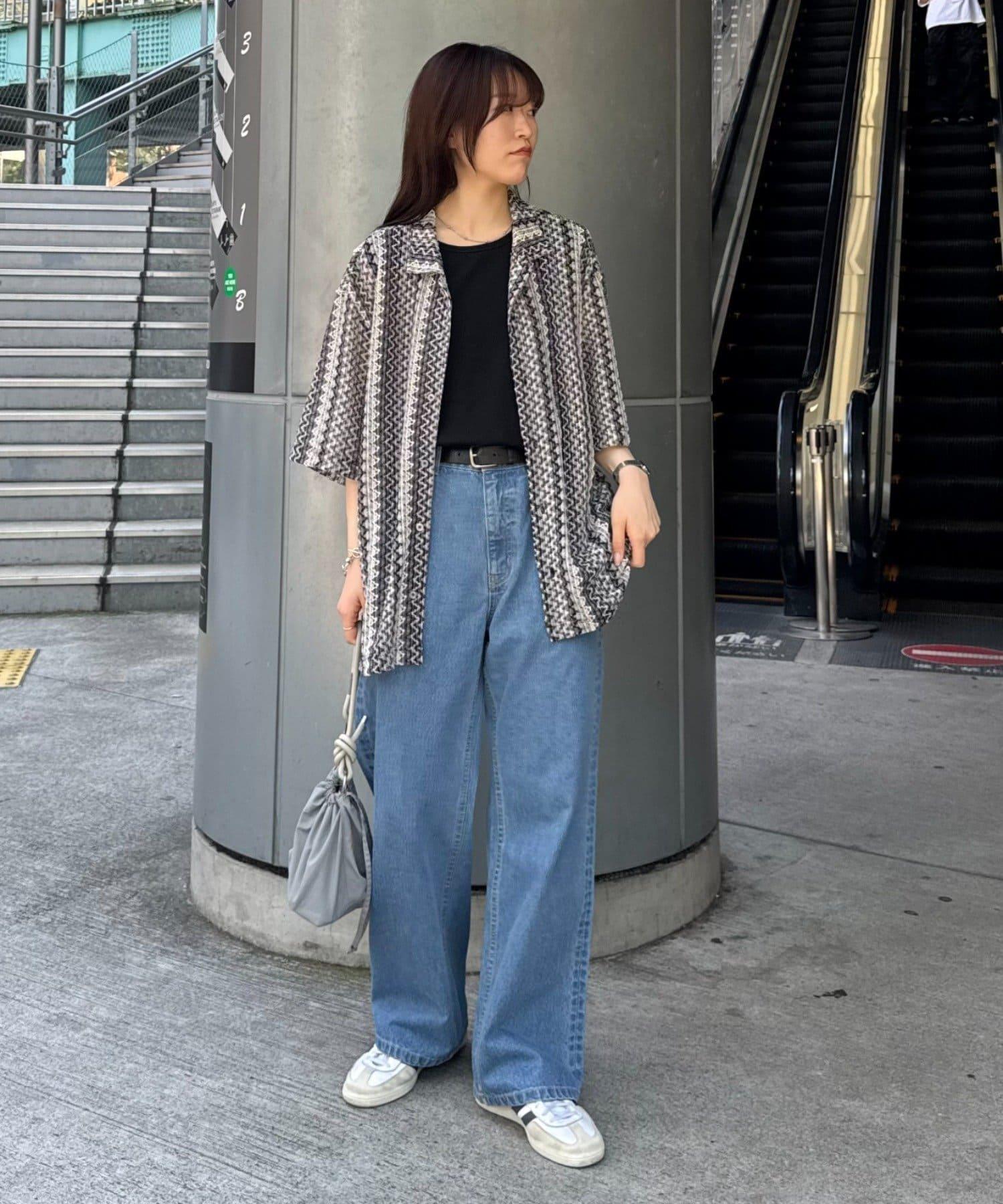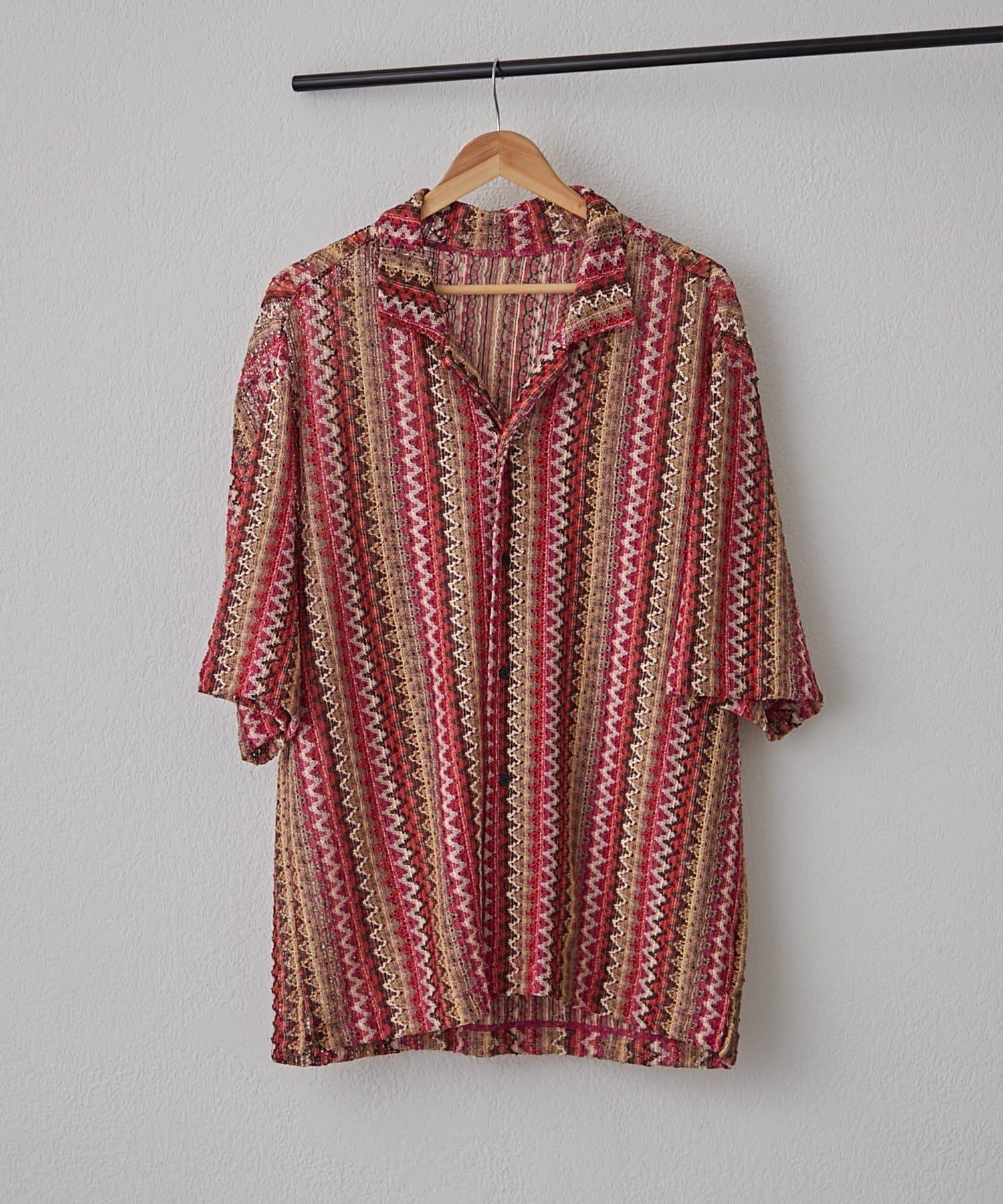 蕾絲透視條紋寬鬆襯衫