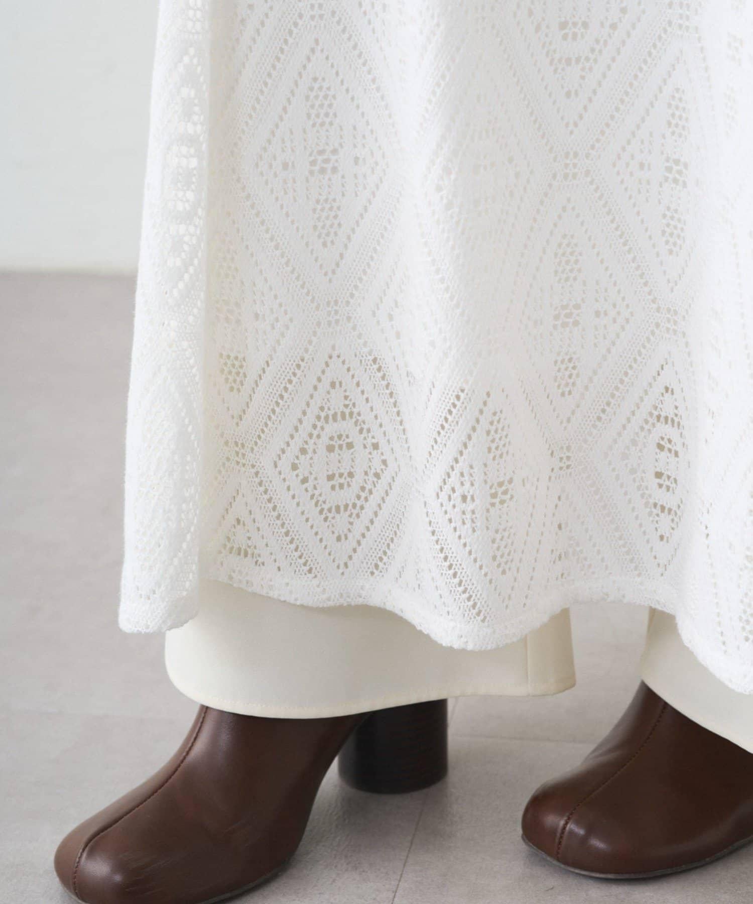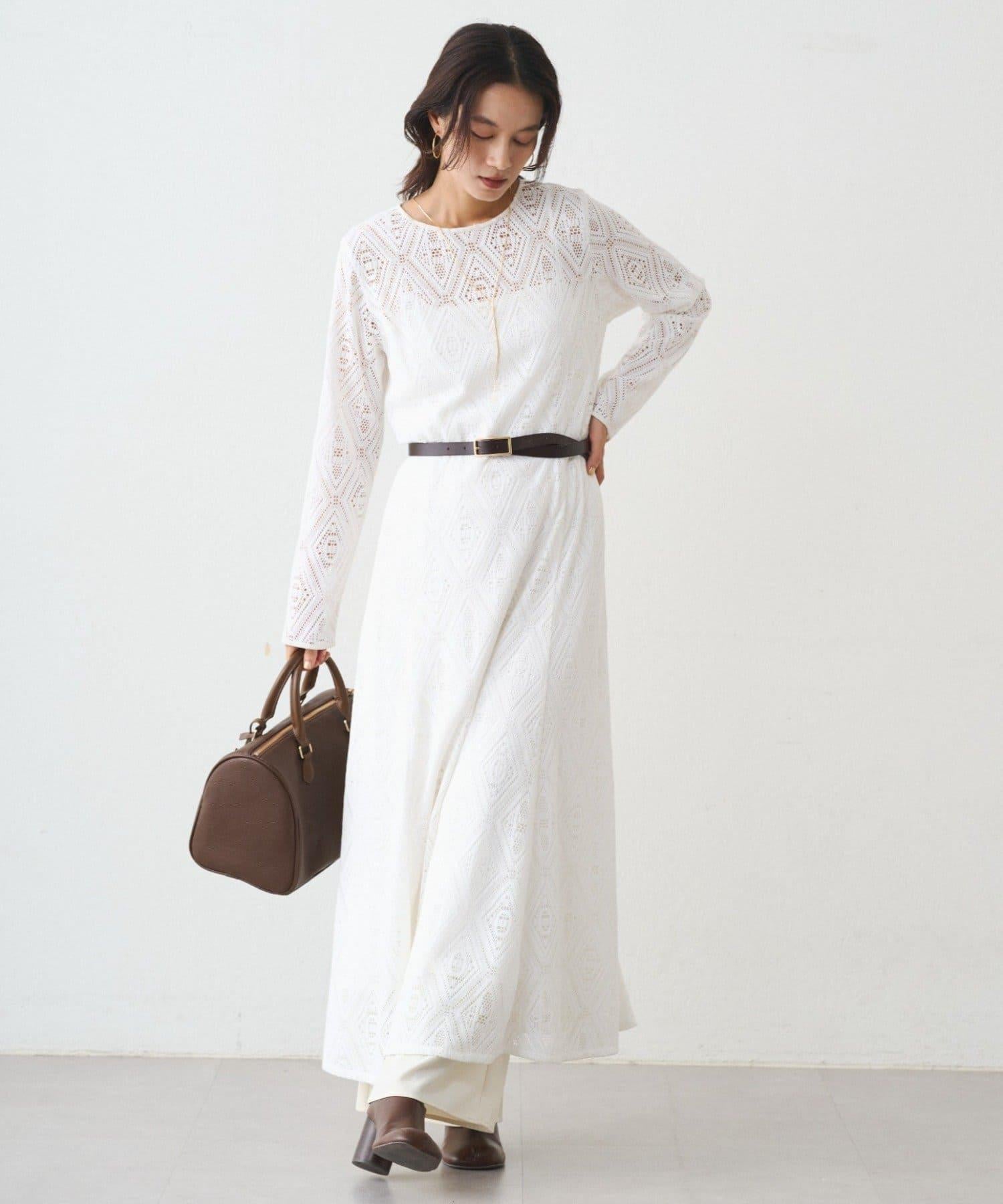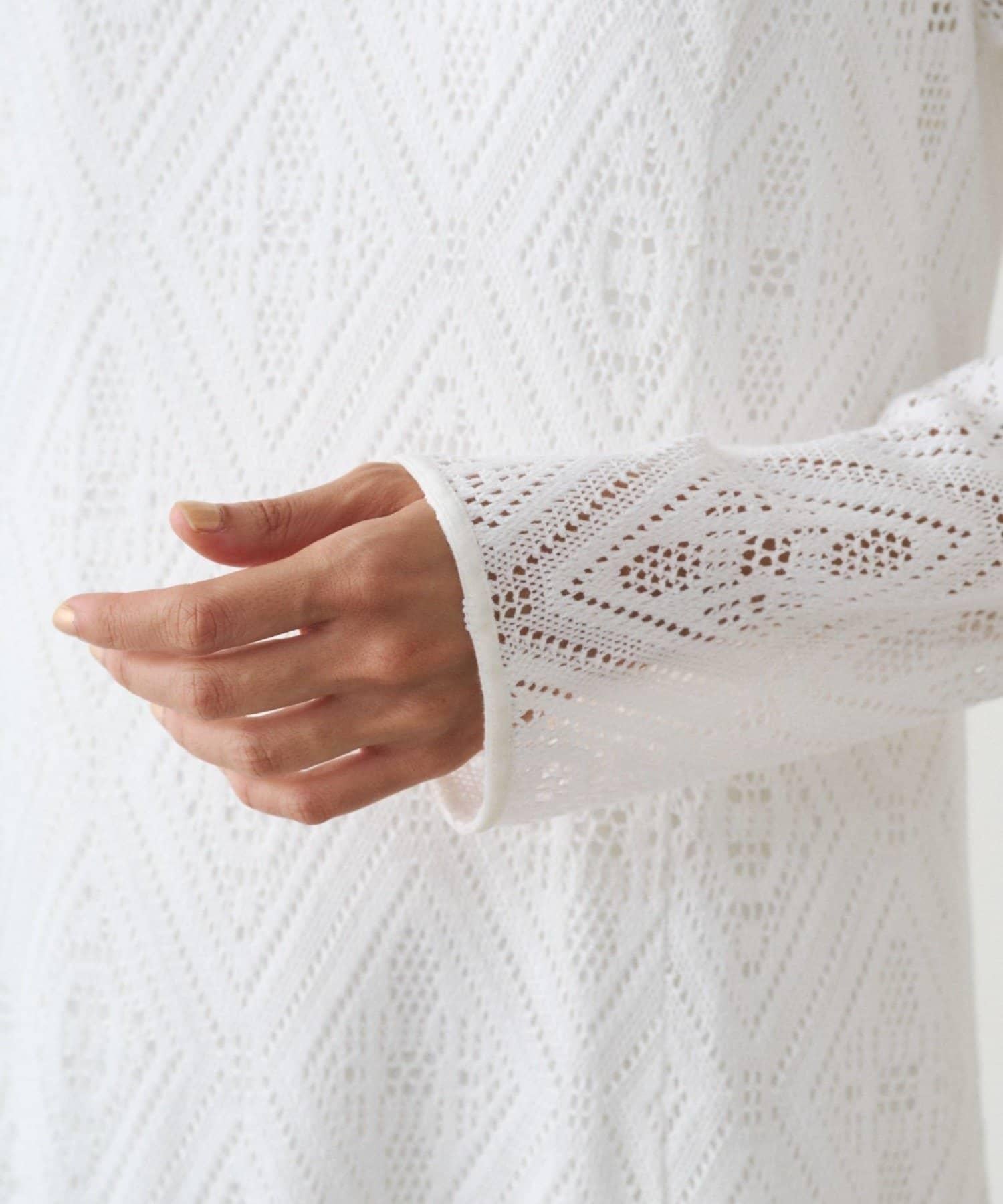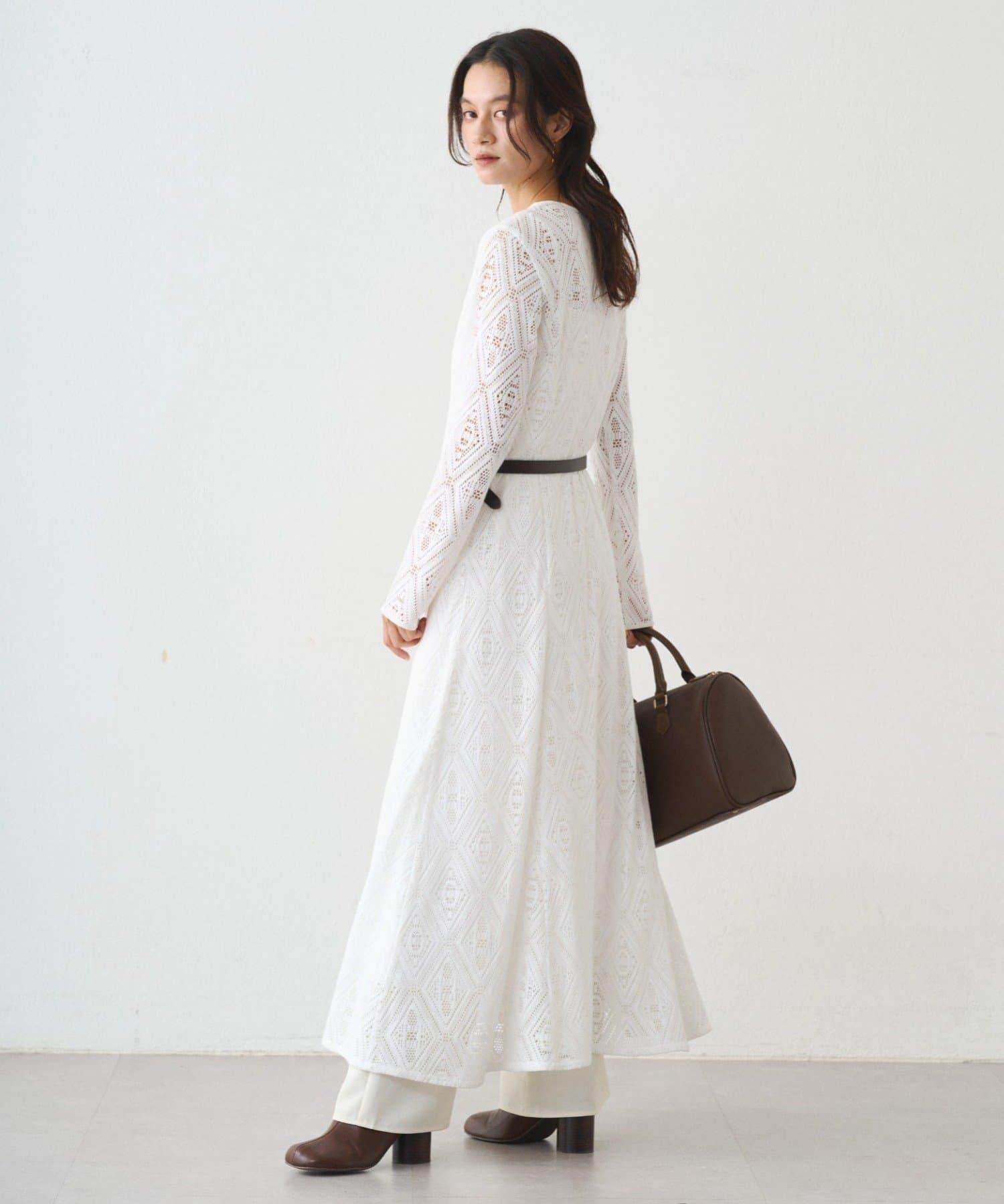 厚重垂墜的廓形和菱形圖案的蕾絲垂直修身,讓您看起來美觀而不顯臃腫。
