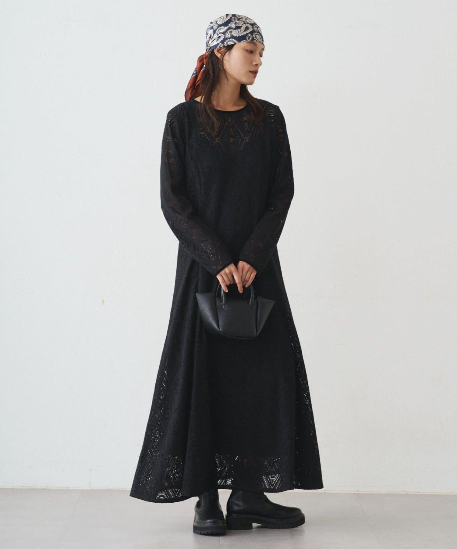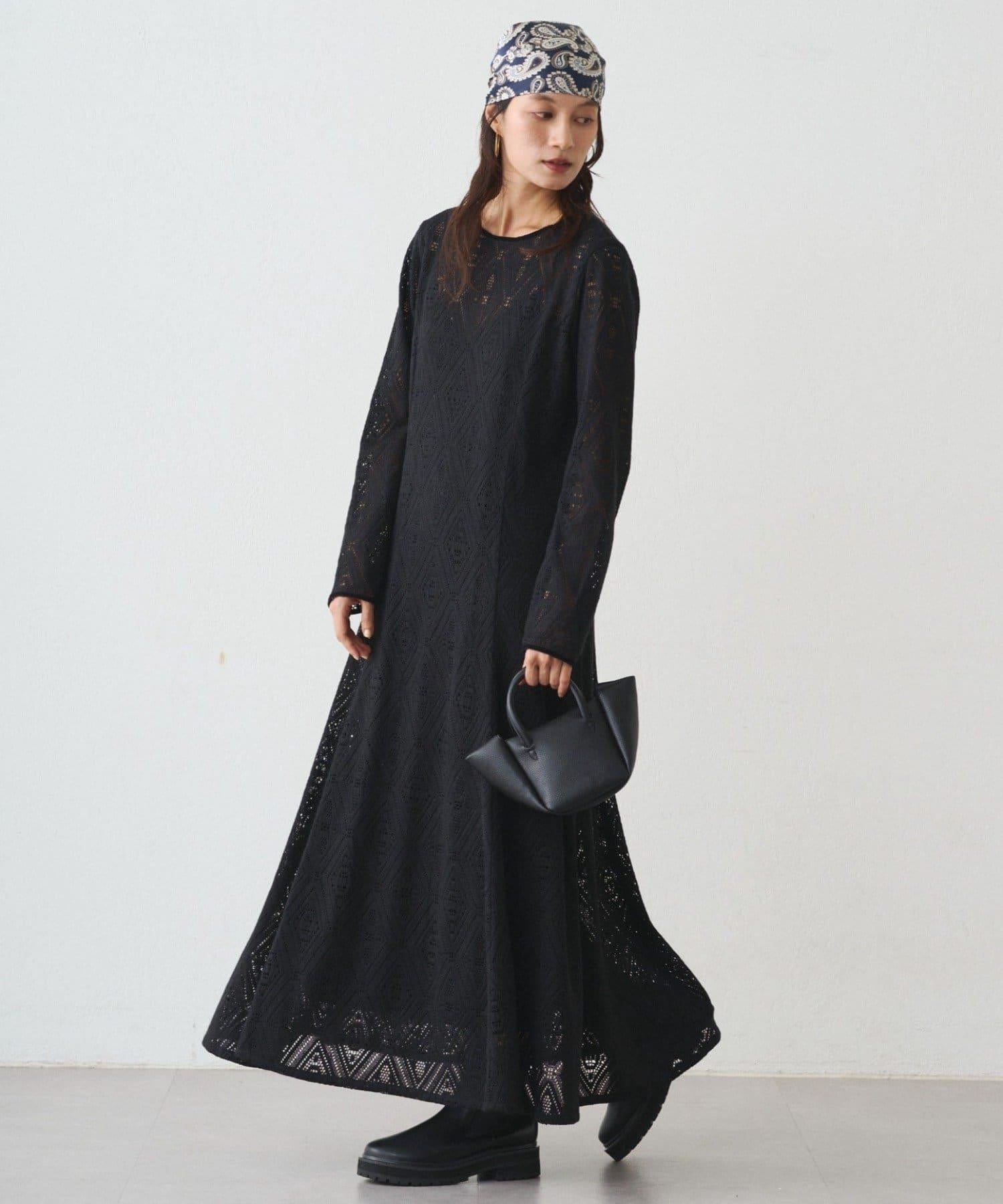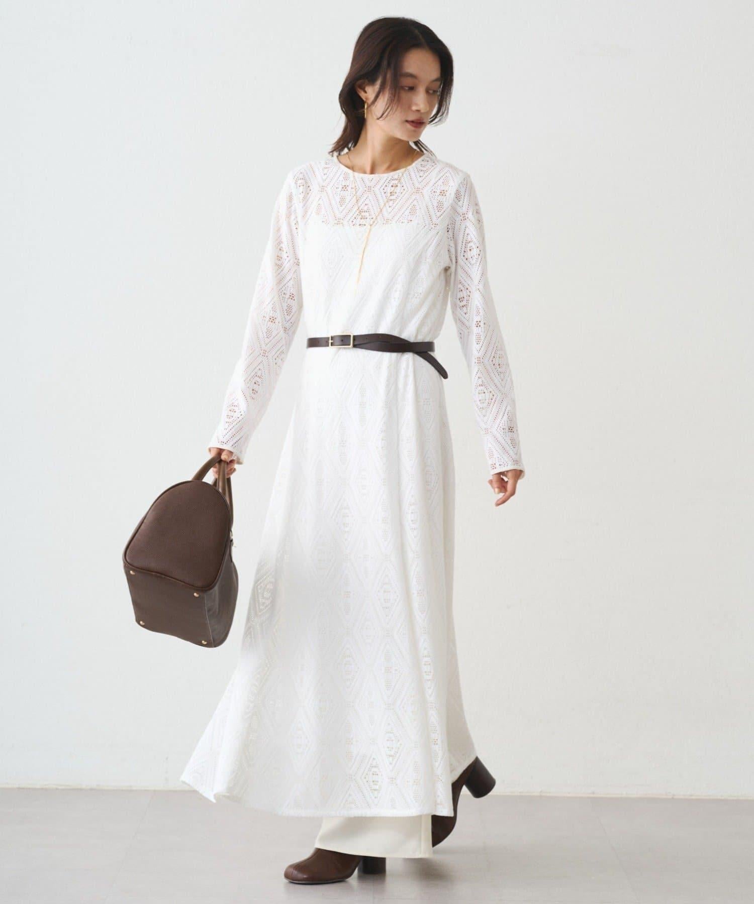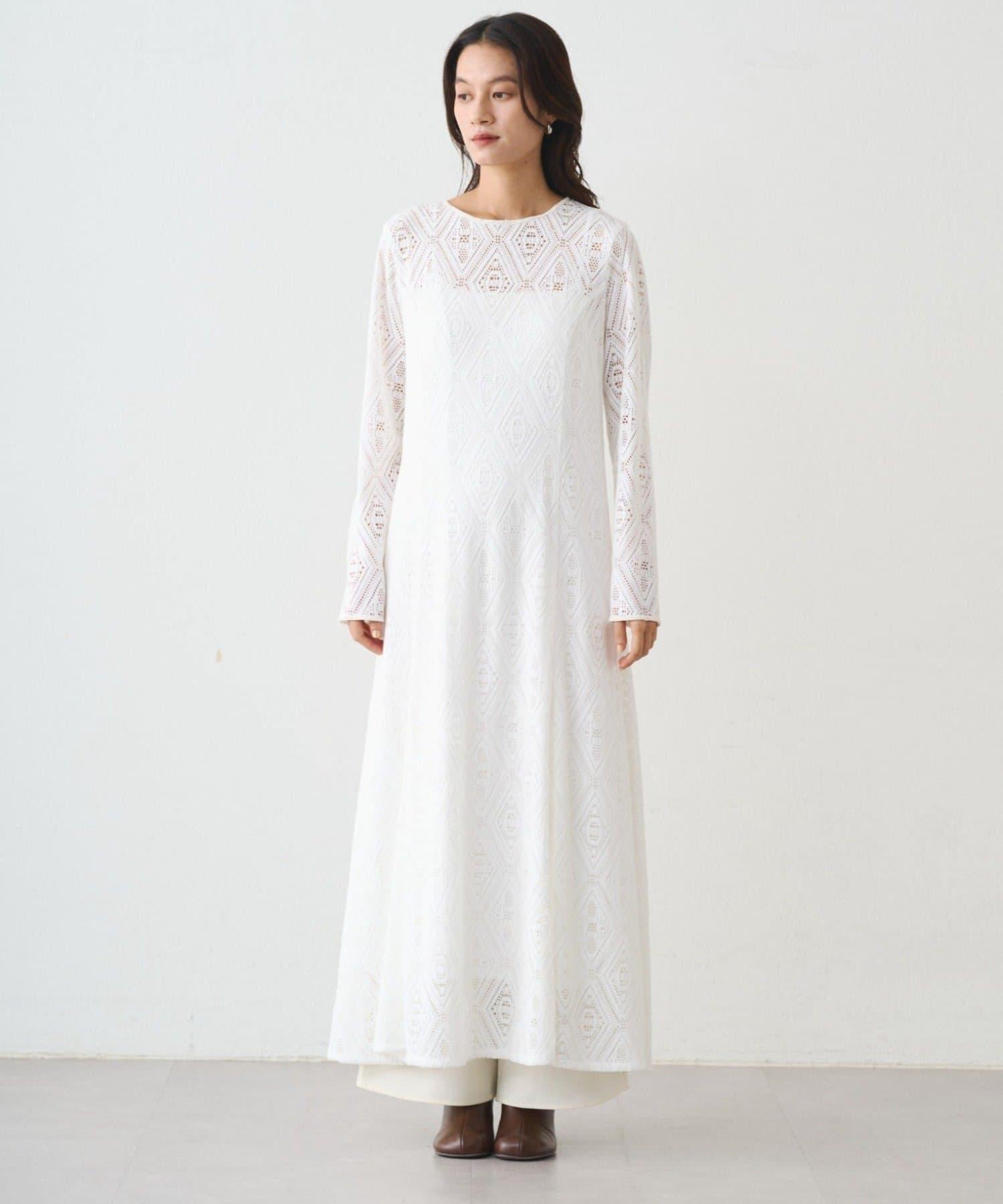 厚重垂墜的廓形和菱形圖案的蕾絲垂直修身,讓您看起來美觀而不顯臃腫。