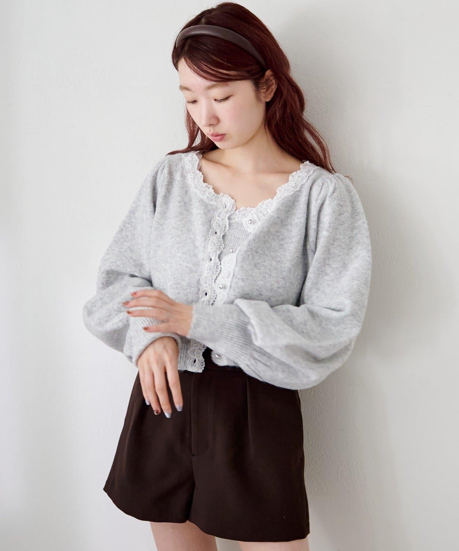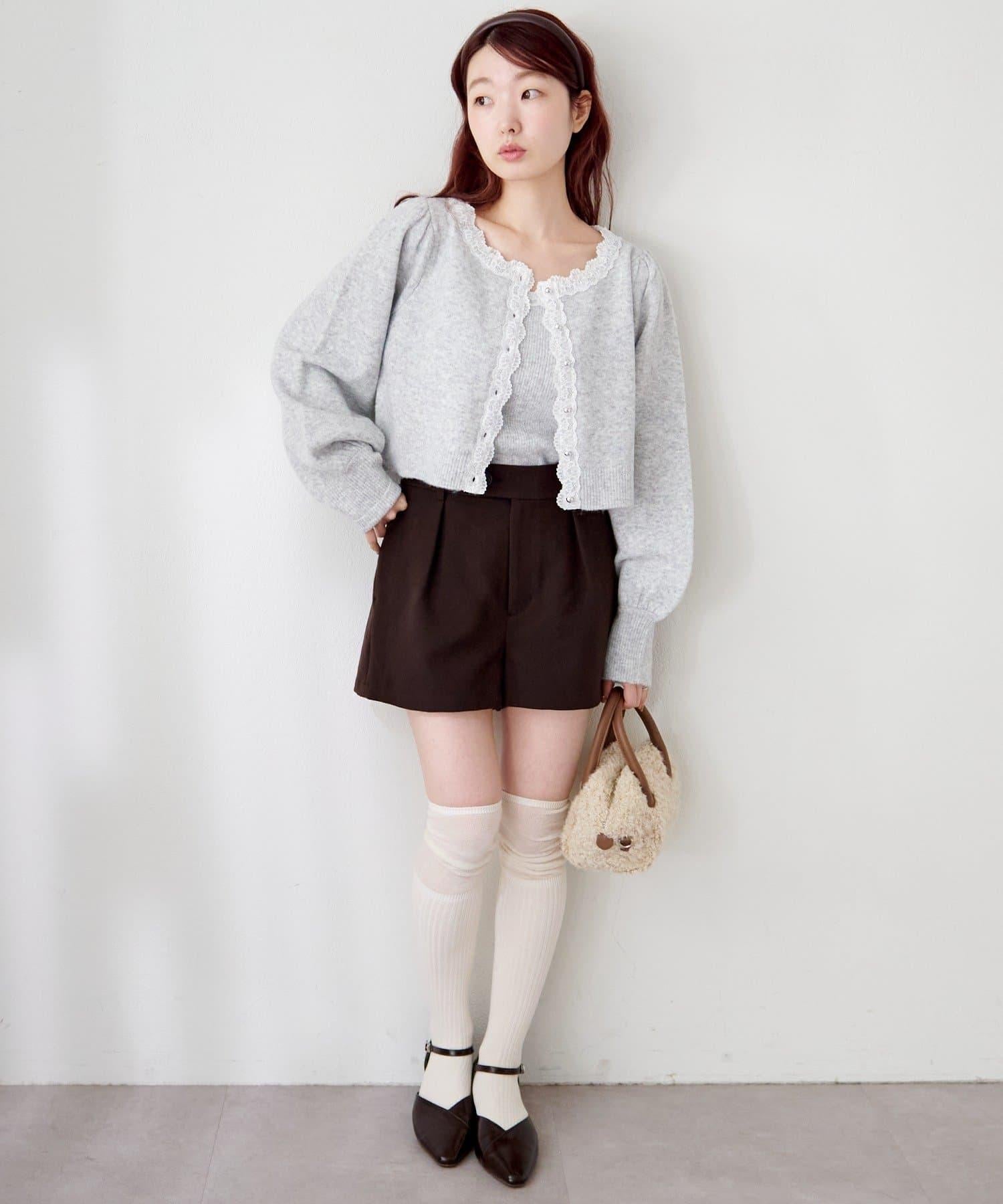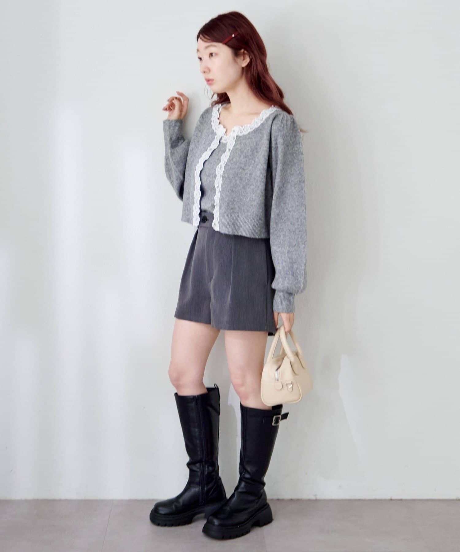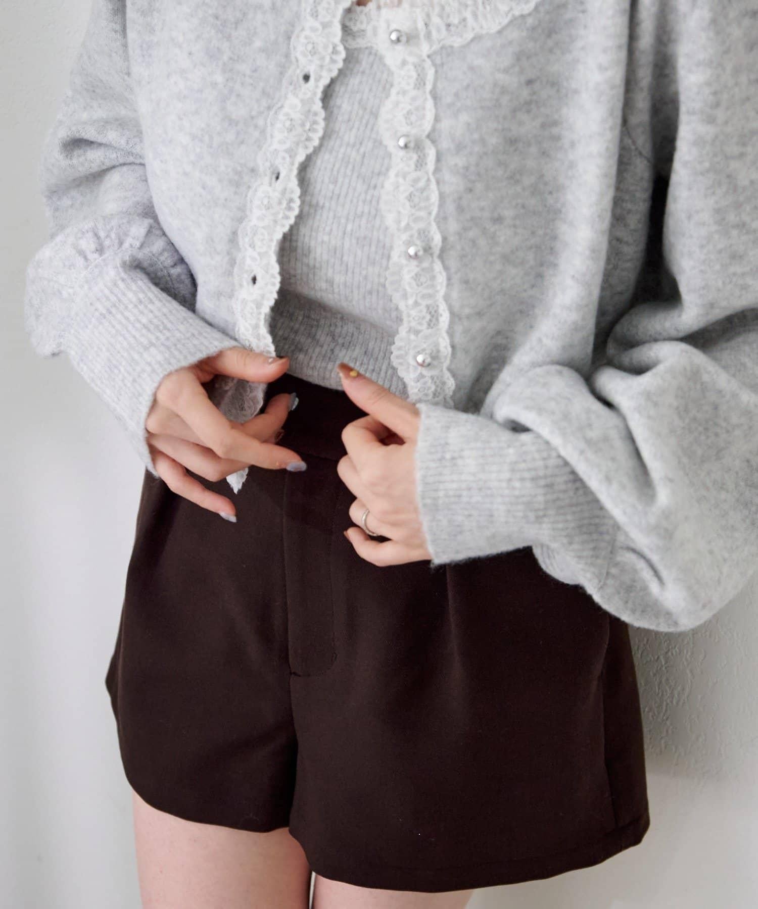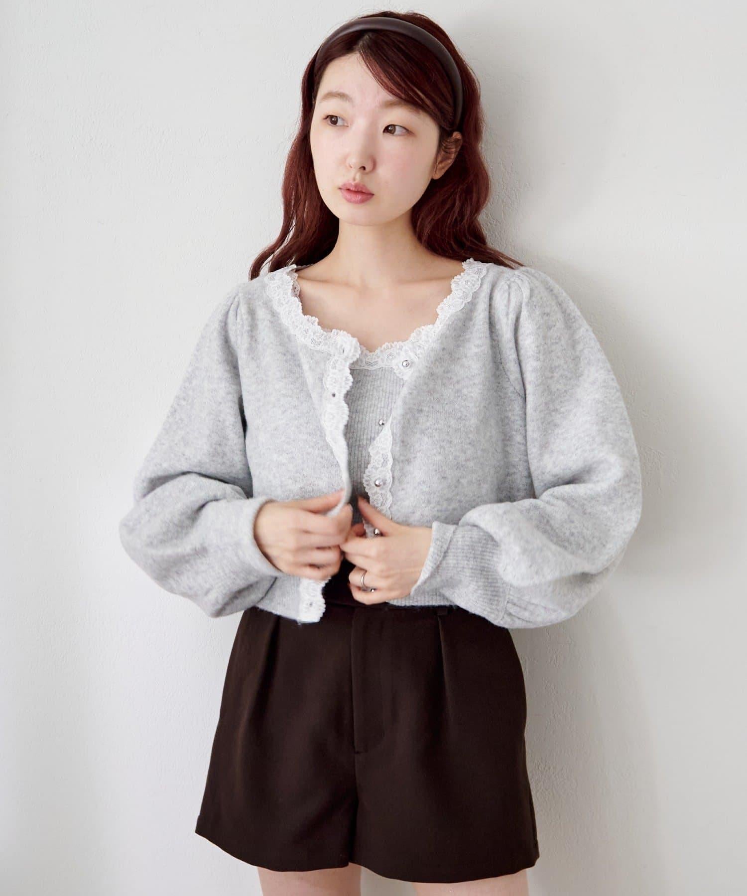 吊帶衫上的蕾絲飾邊可修飾胸前曲線,而開襟羊毛衫則以精緻的珠光紐扣作為優雅的點綴。