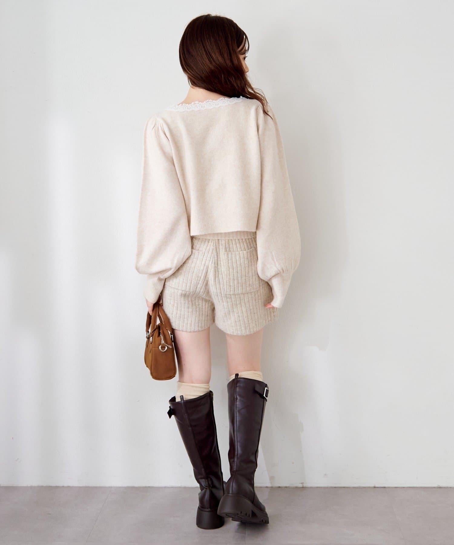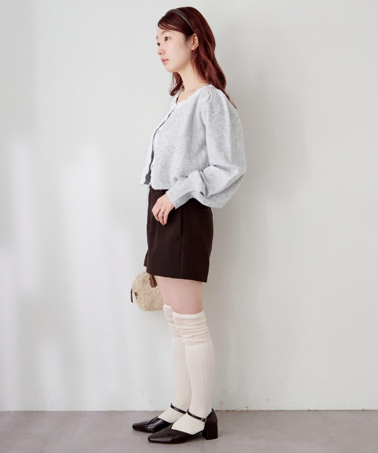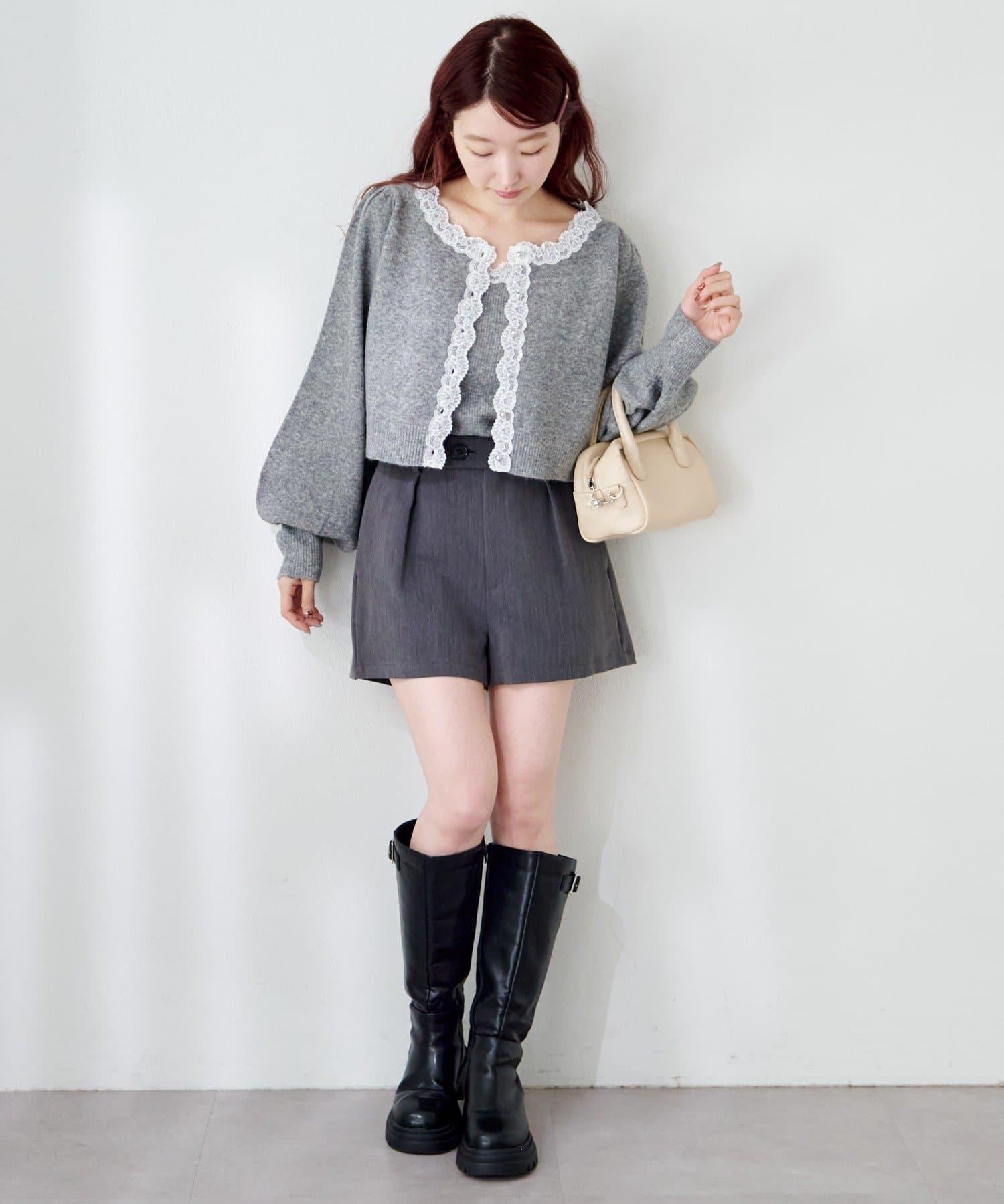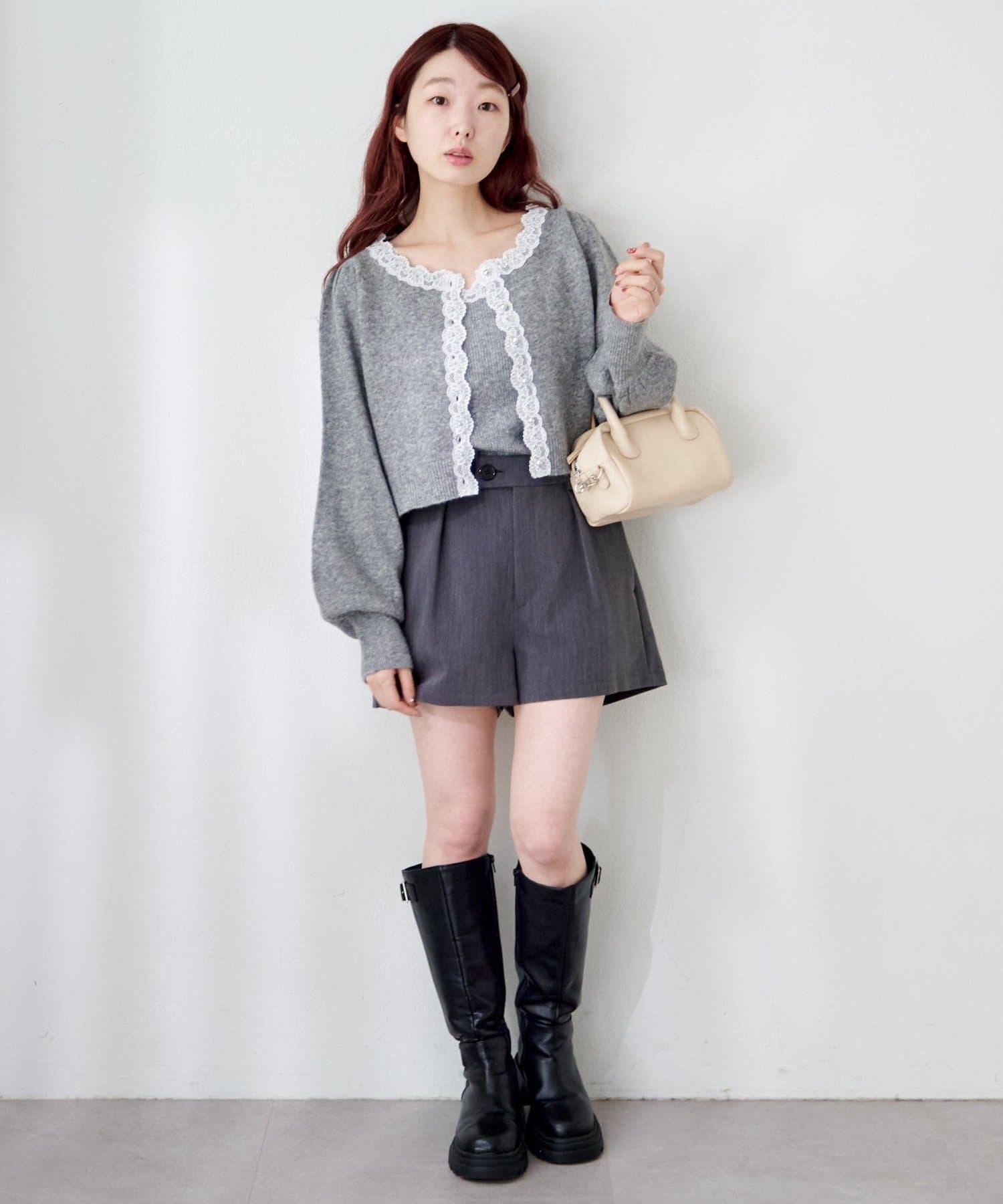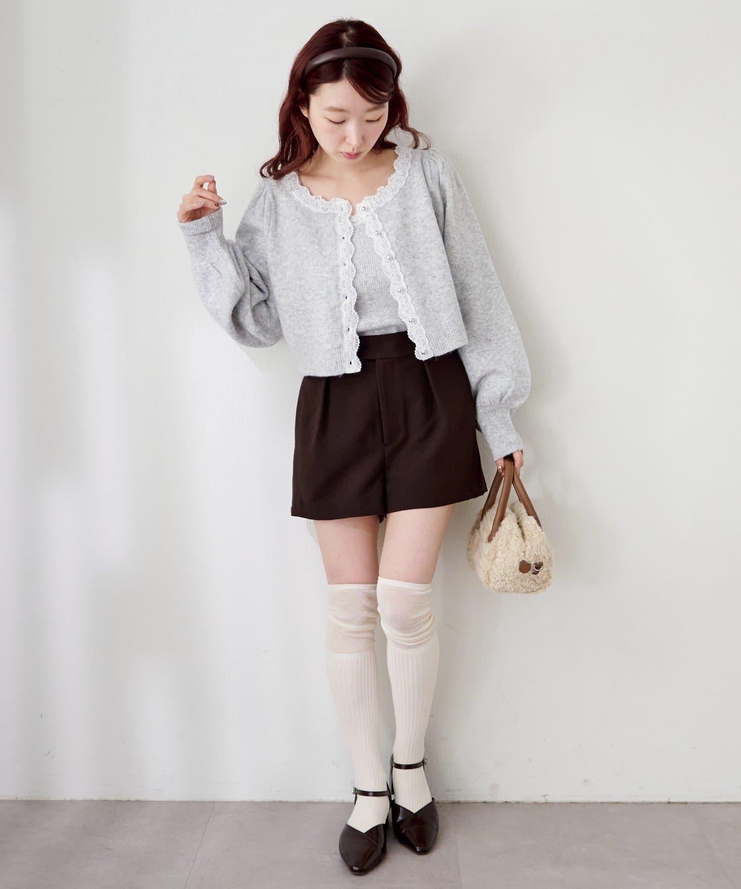 吊帶衫上的蕾絲飾邊可修飾胸前曲線,而開襟羊毛衫則以精緻的珠光紐扣作為優雅的點綴。