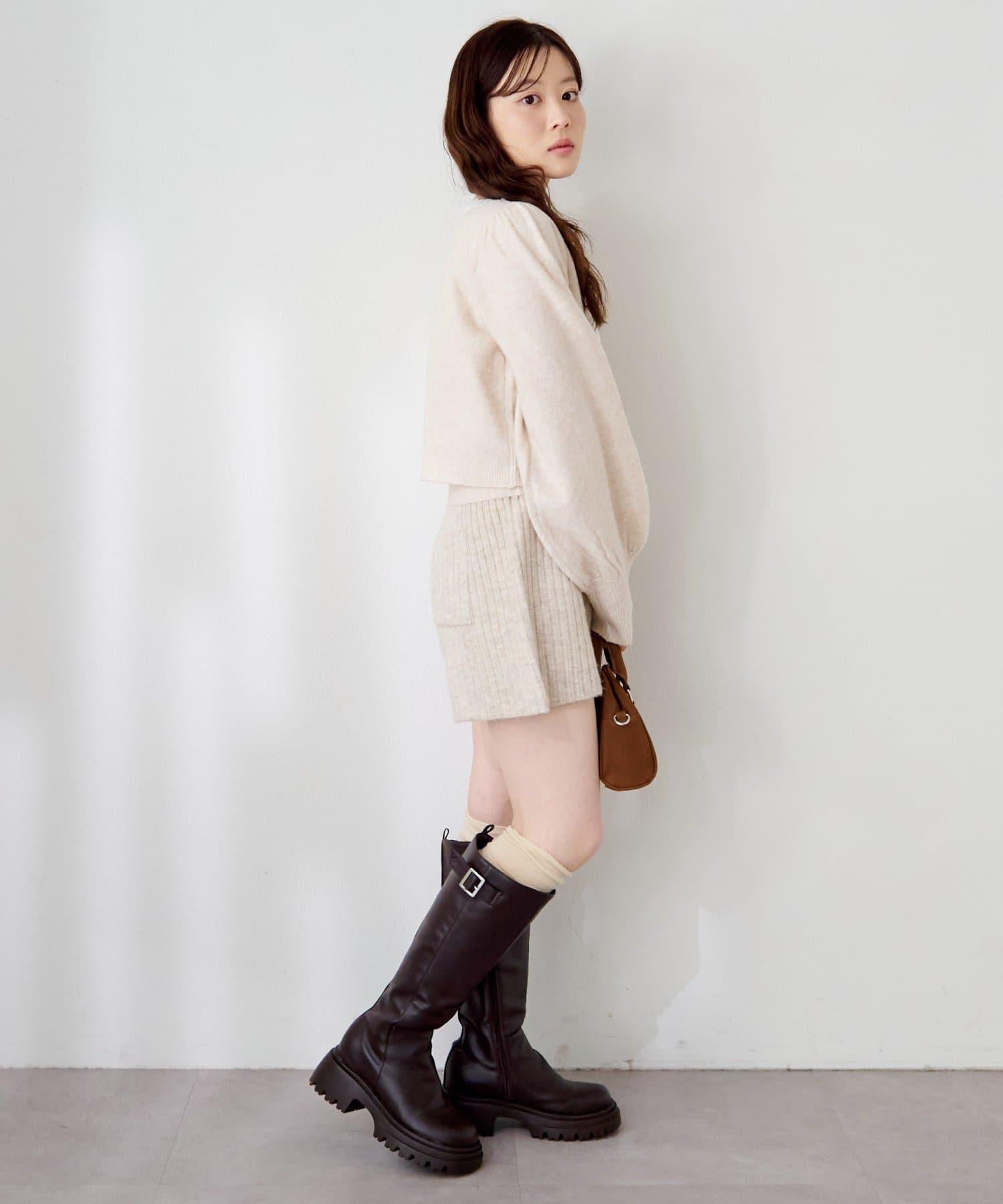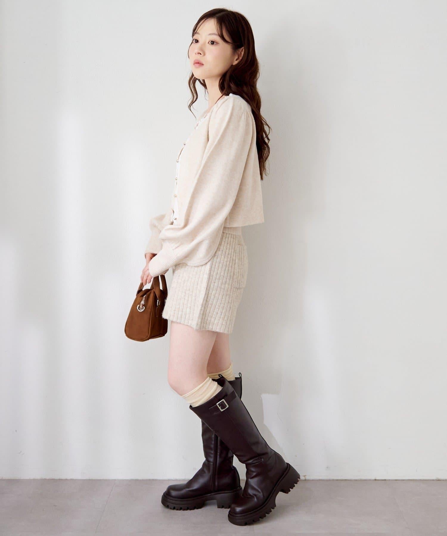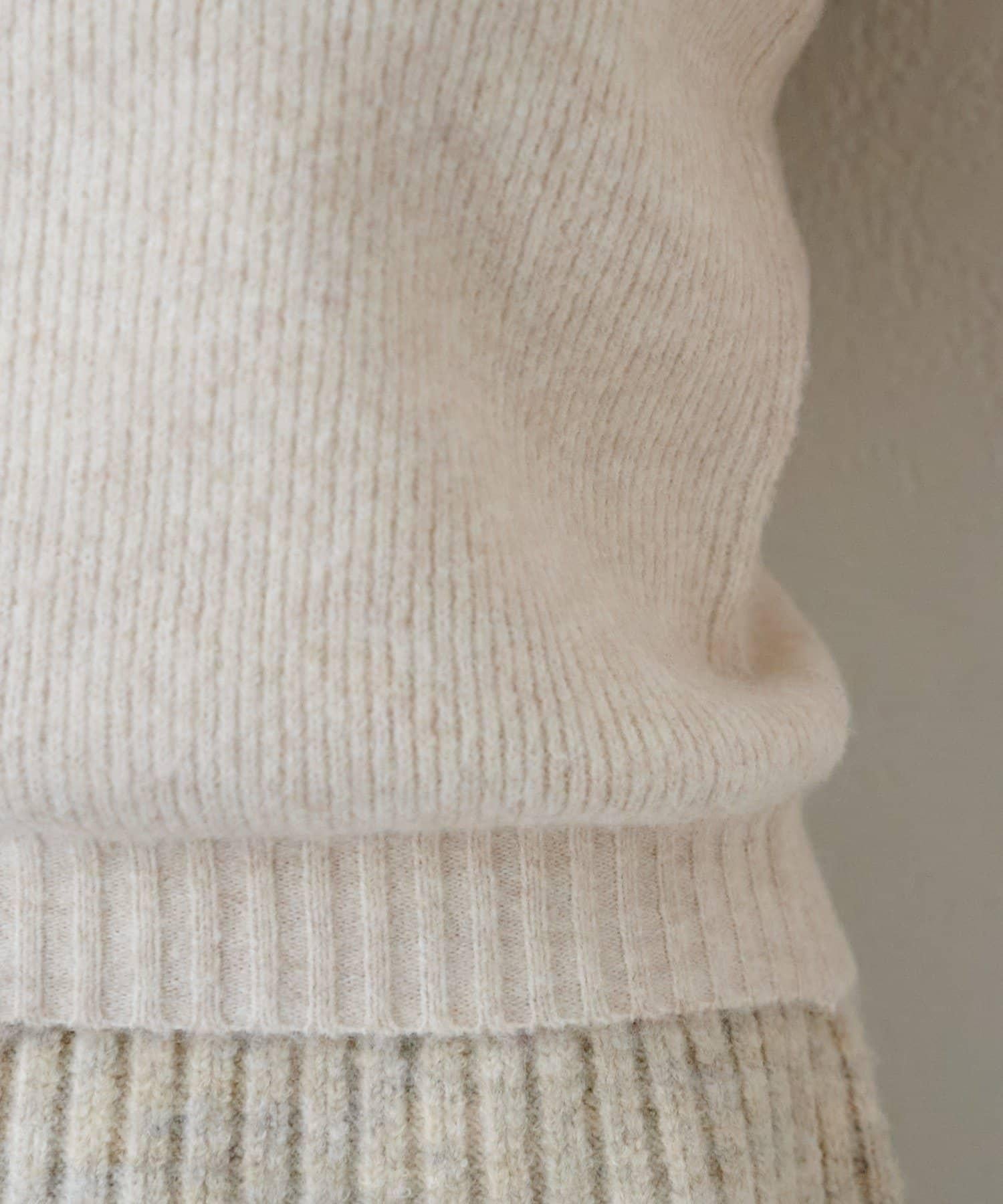 搭配同色系針織長褲和喇叭裙,打造女性化的單色搭配。