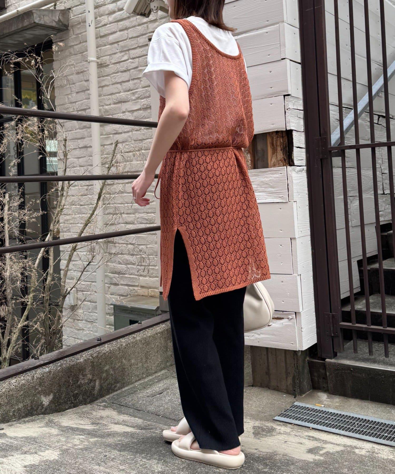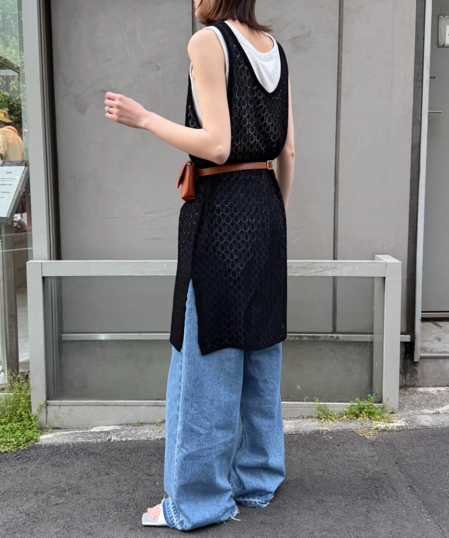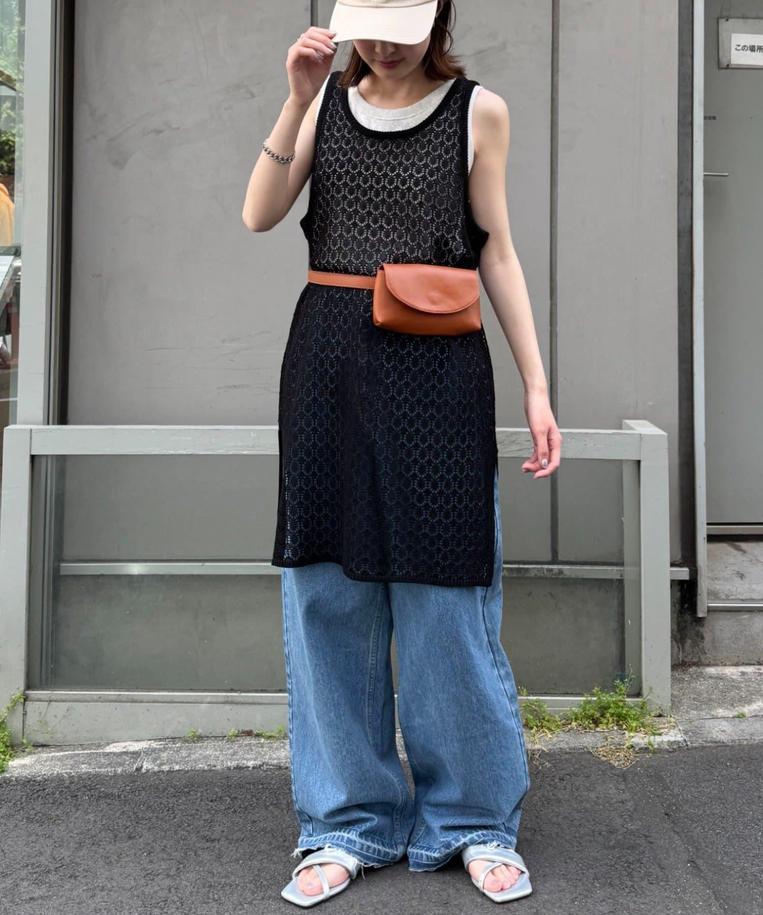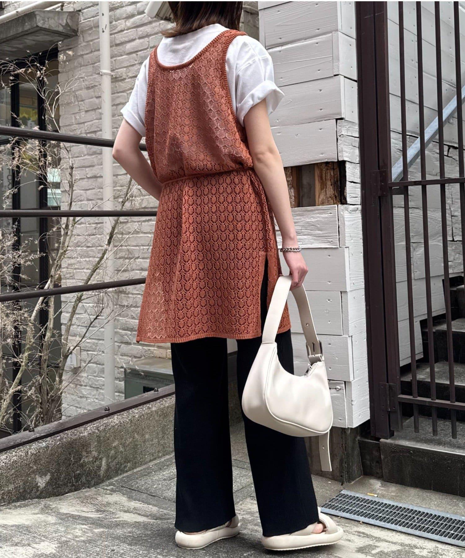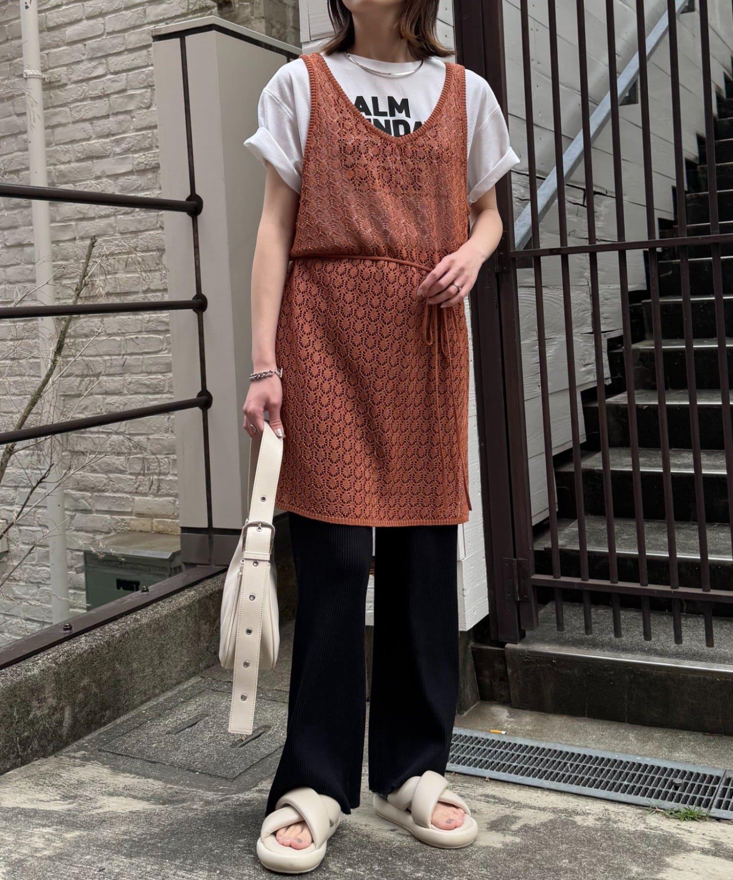 由於側面開衩處的腰部比較寬鬆,所以搭配寬長褲和喇叭裙也很好看!