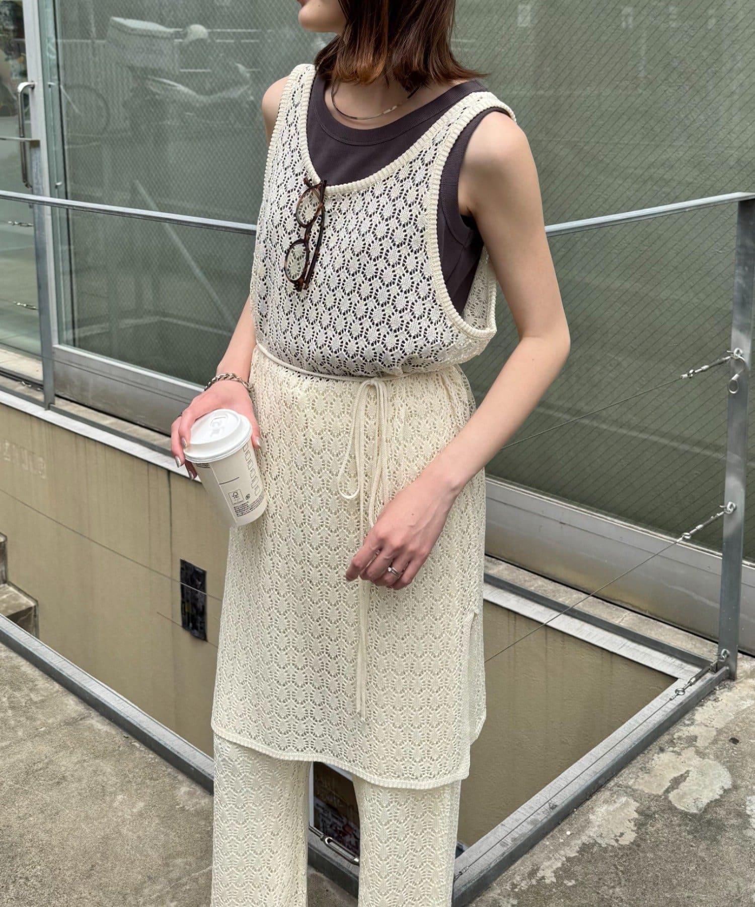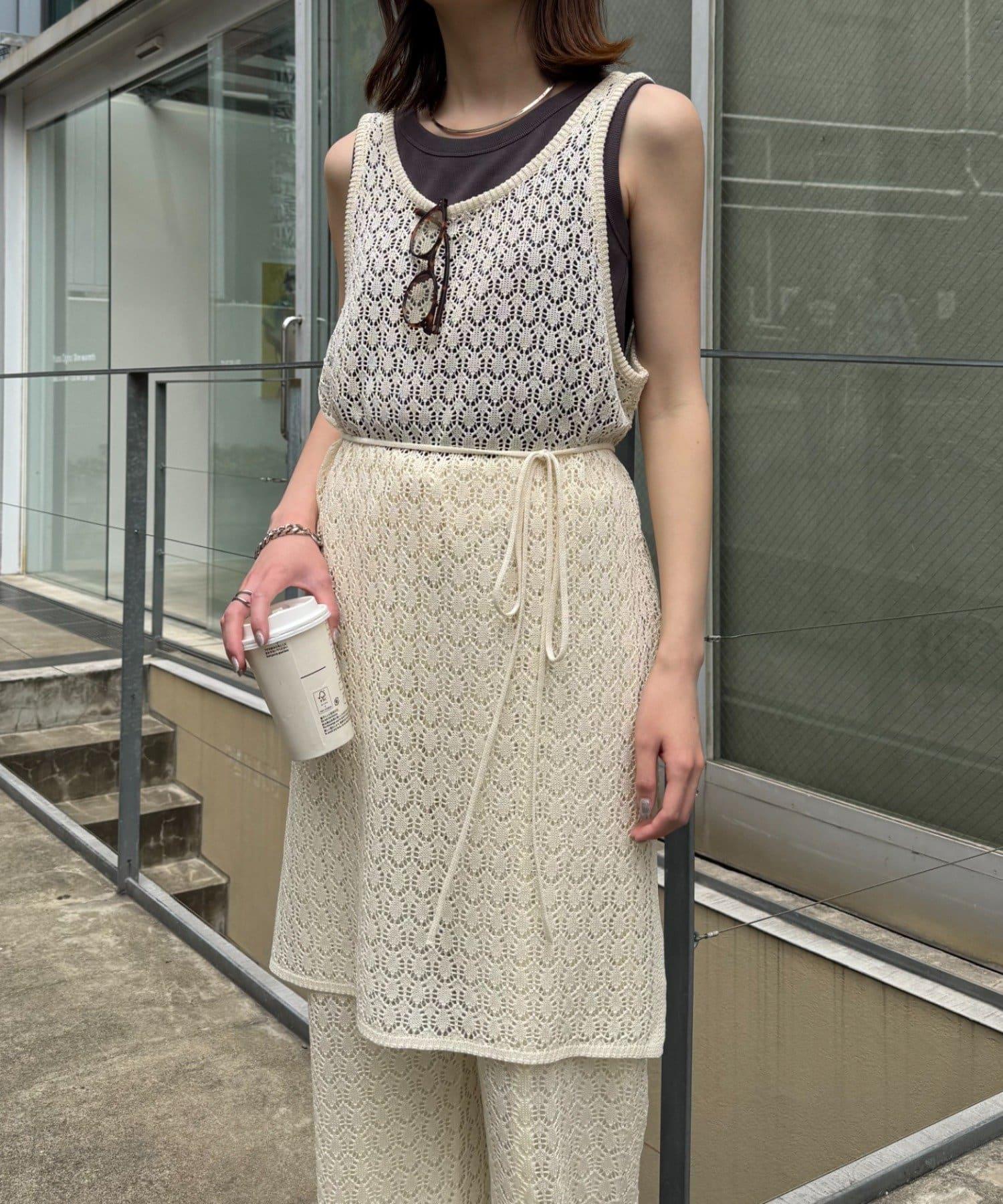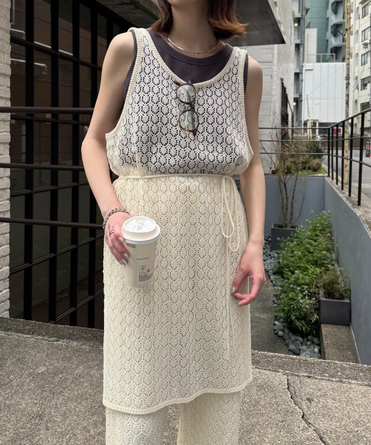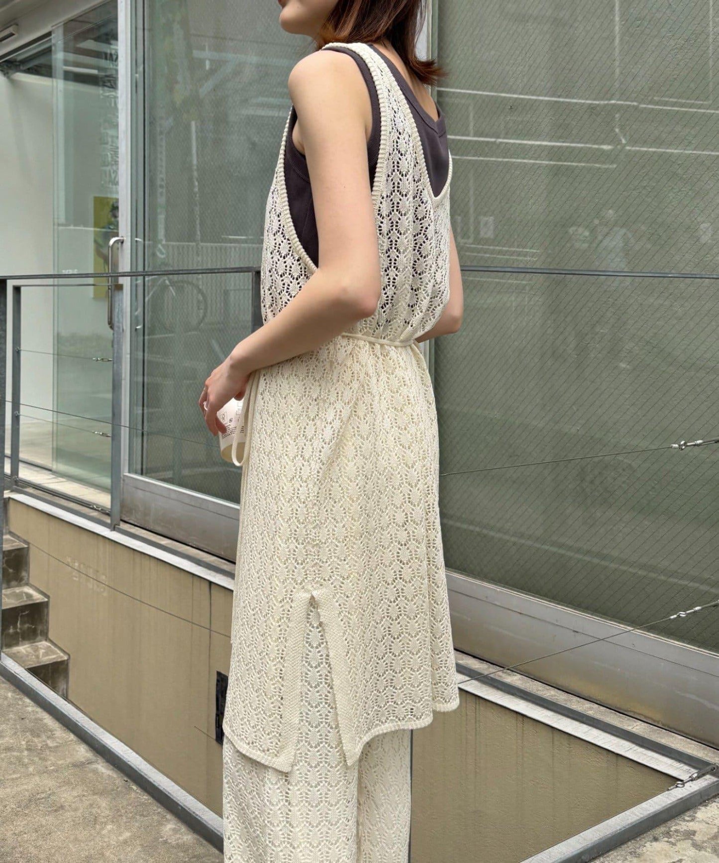 由於側面開衩處的腰部比較寬鬆,所以搭配寬長褲和喇叭裙也很好看!