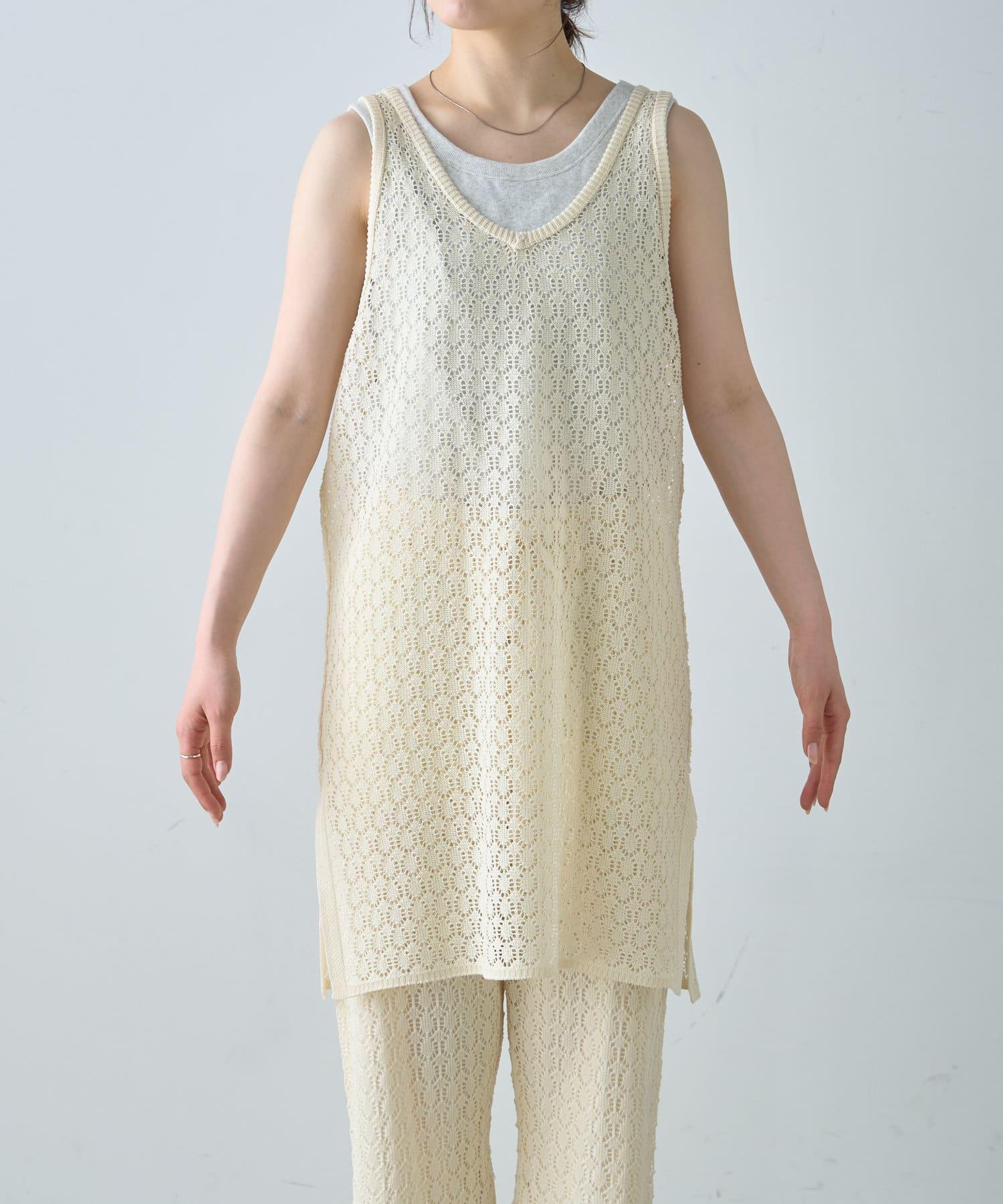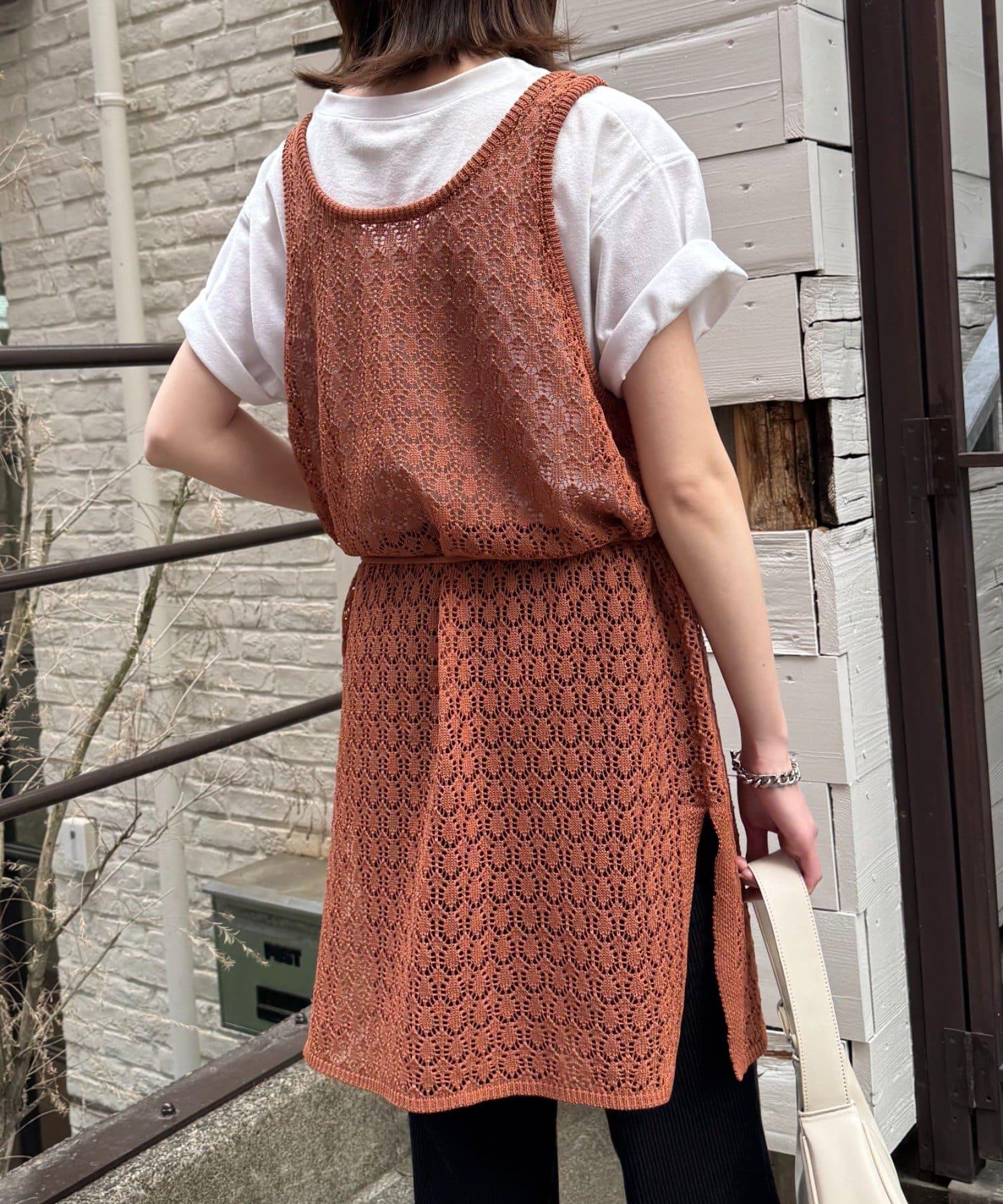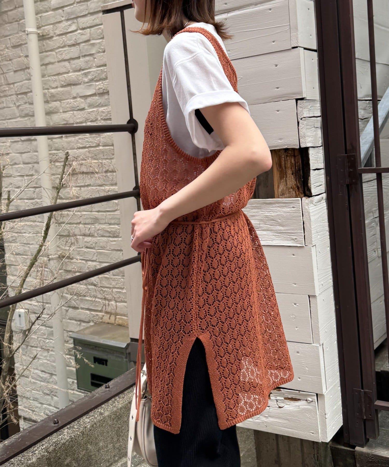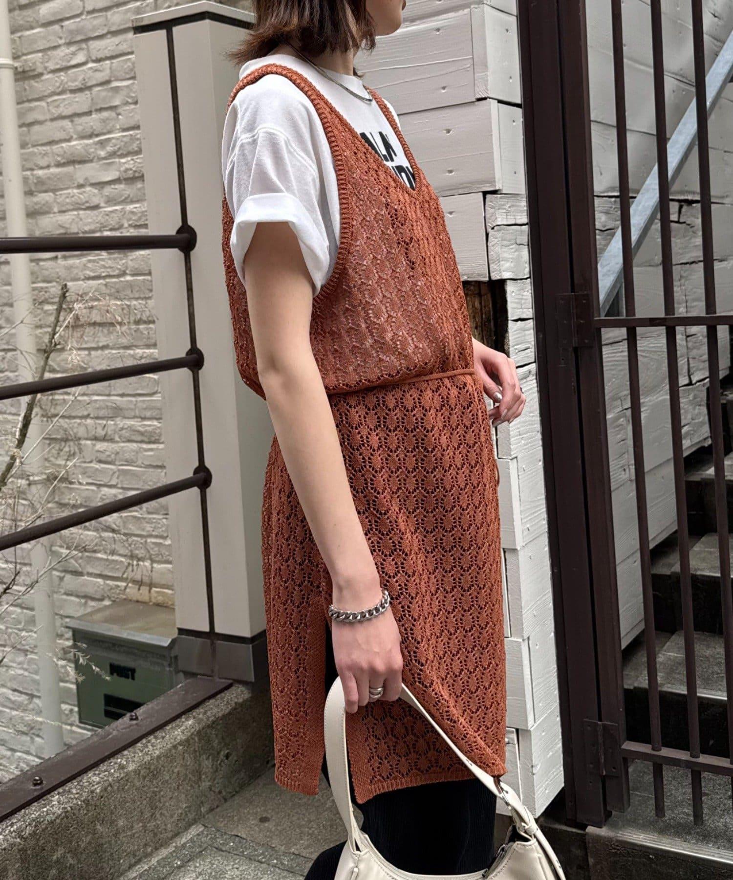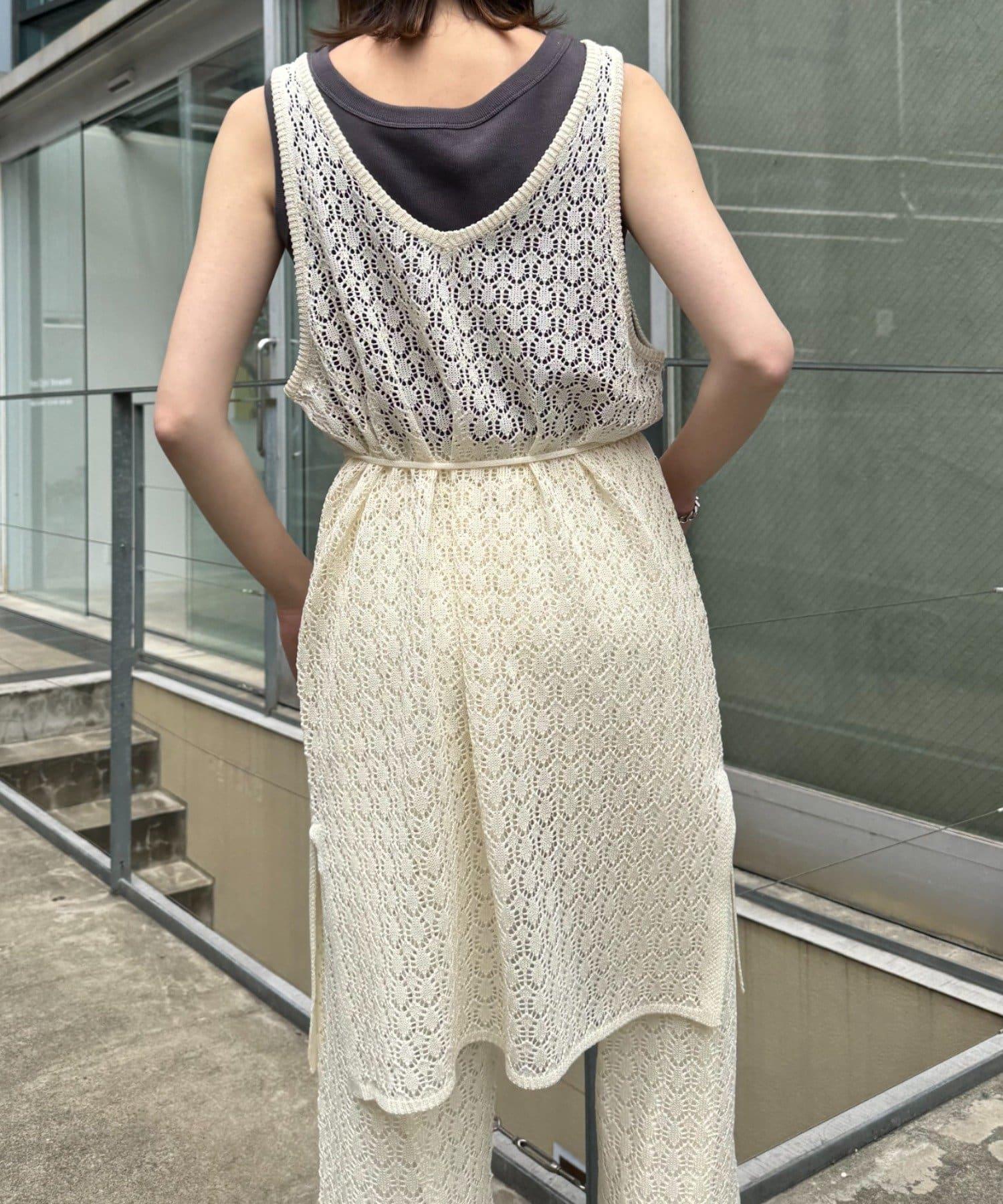 由於側面開衩處的腰部比較寬鬆,所以搭配寬長褲和喇叭裙也很好看!