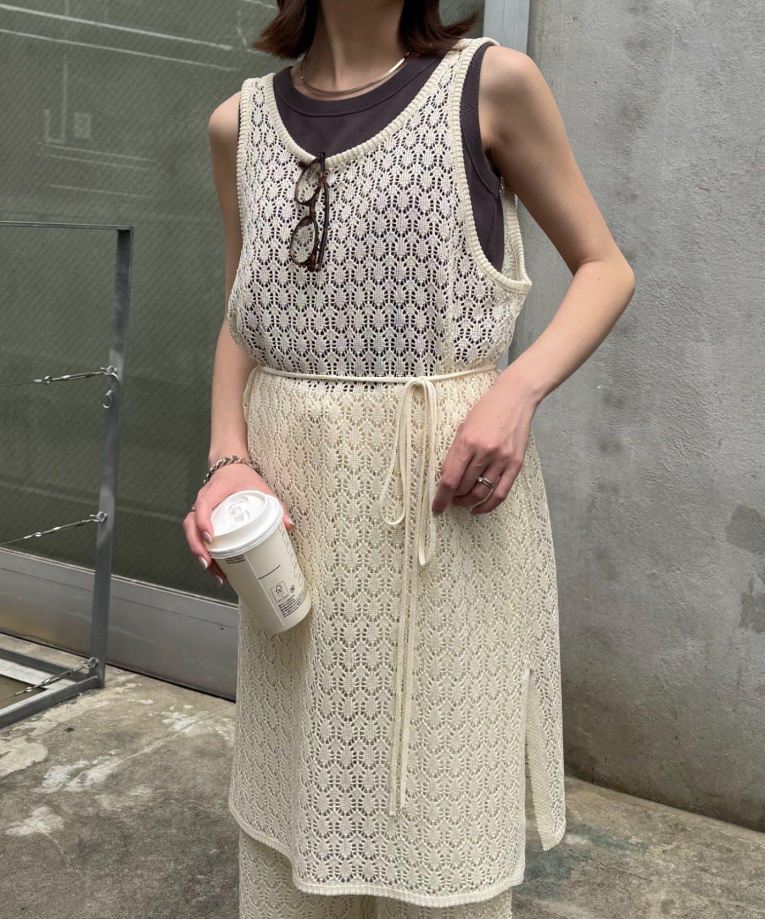 如果用附帶的絲帶在腰部做個標記,就能整齊地搭配出修身效果。