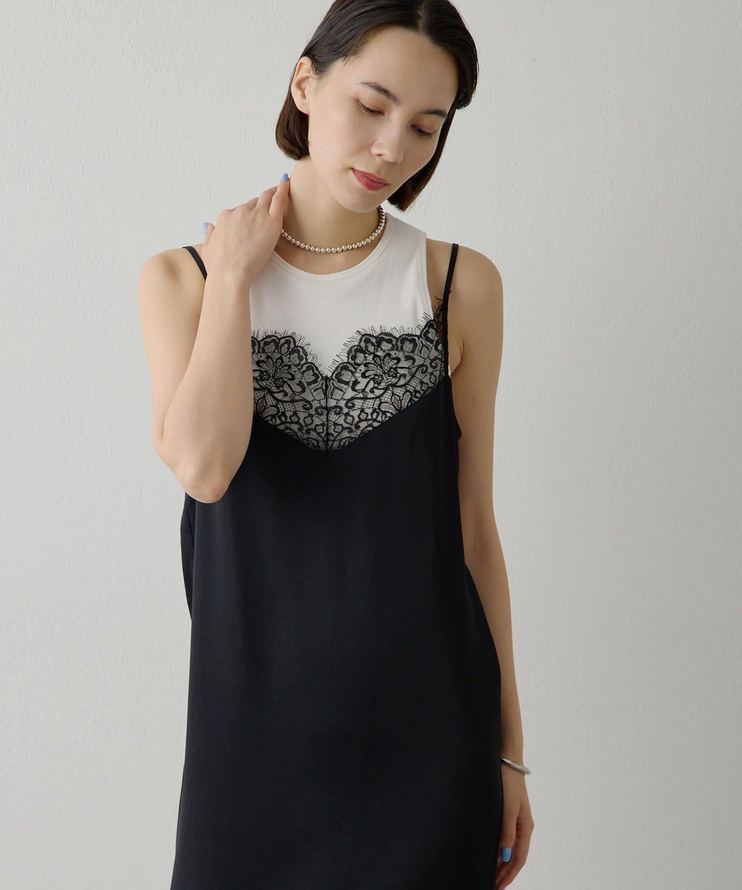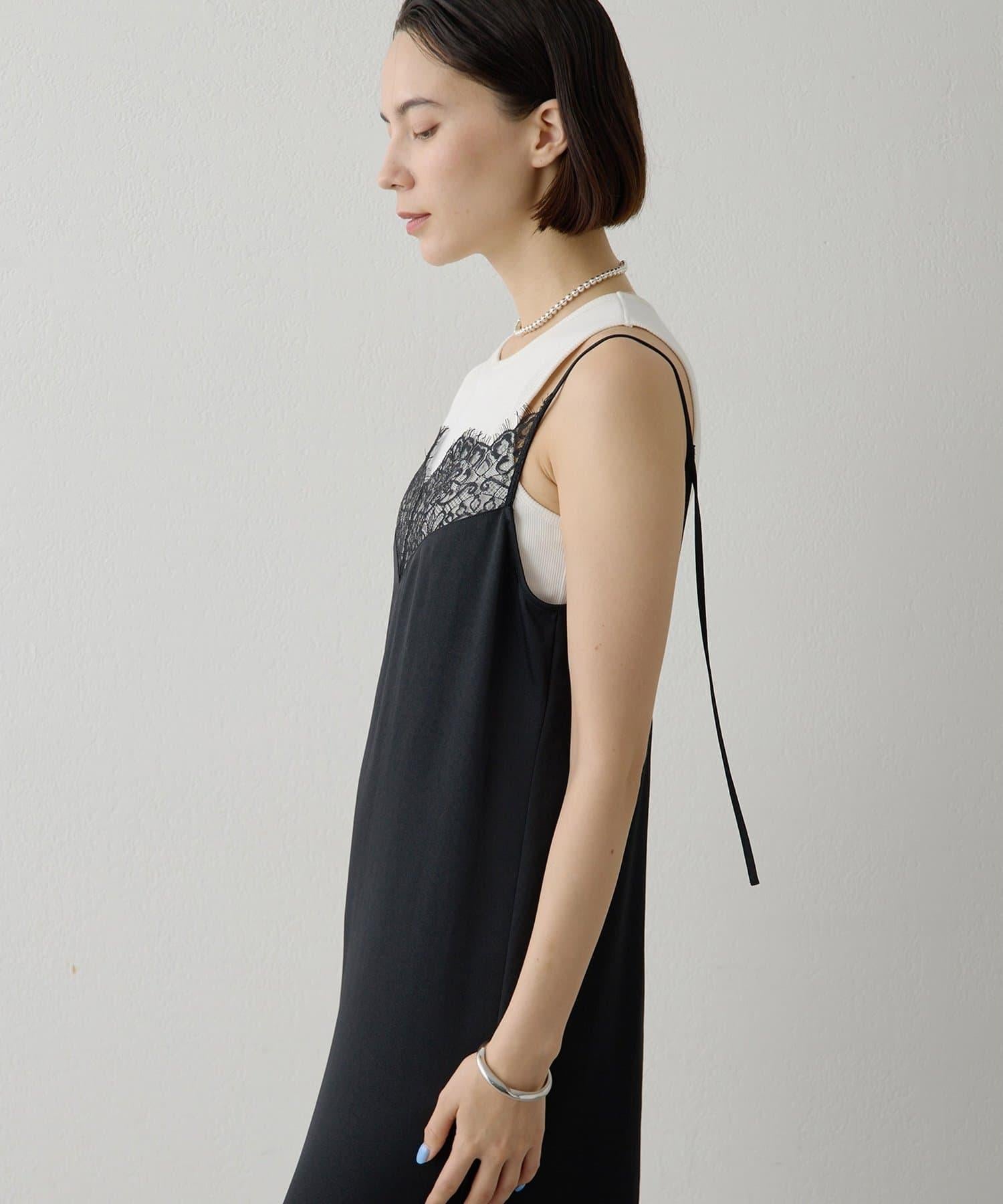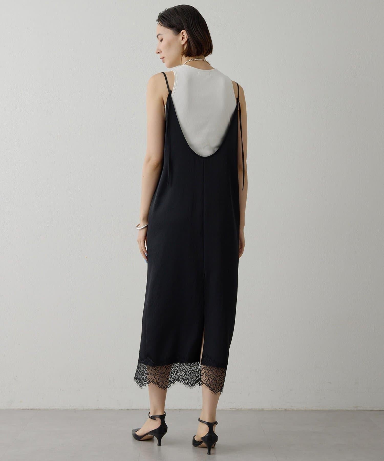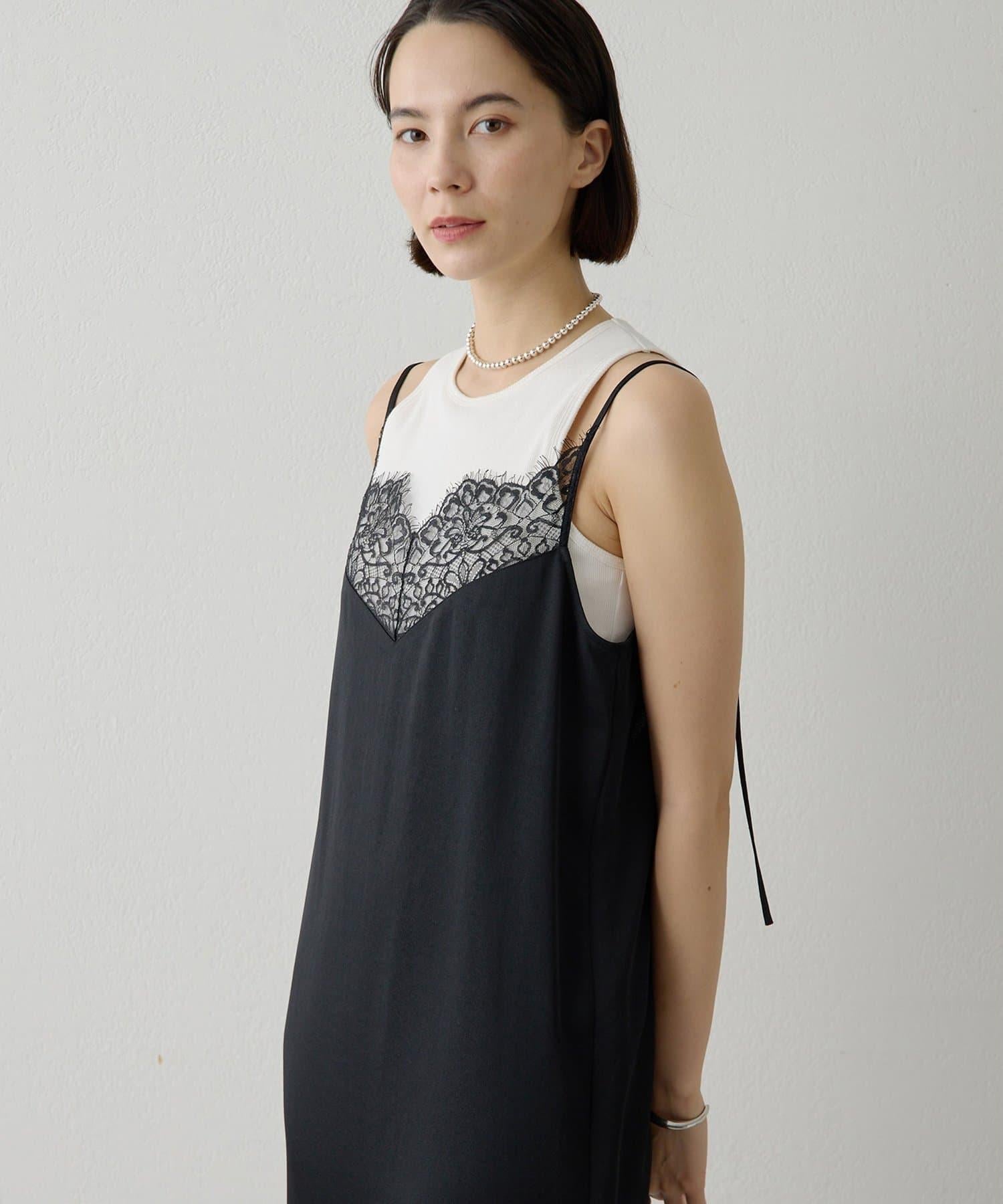 這款吊帶連衣裙的胸前和下襬均飾有蕾絲。
