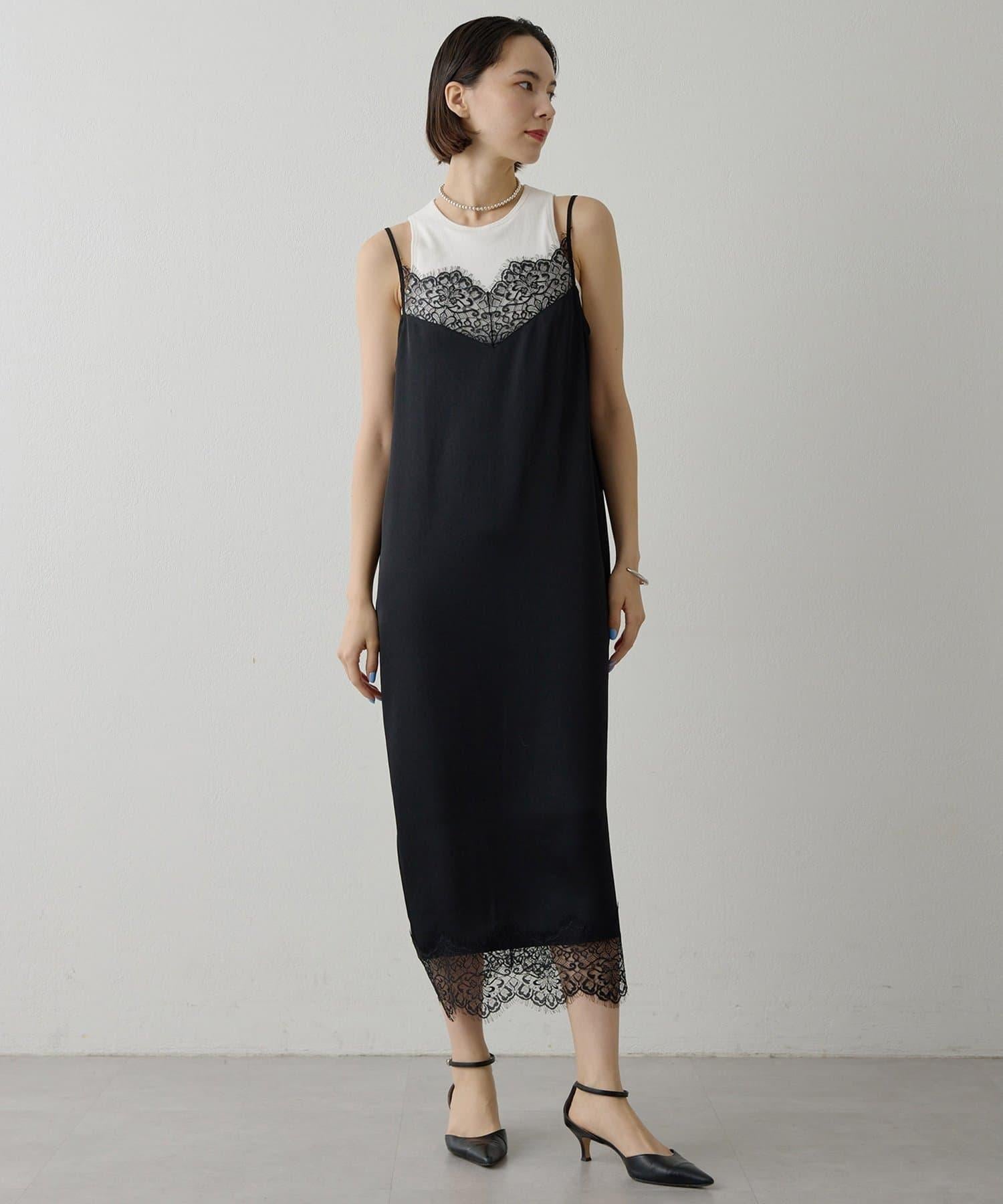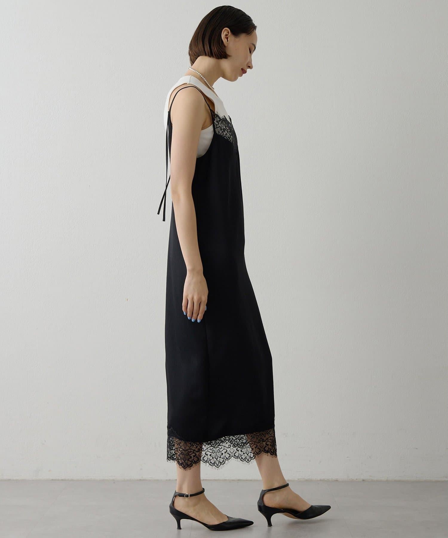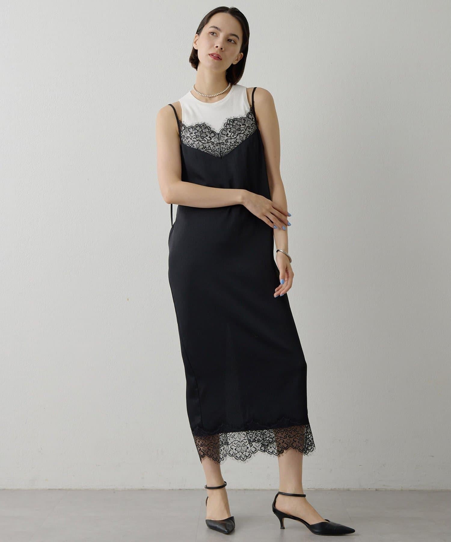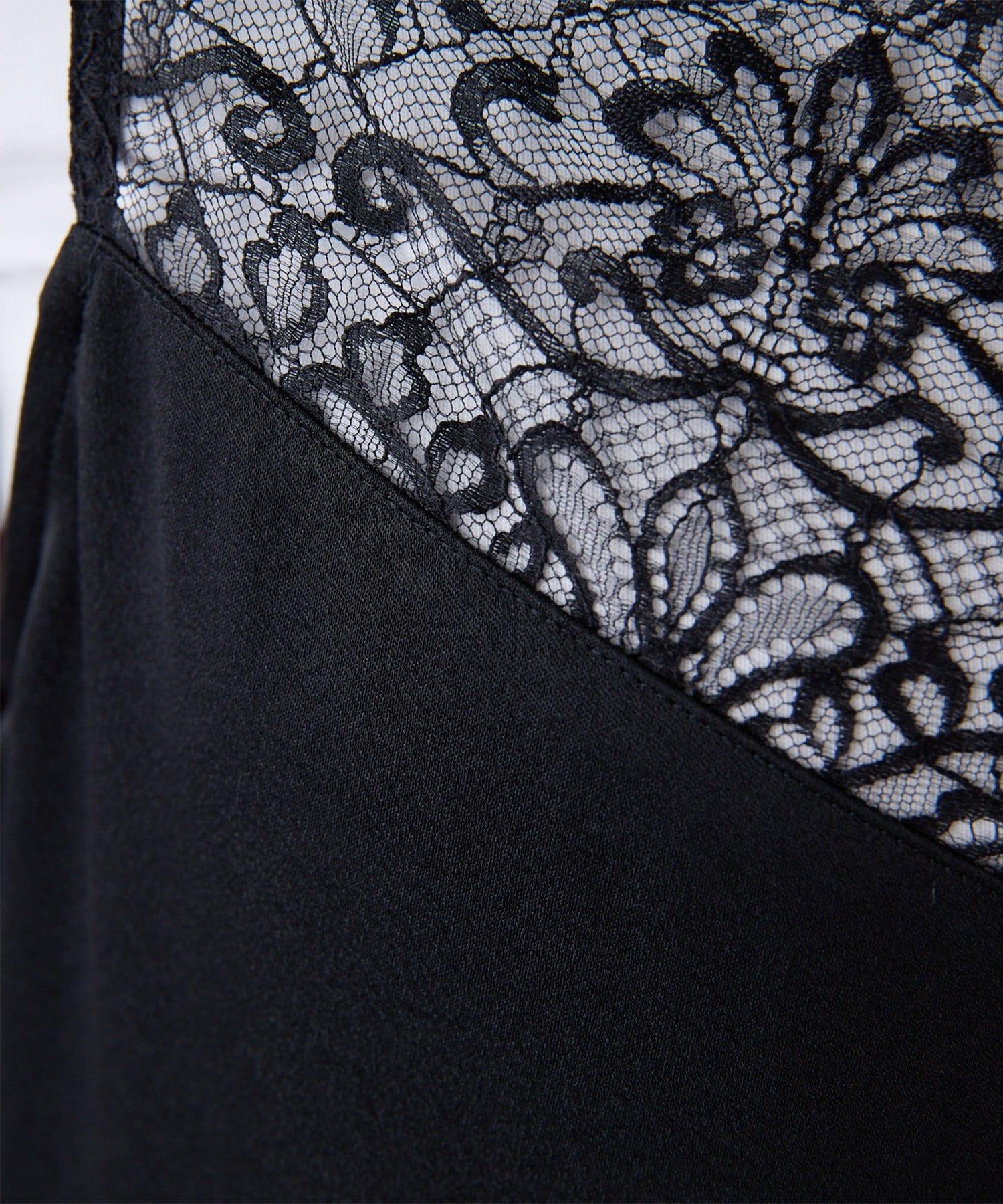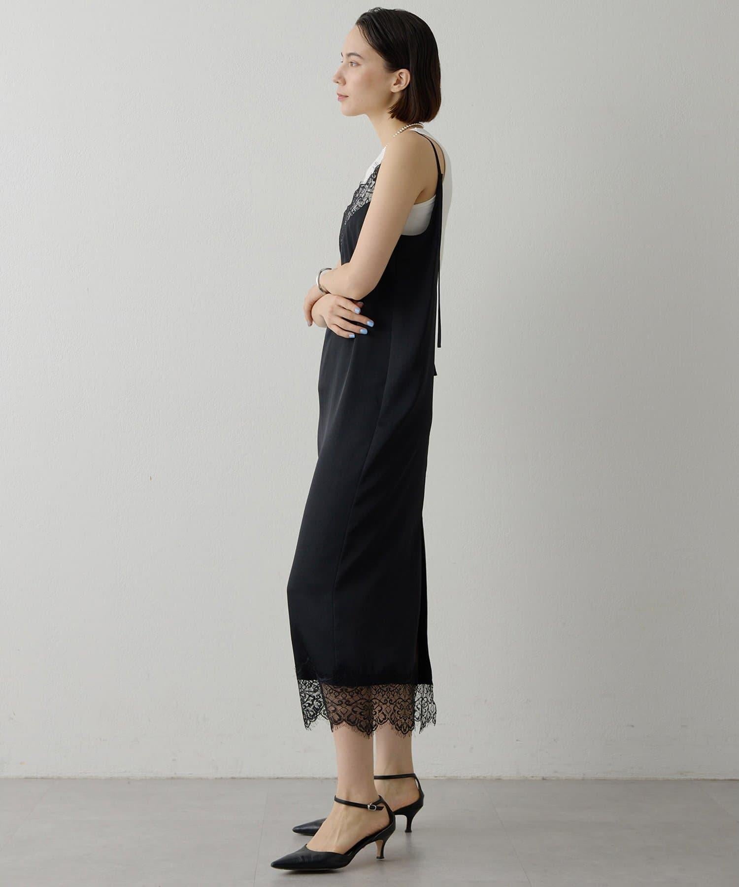這款吊帶連衣裙的胸前和下襬均飾有蕾絲。