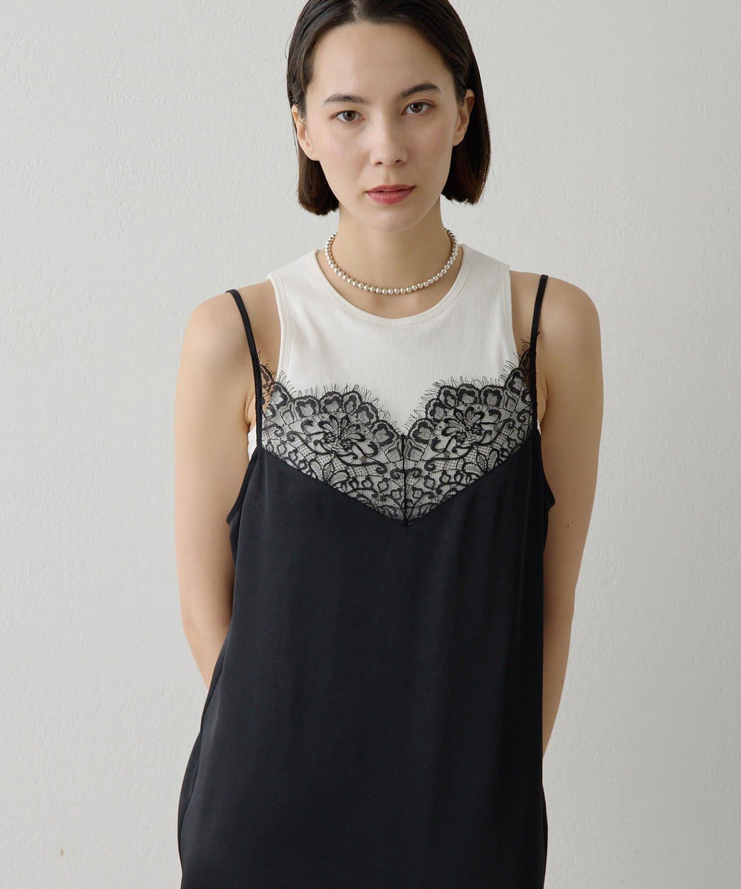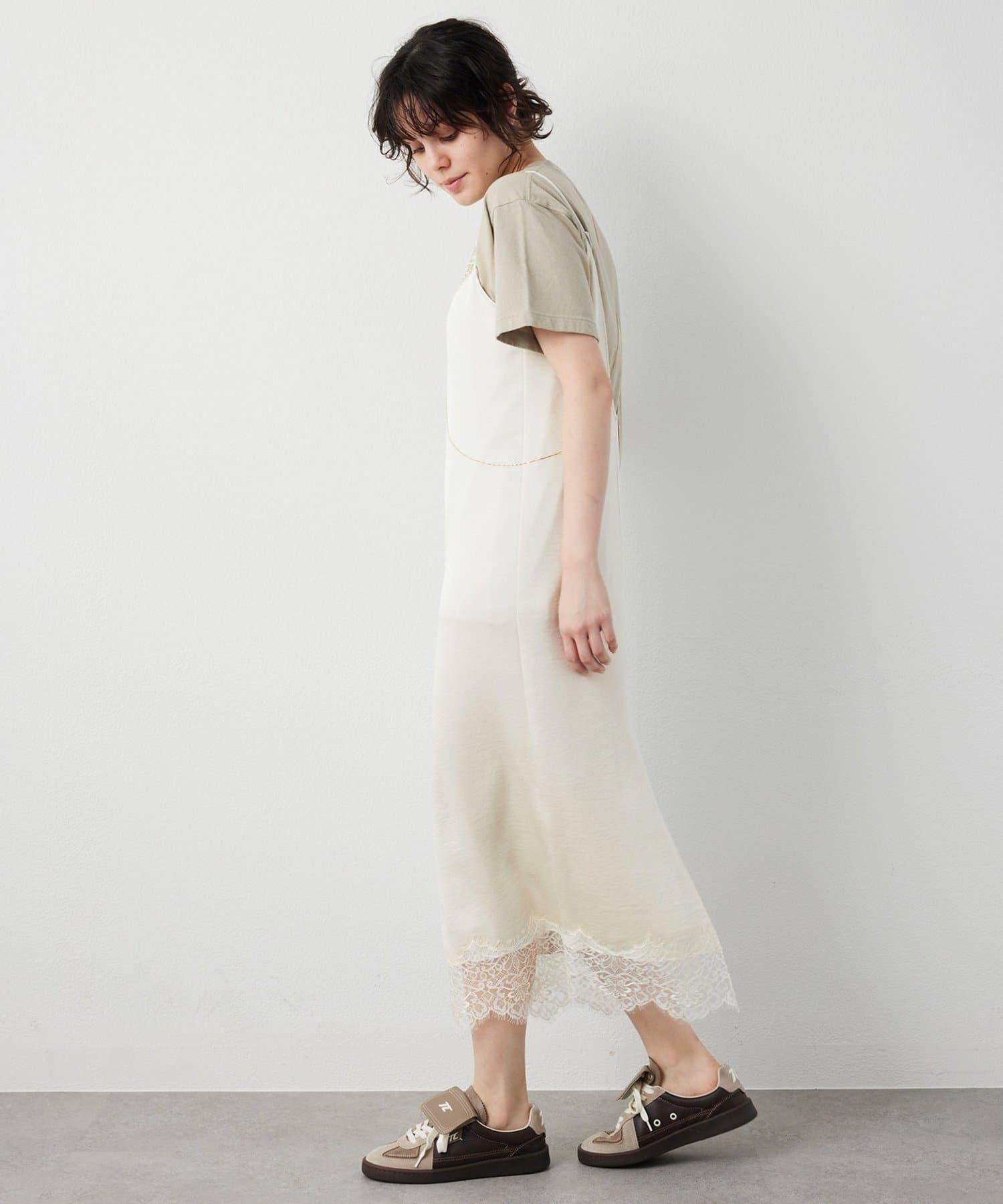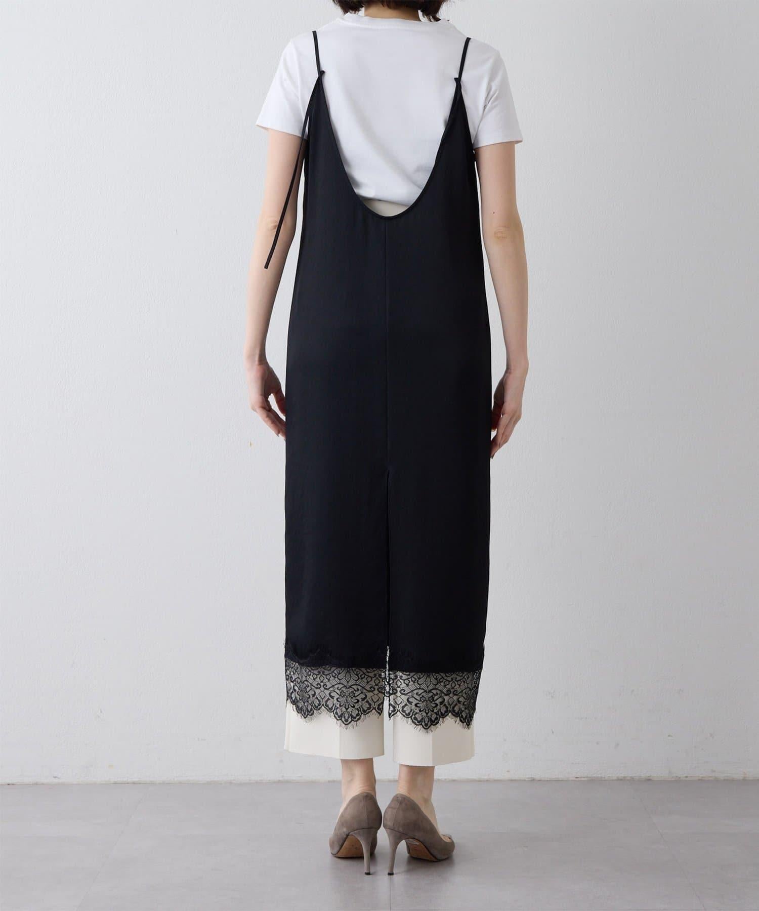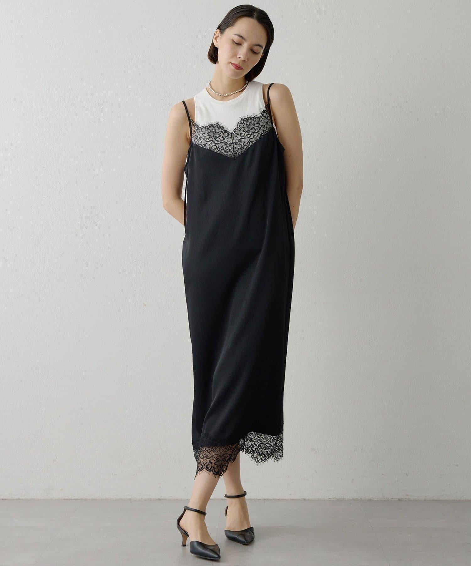 這款吊帶連衣裙的胸前和下襬均飾有蕾絲。