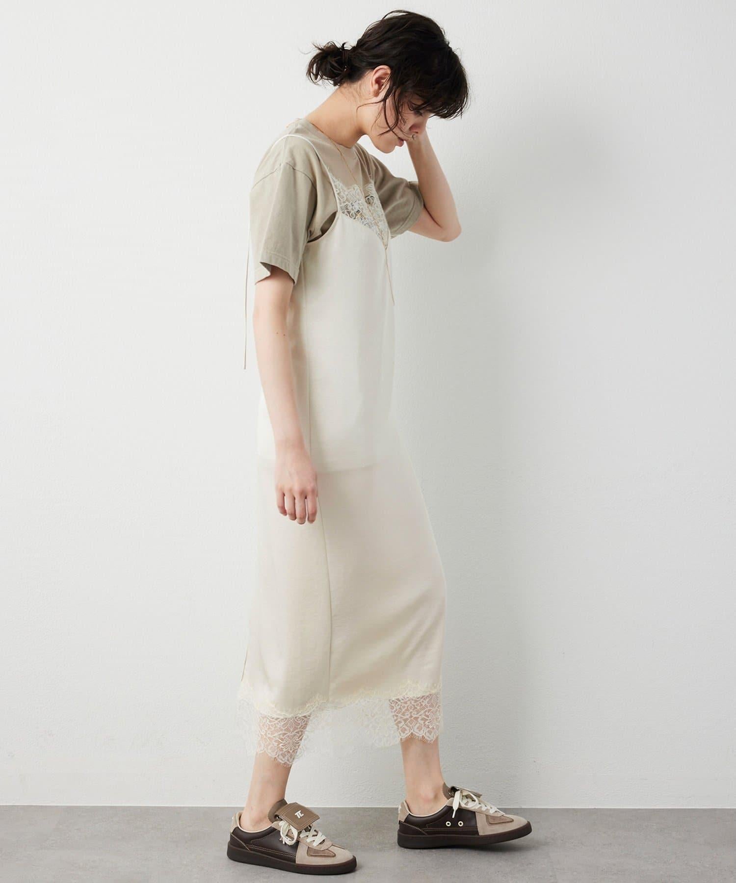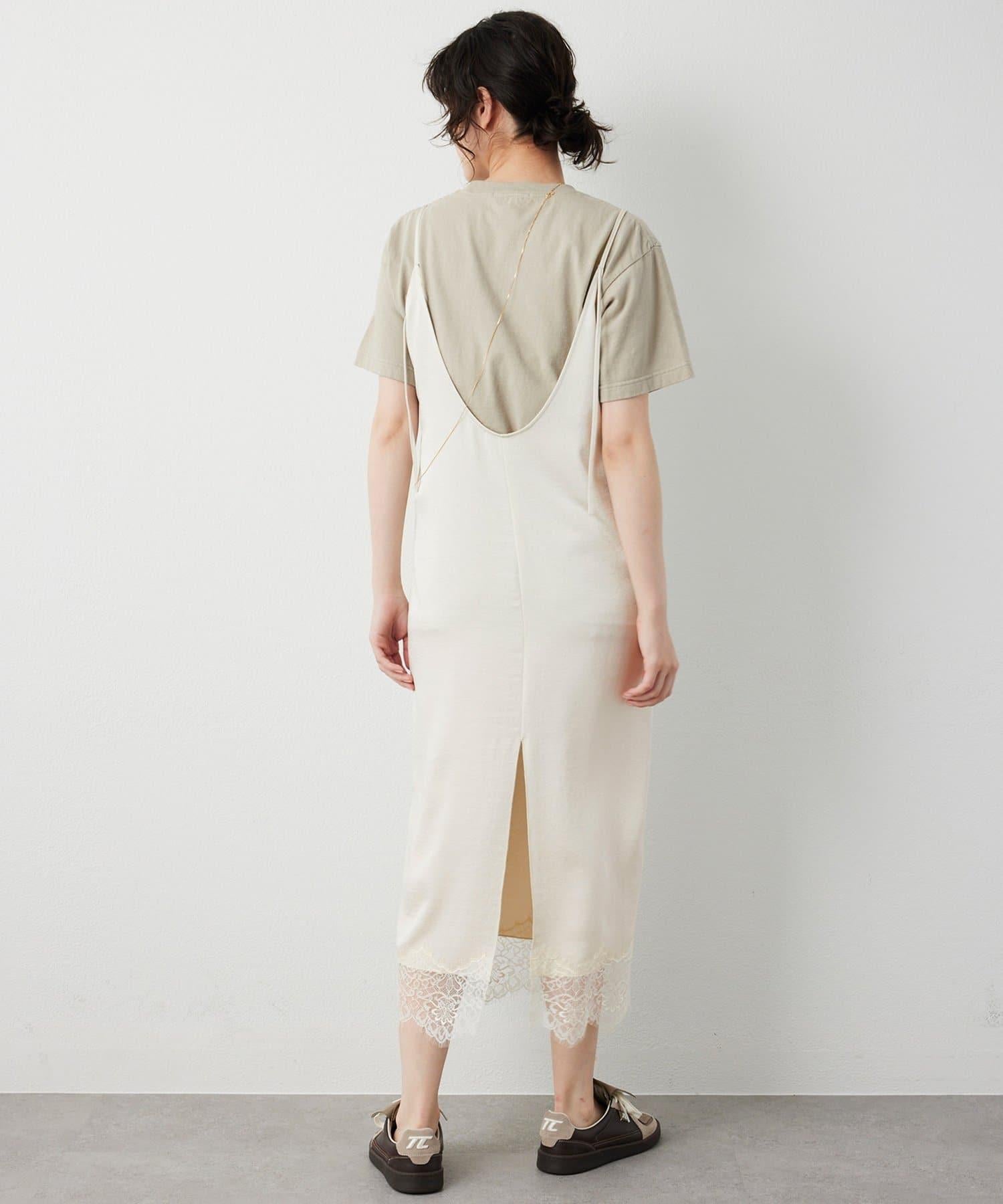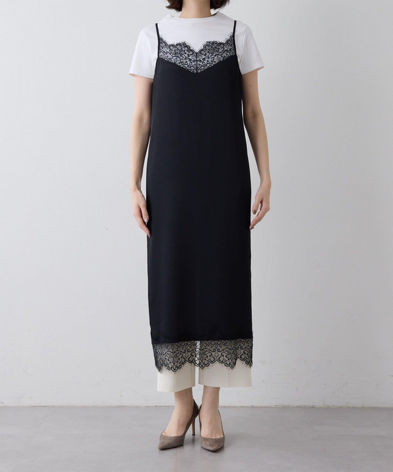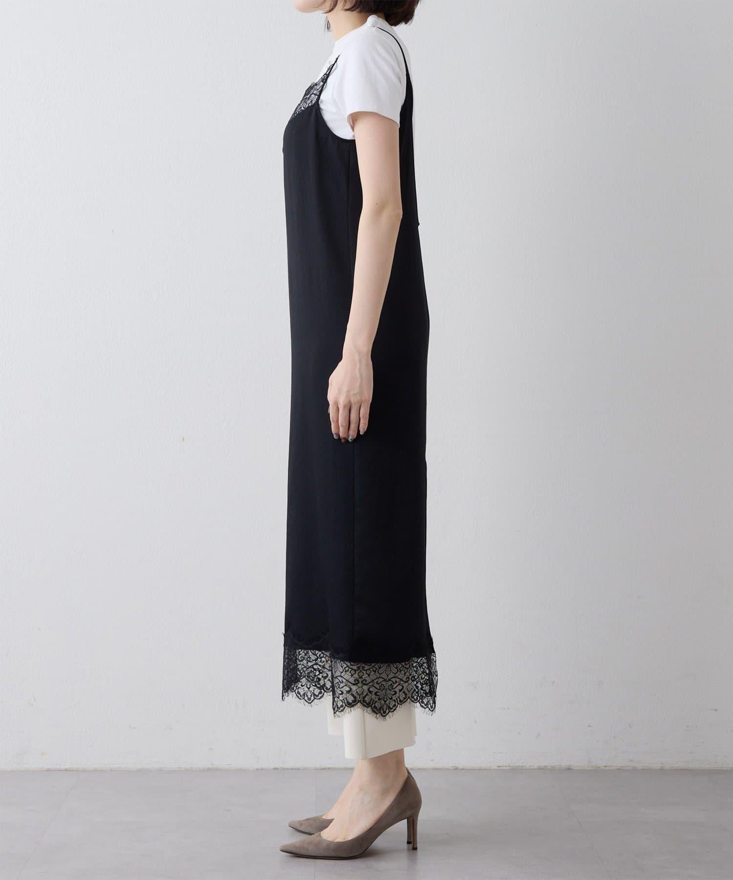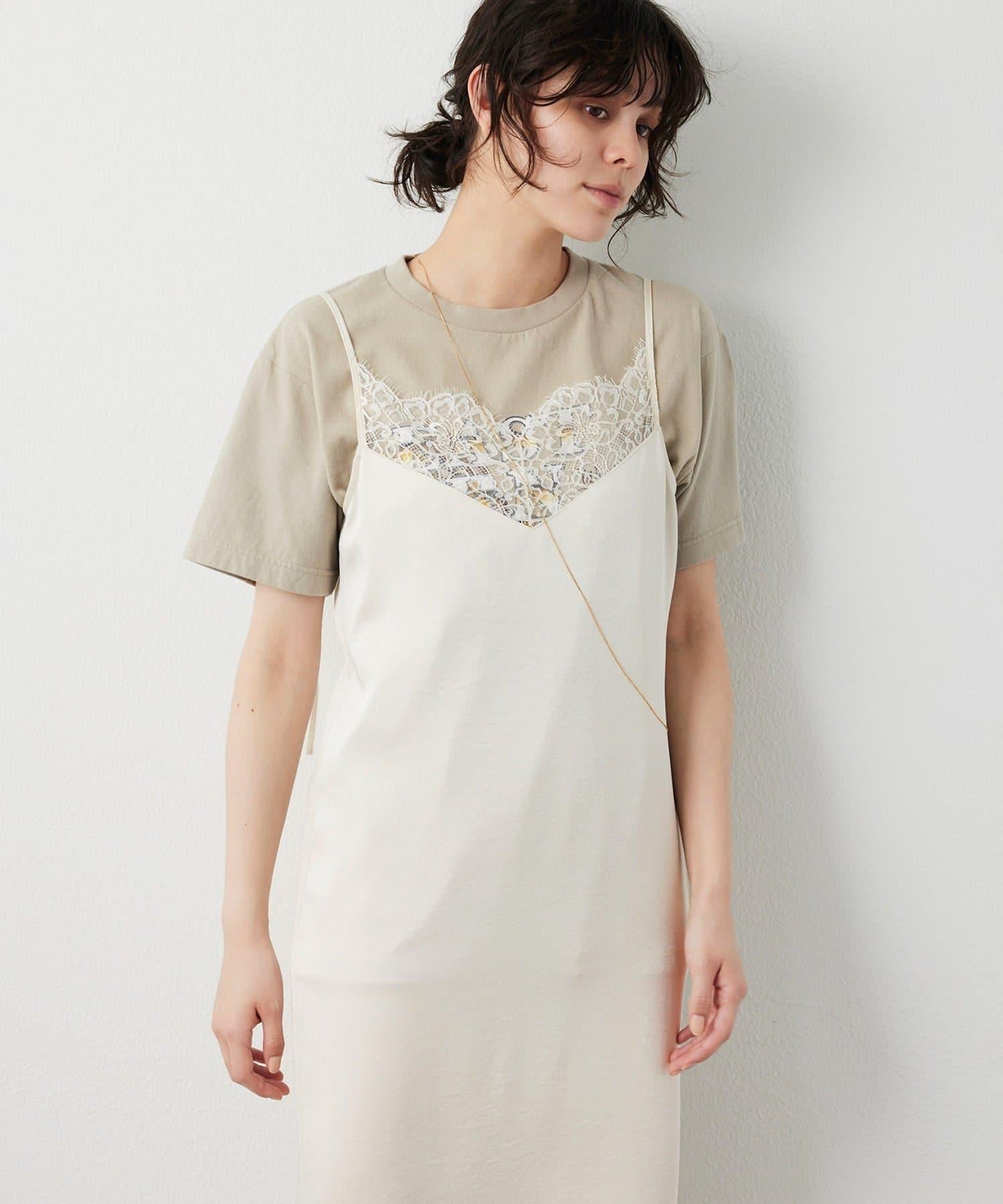 這款吊帶連衣裙的胸前和下襬均飾有蕾絲。