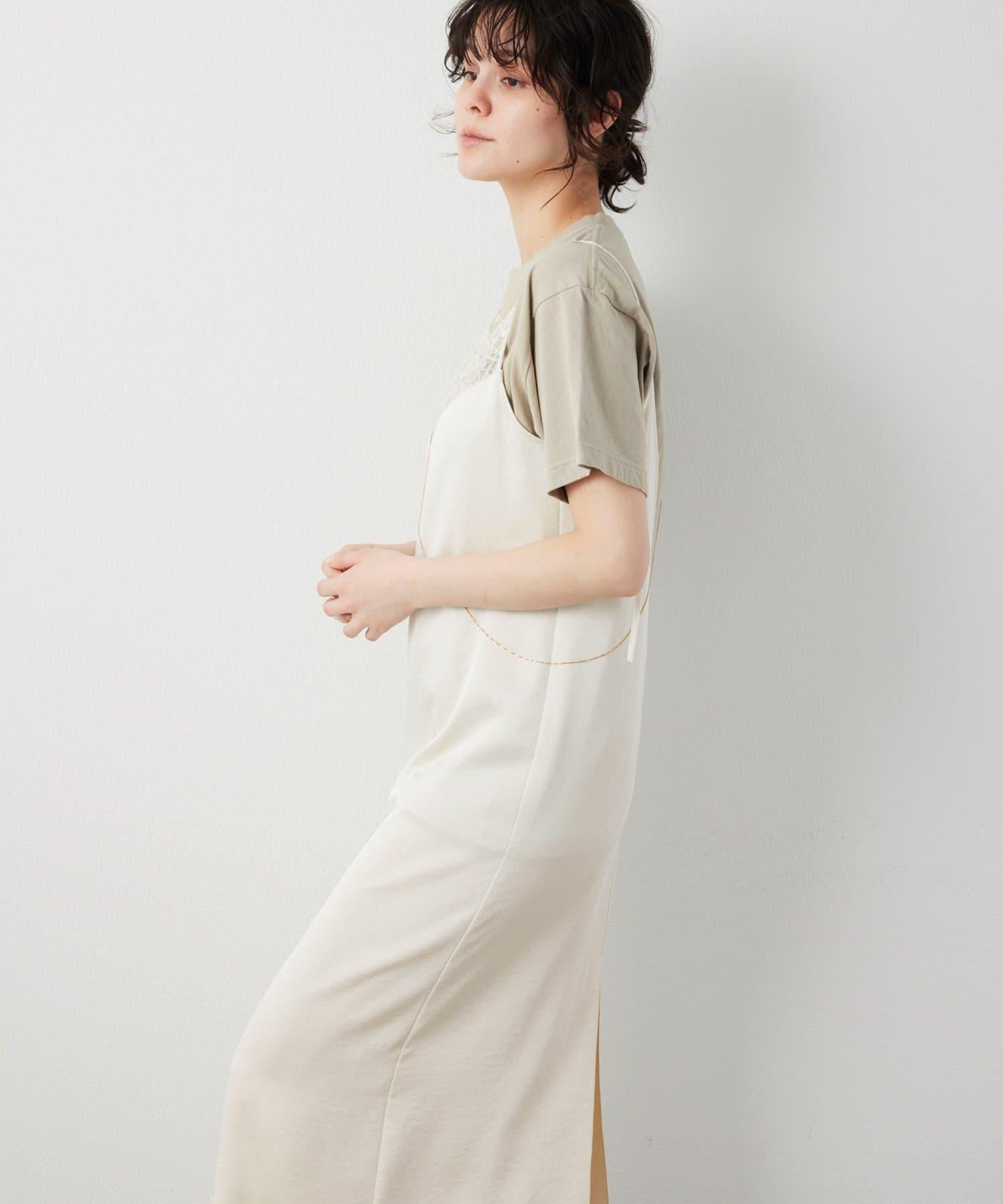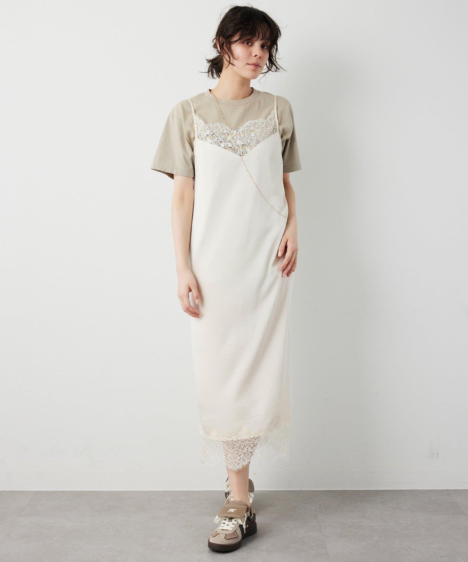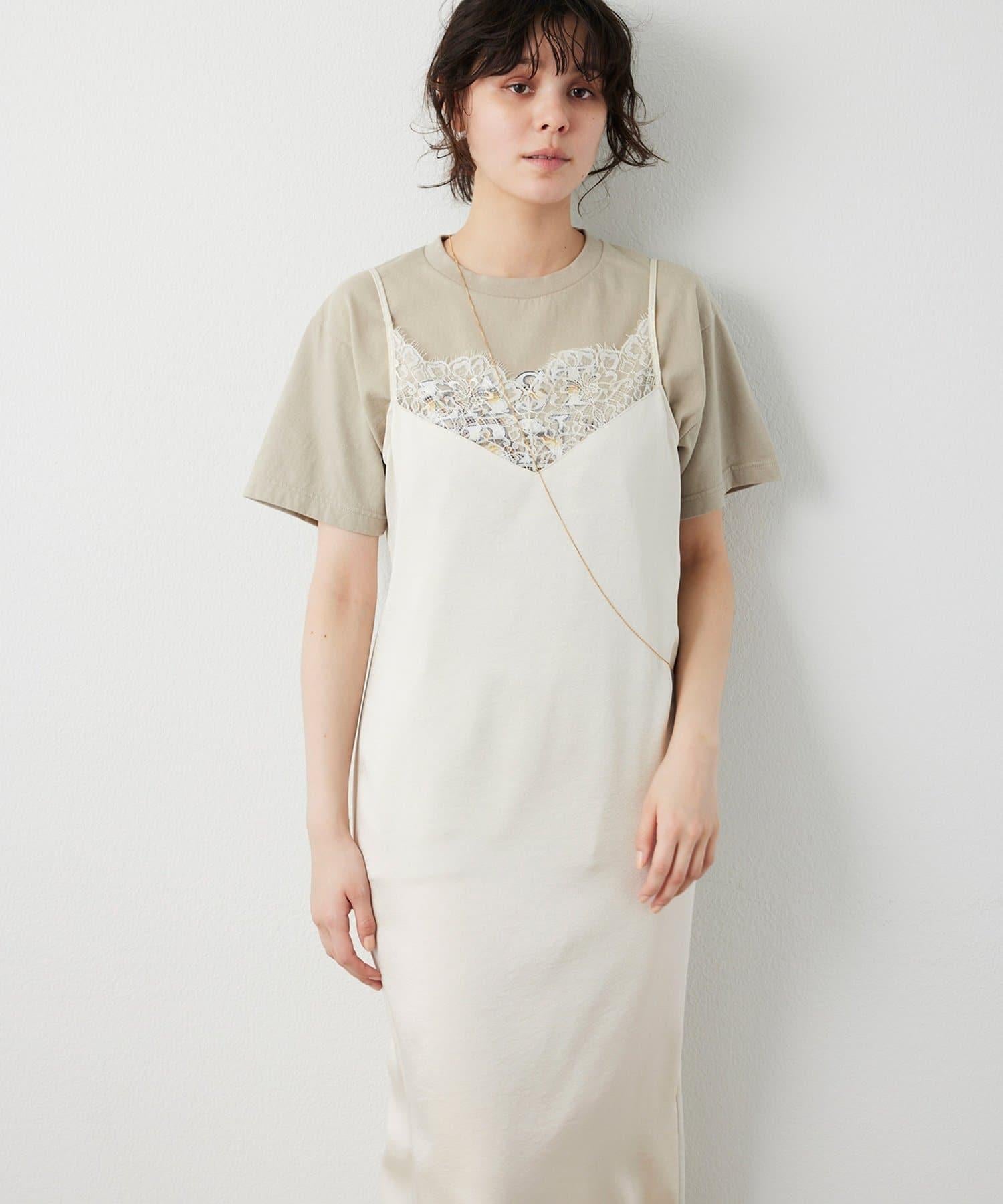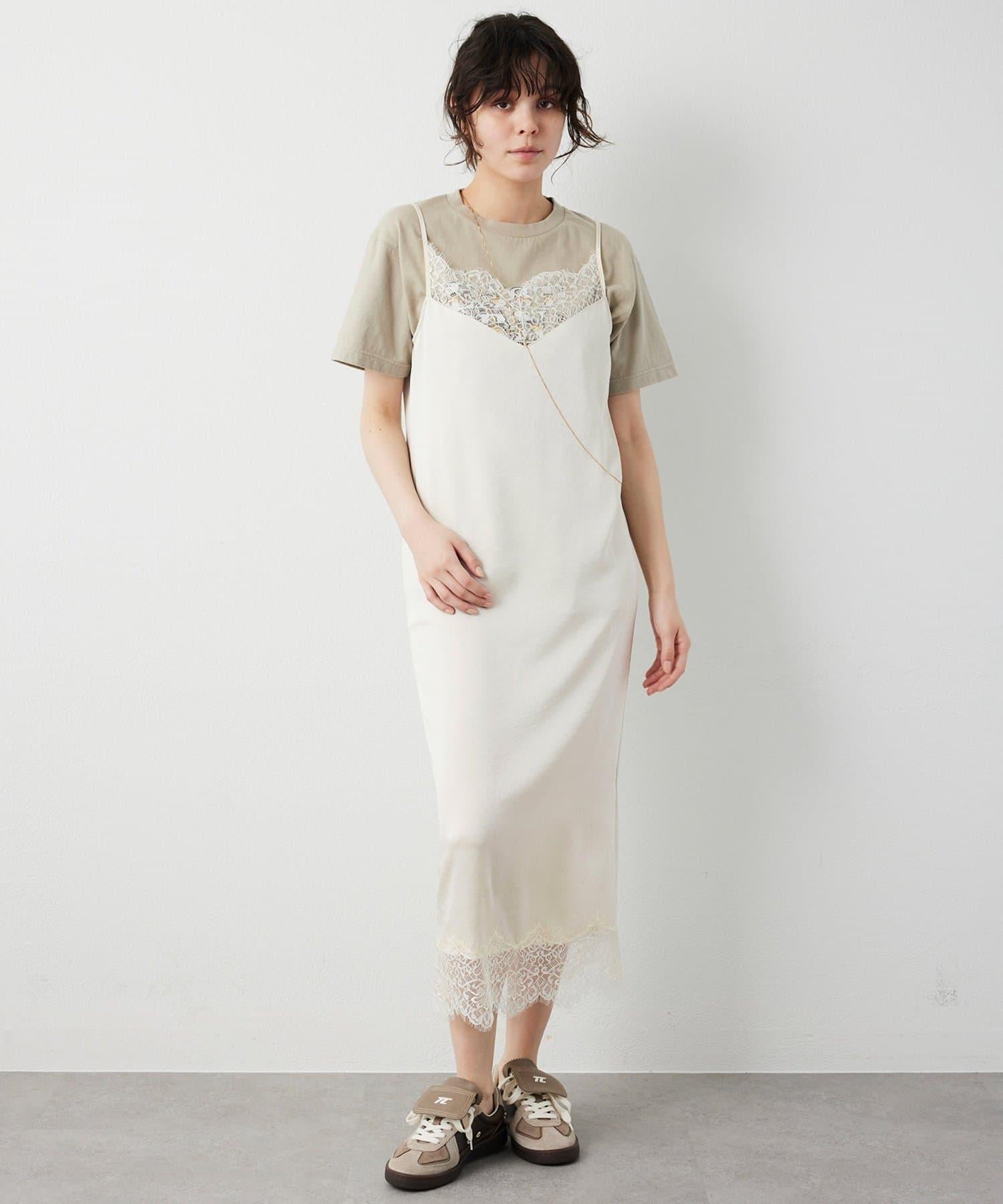 這款吊帶連衣裙的胸前和下襬均飾有蕾絲。