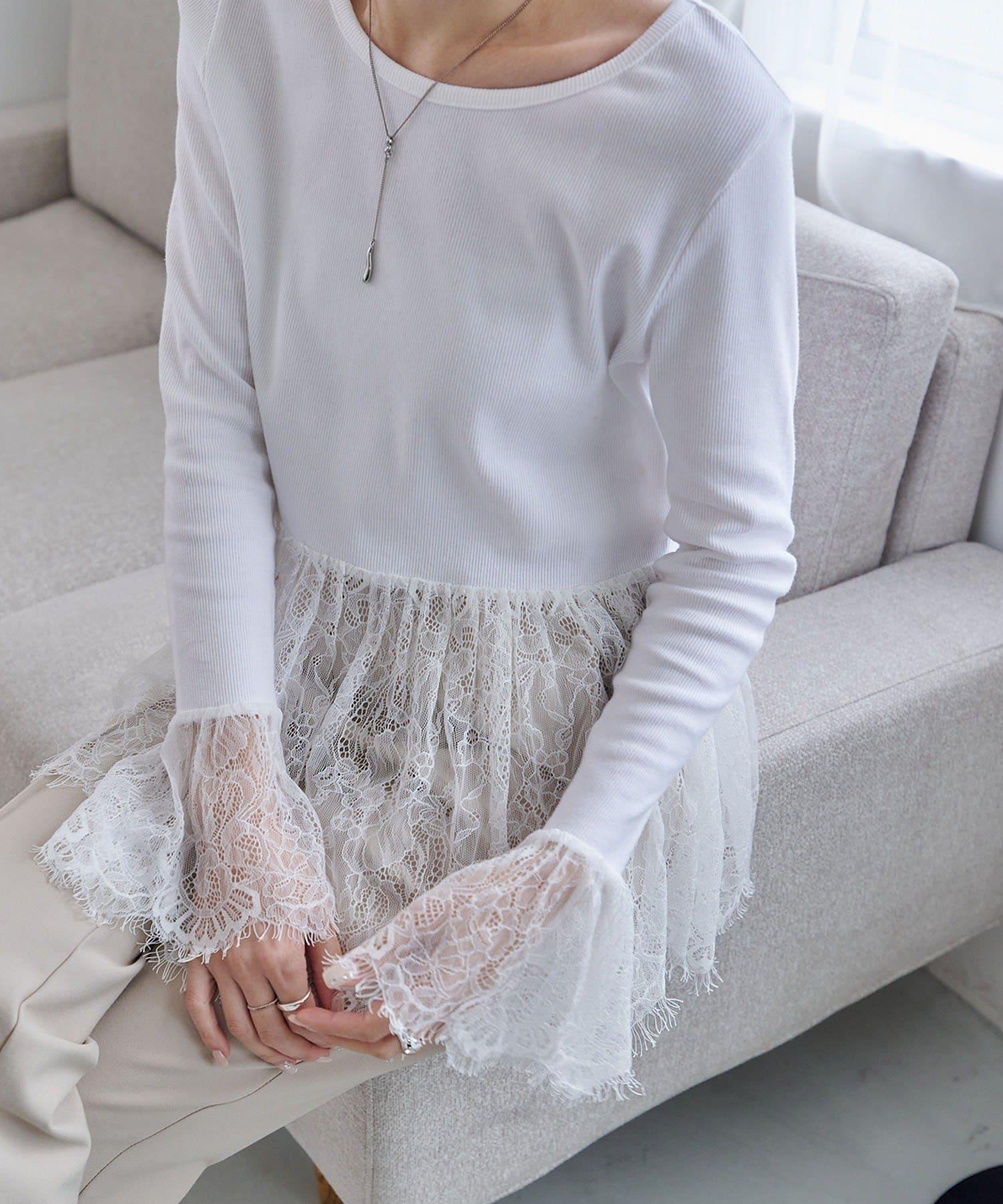 蕾絲對接的長 T 既能遮住臀部,又能遮住身體。