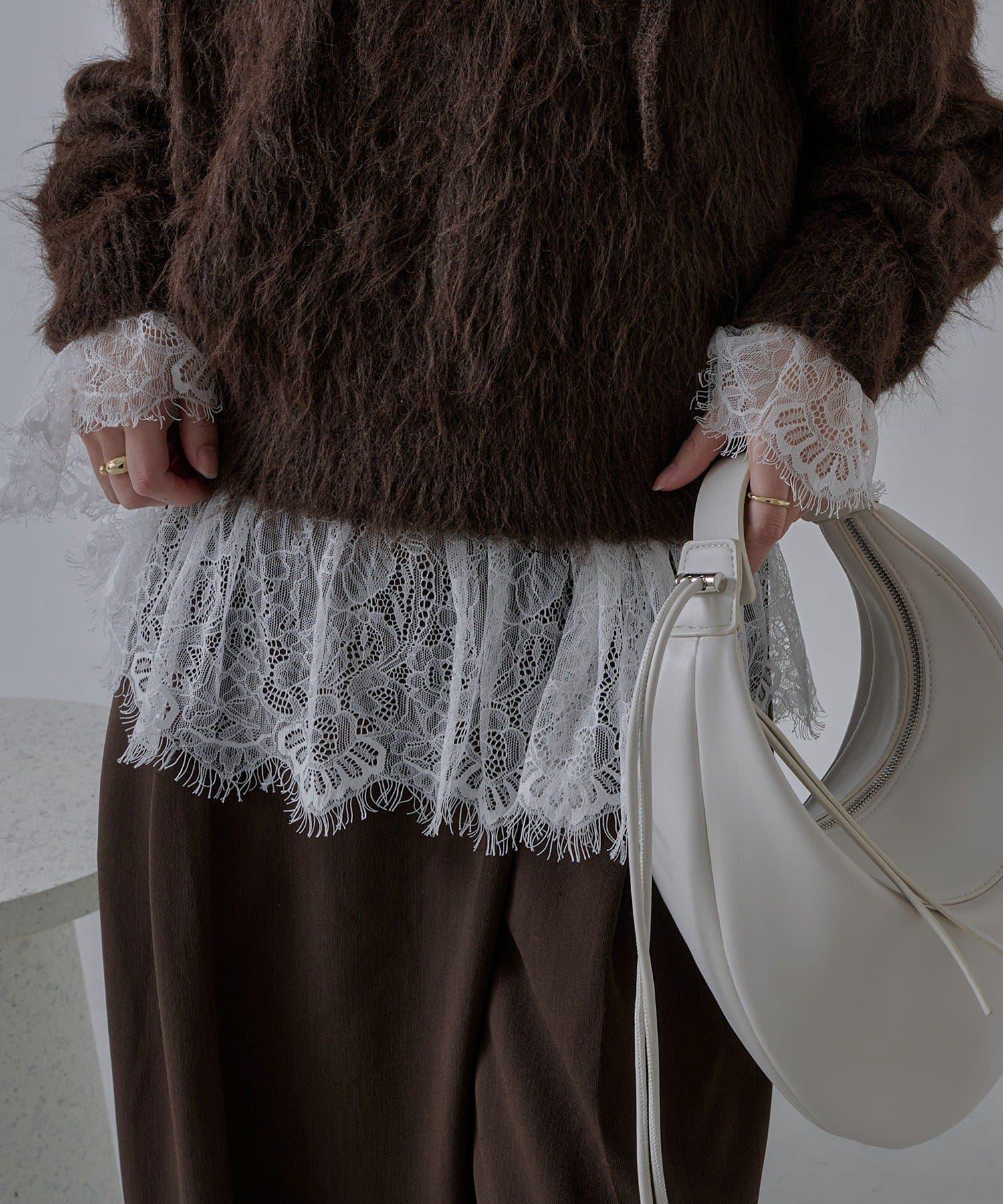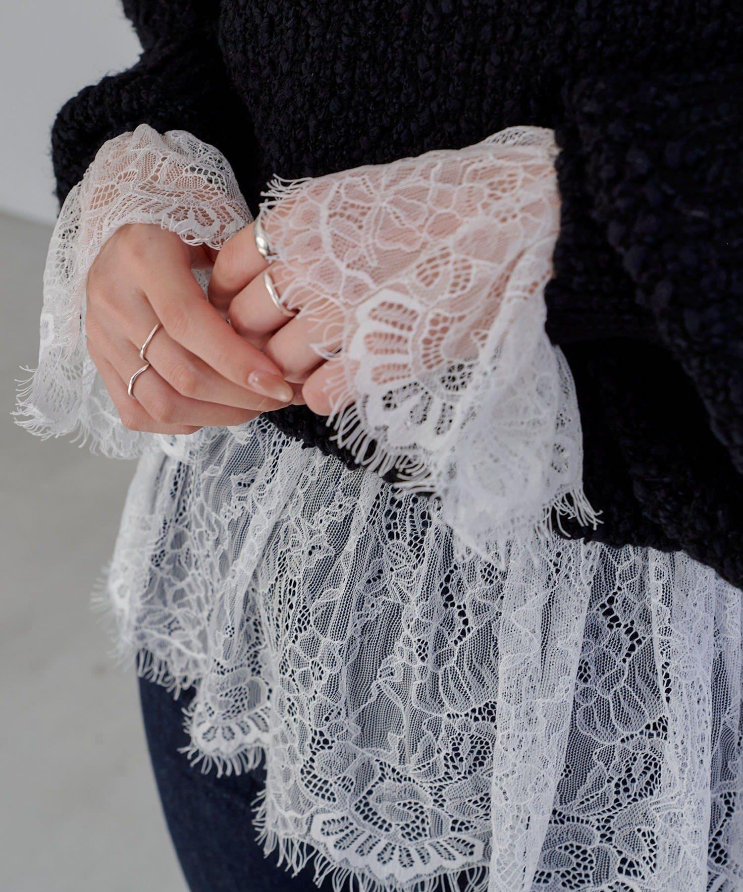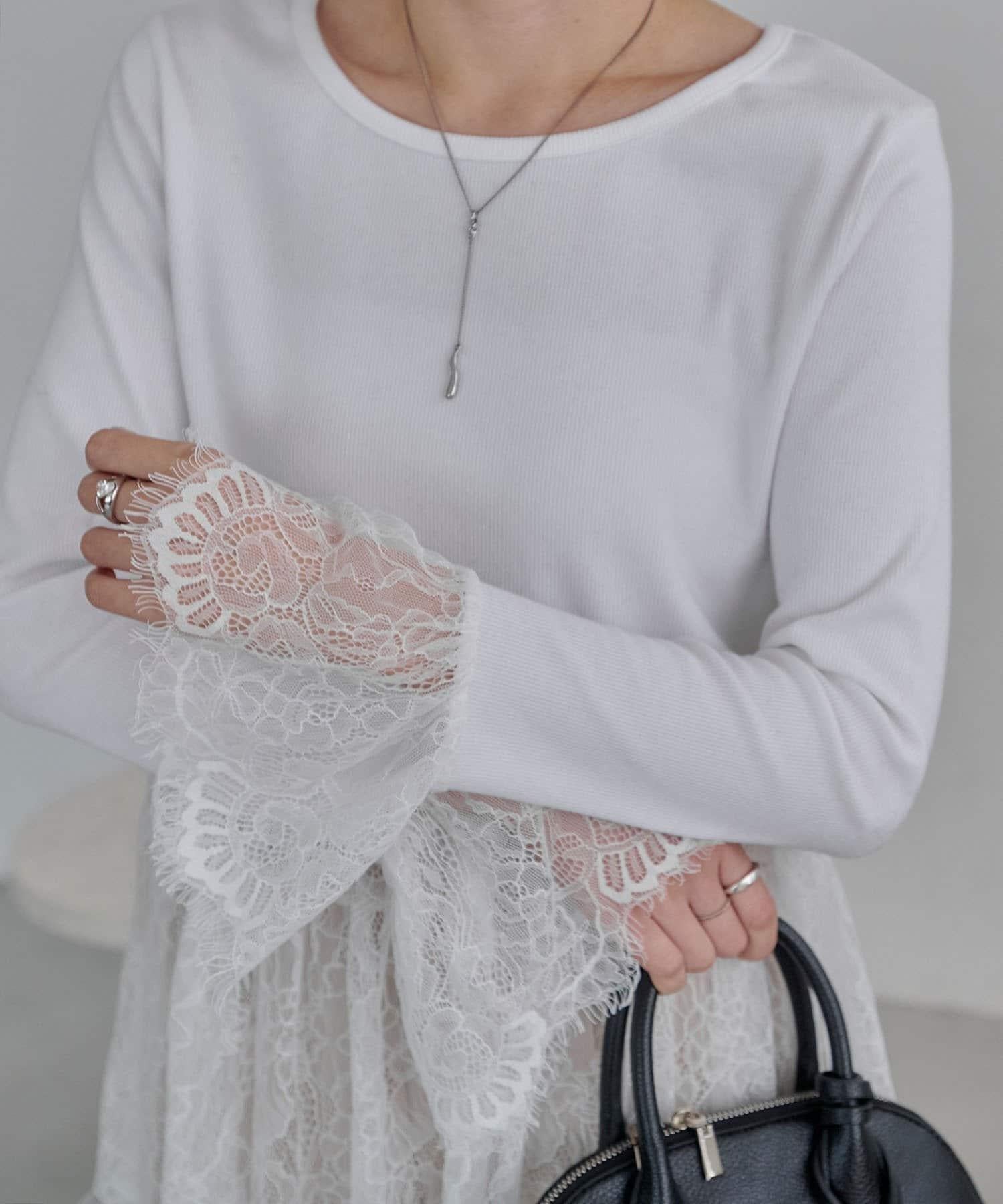 與針織衫或運動衫疊穿,露出下襬和袖口的蕾絲花邊。