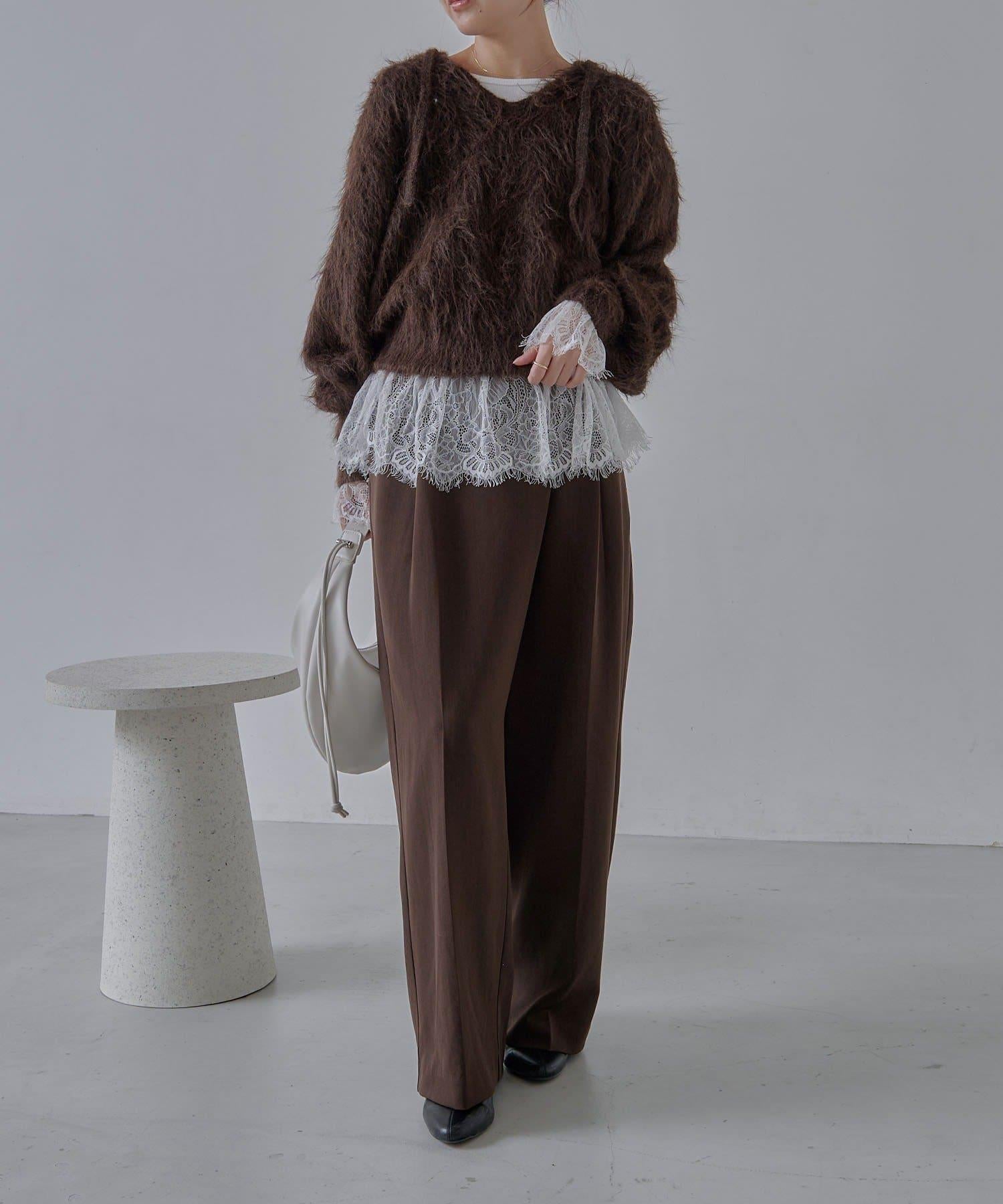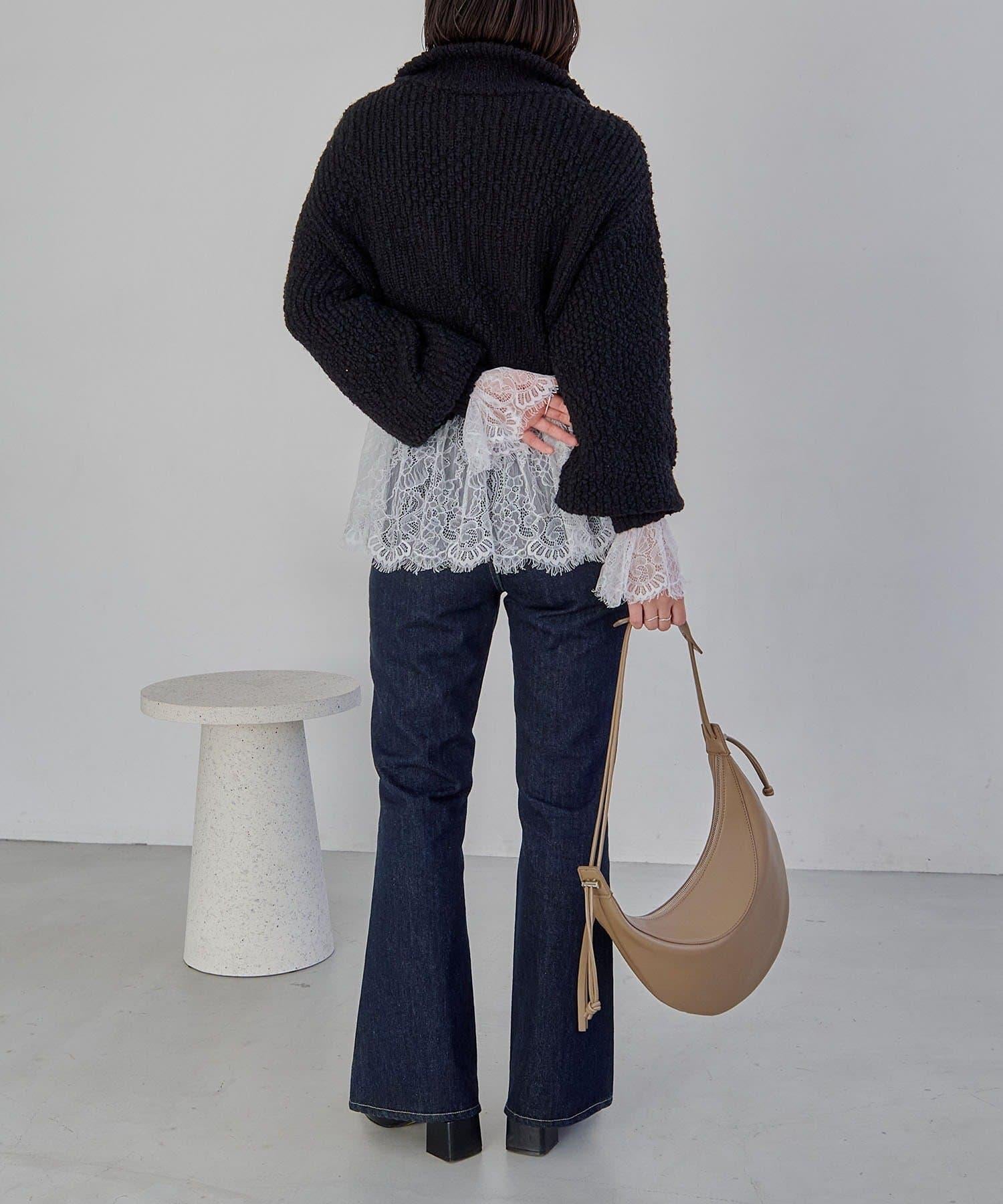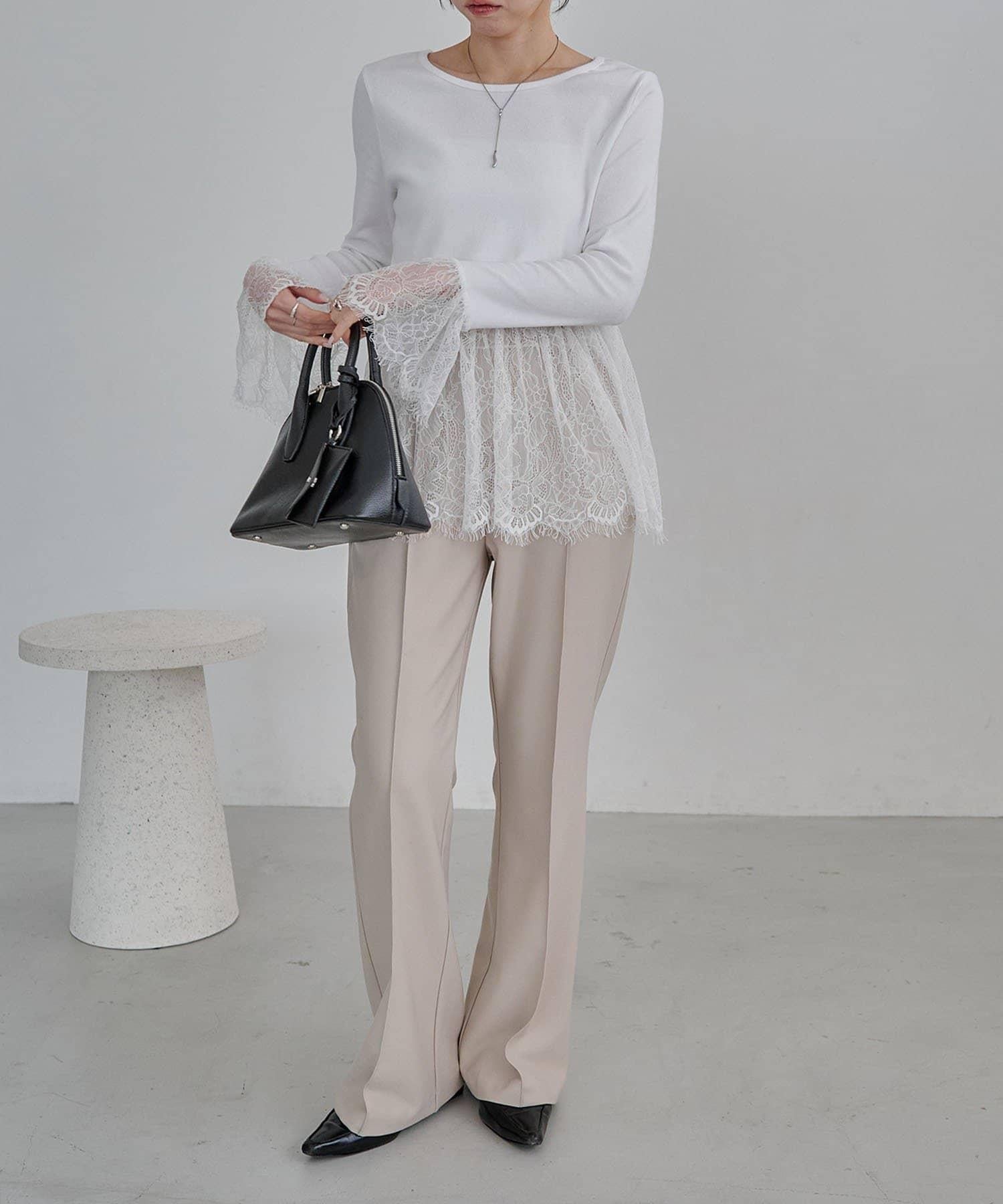 與針織衫或運動衫疊穿,露出下襬和袖口的蕾絲花邊。