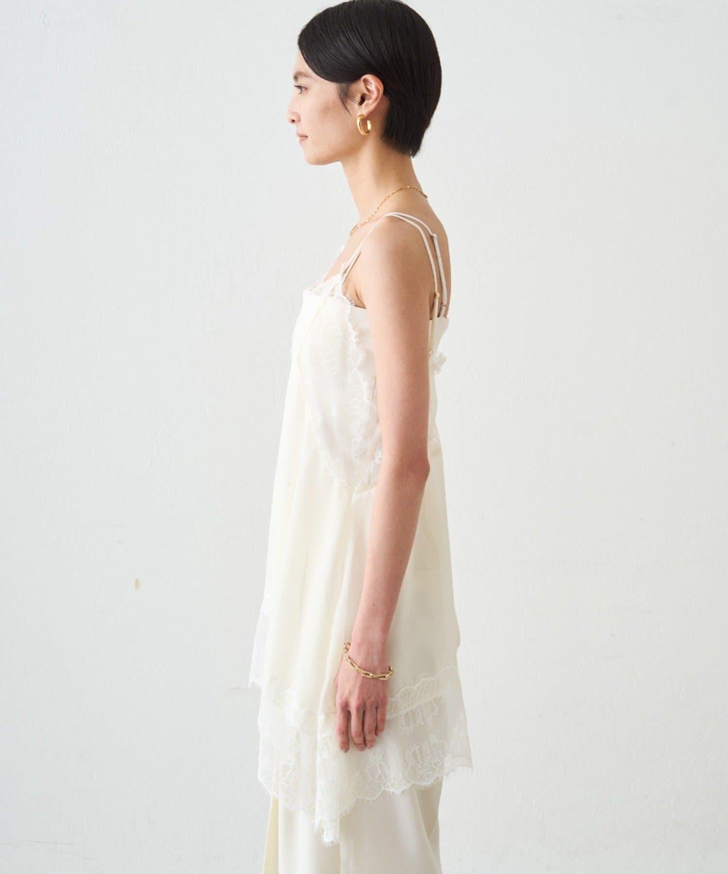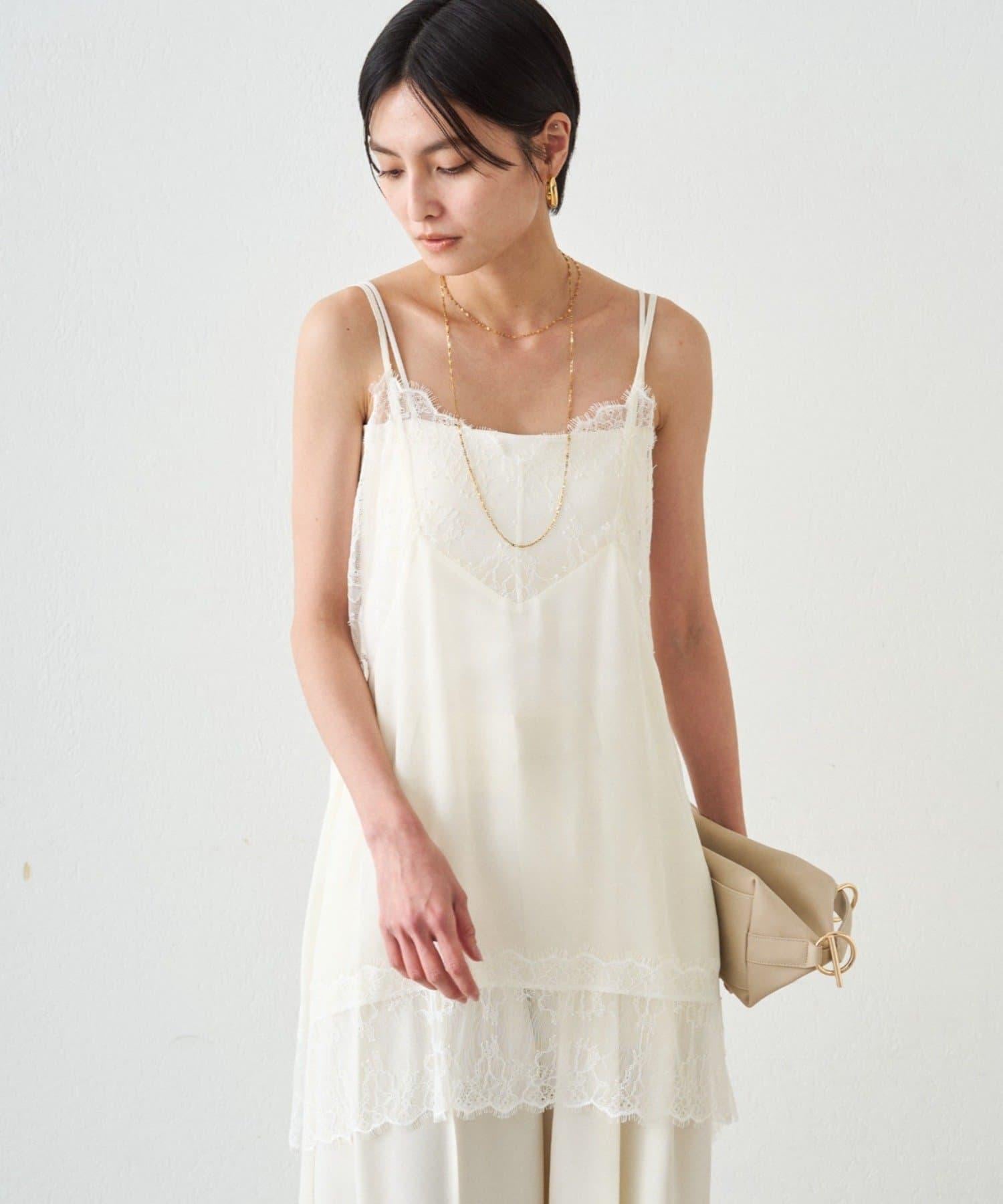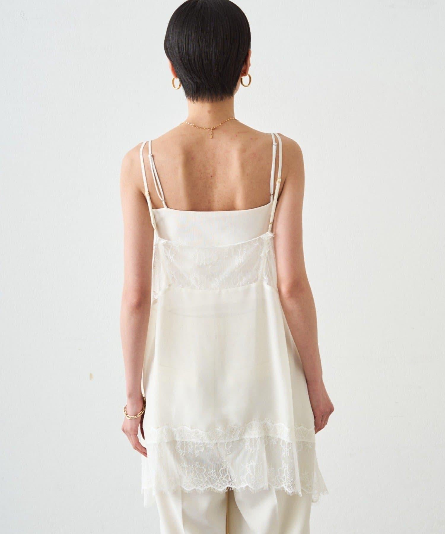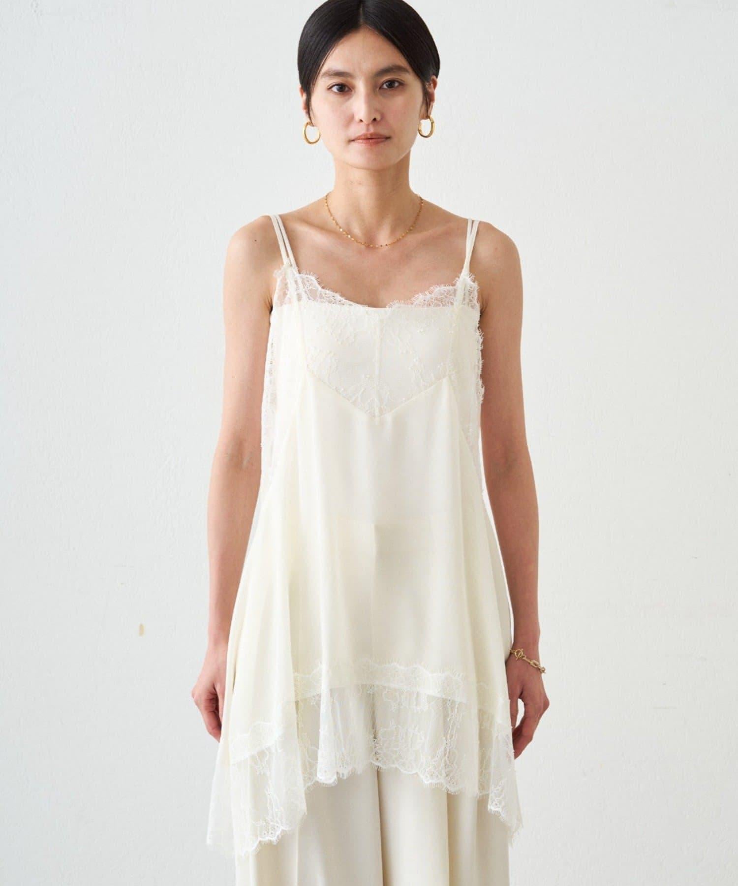 這款吊帶衫採用輕盈的雪紡面料,並飾有精緻的蕾絲花邊。
