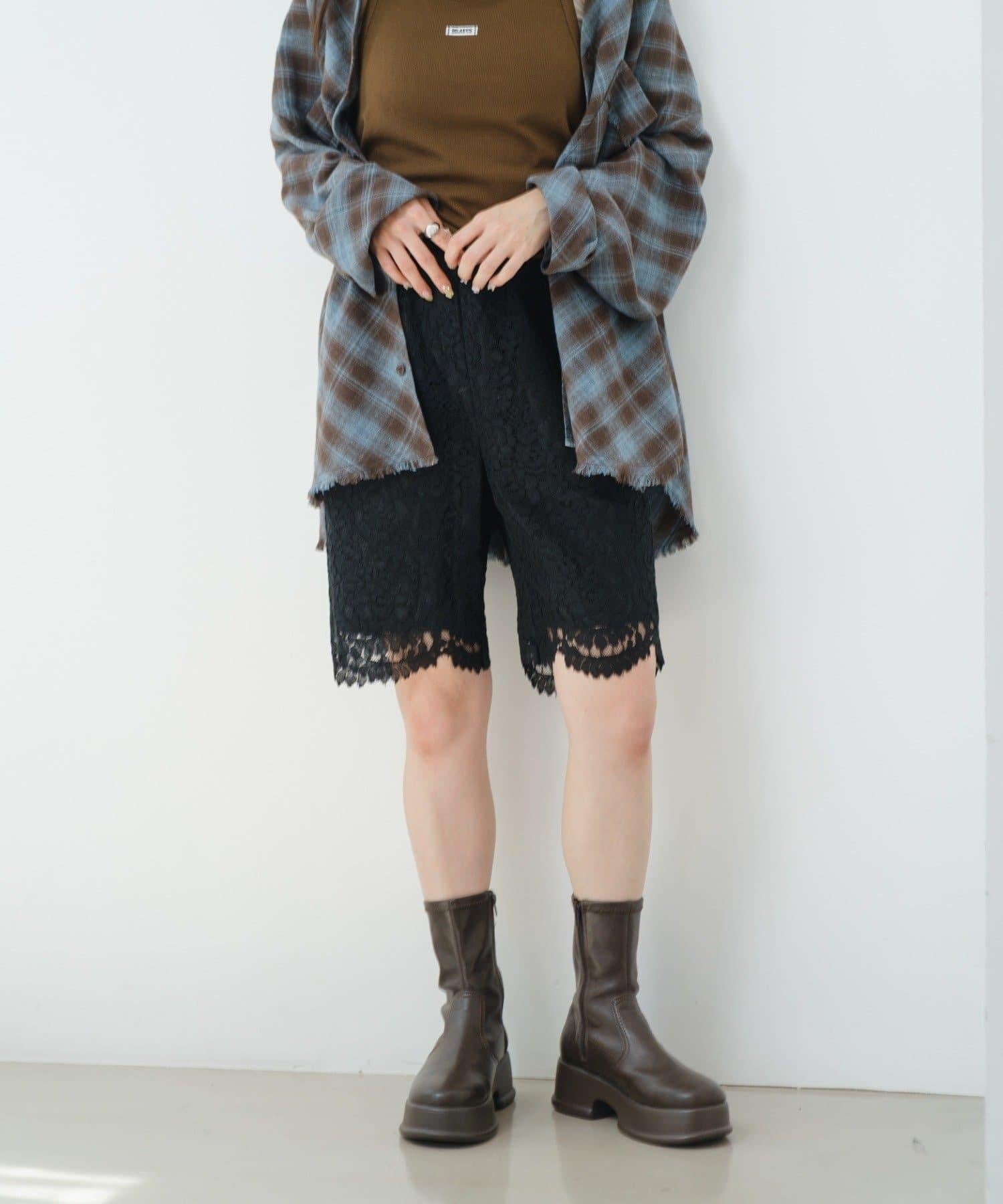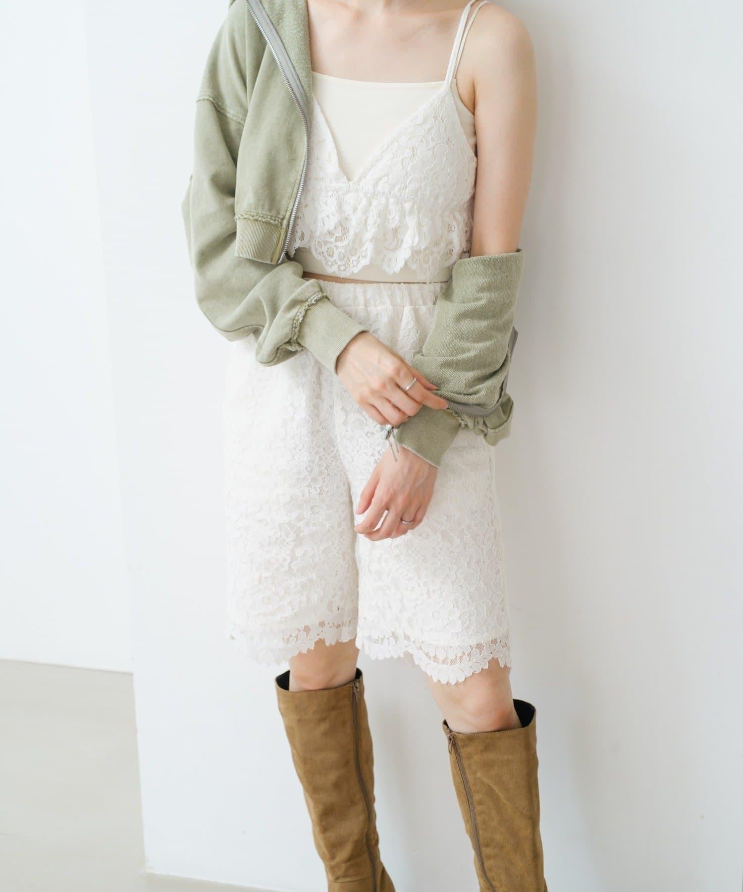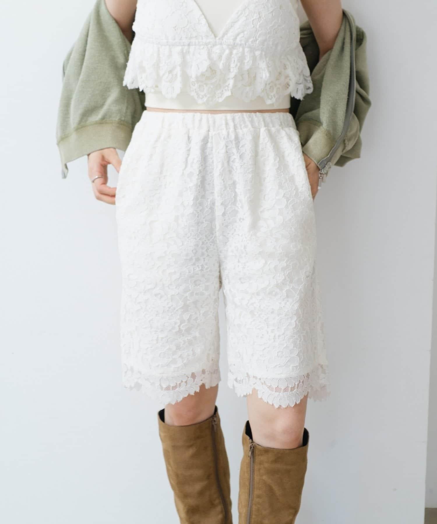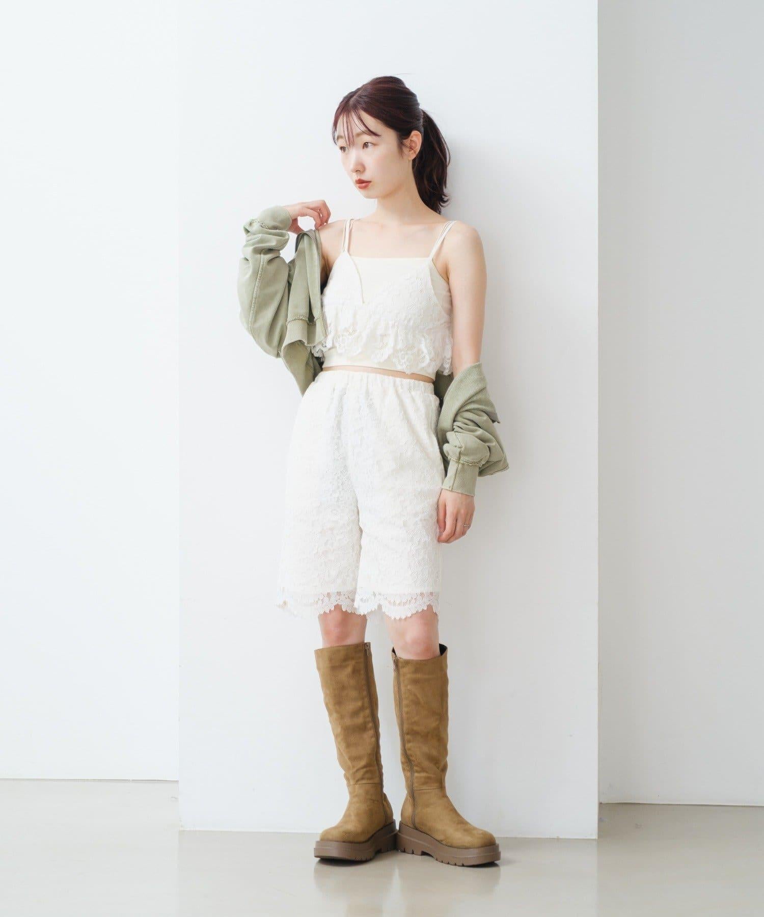 搭配同材質的蕾絲上衣或吊帶衫,打造套裝造型。