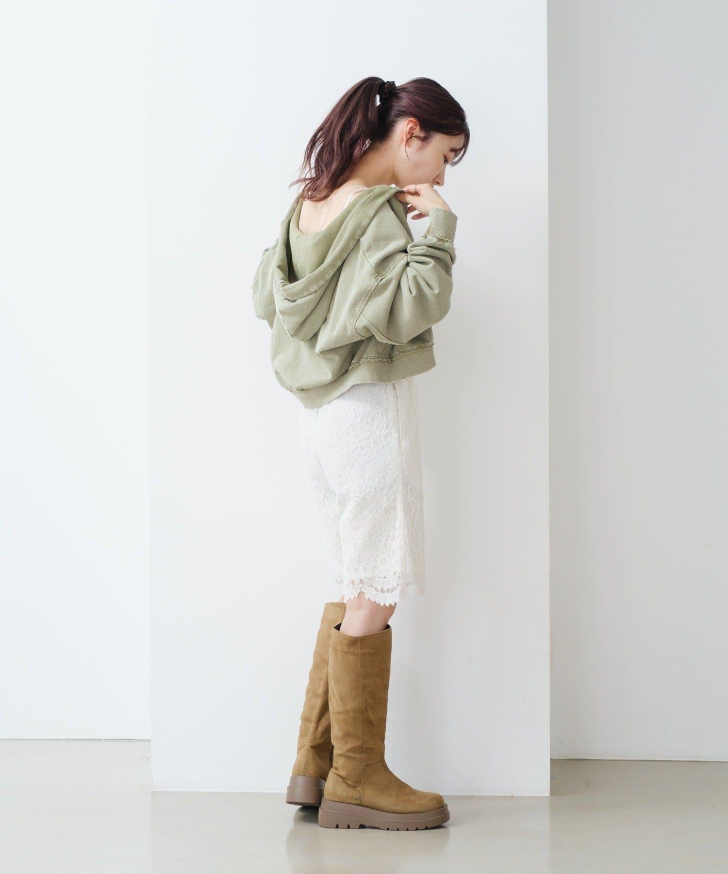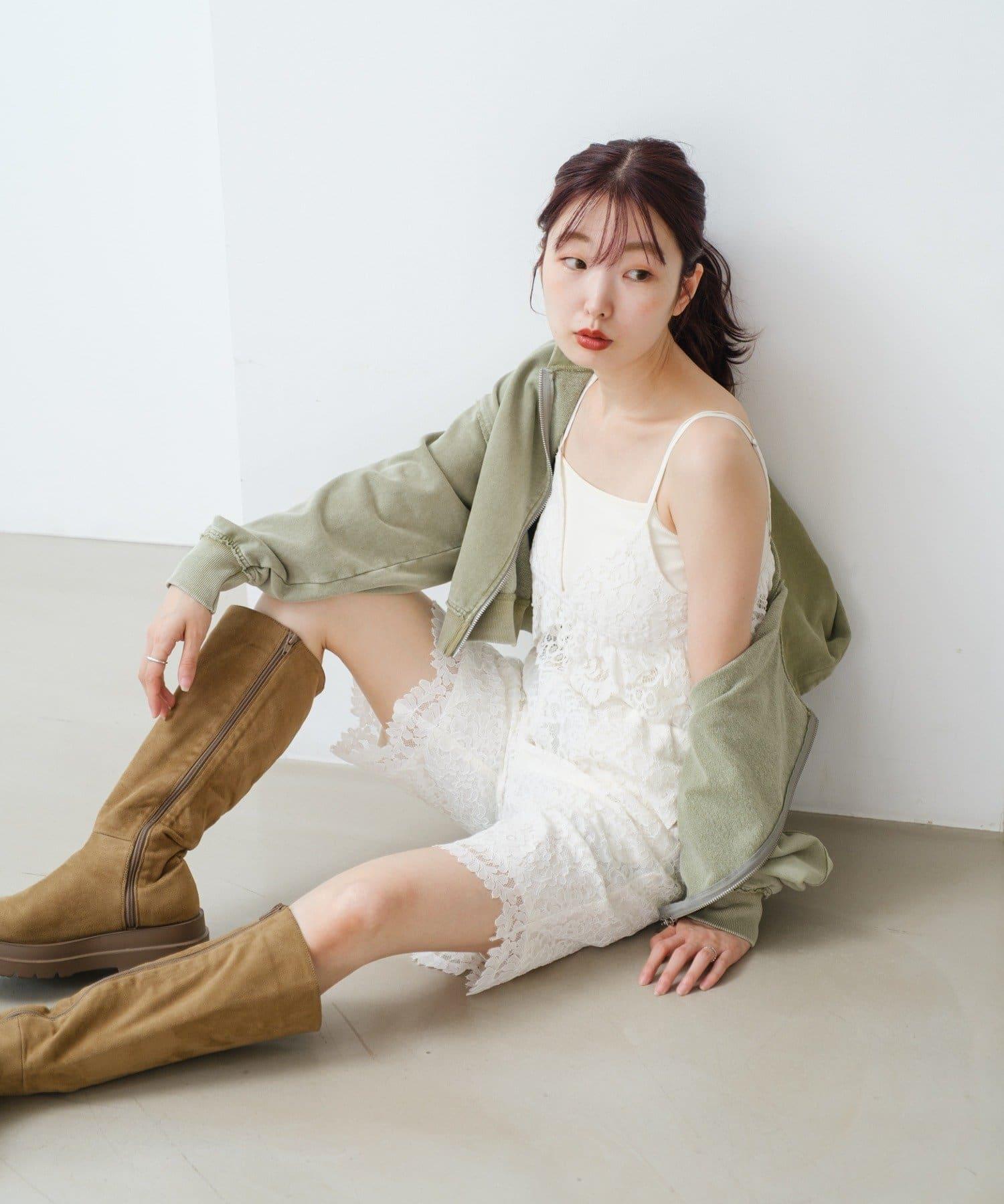 腳穿長靴,收緊甜美感,打造均衡風格。
