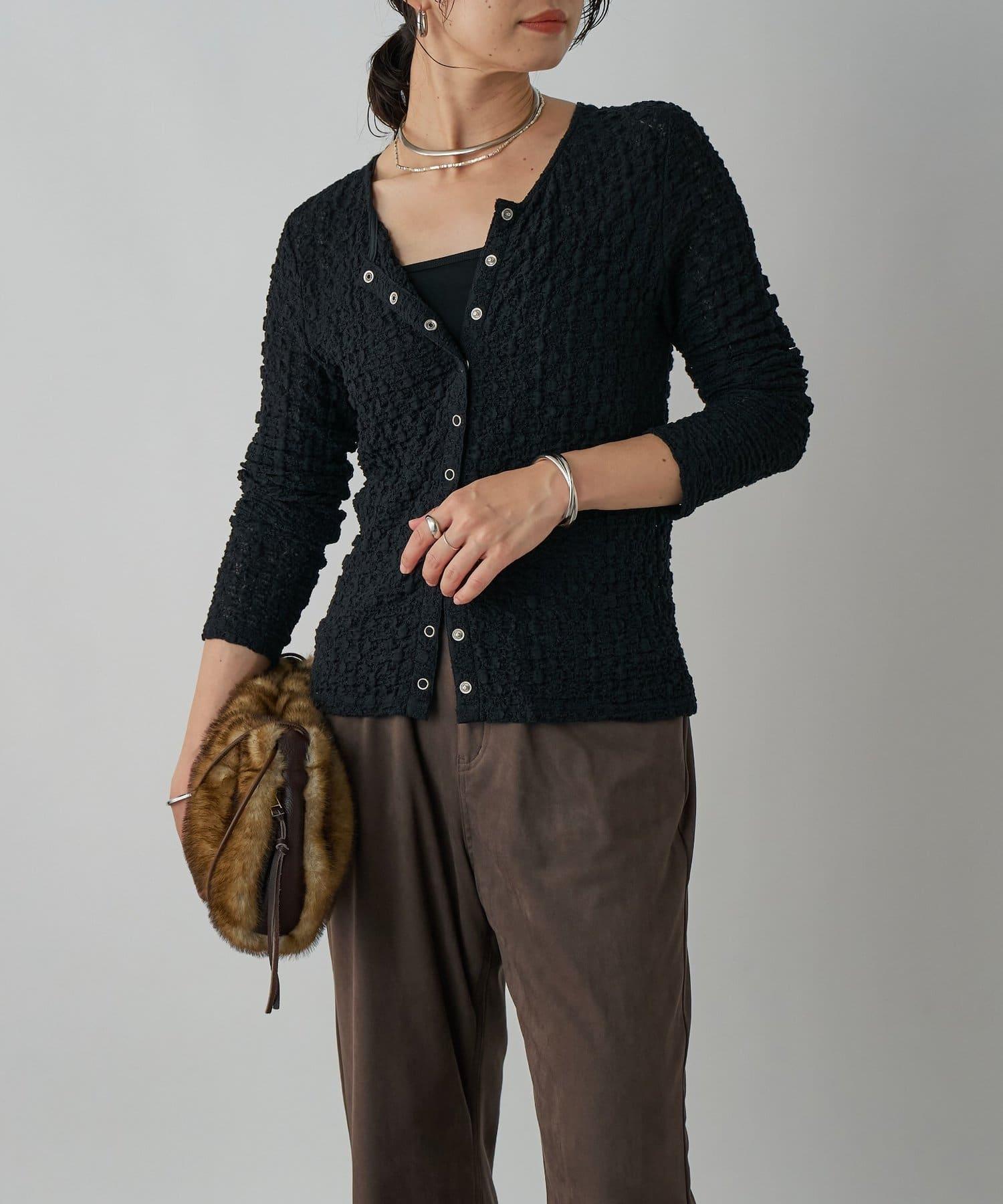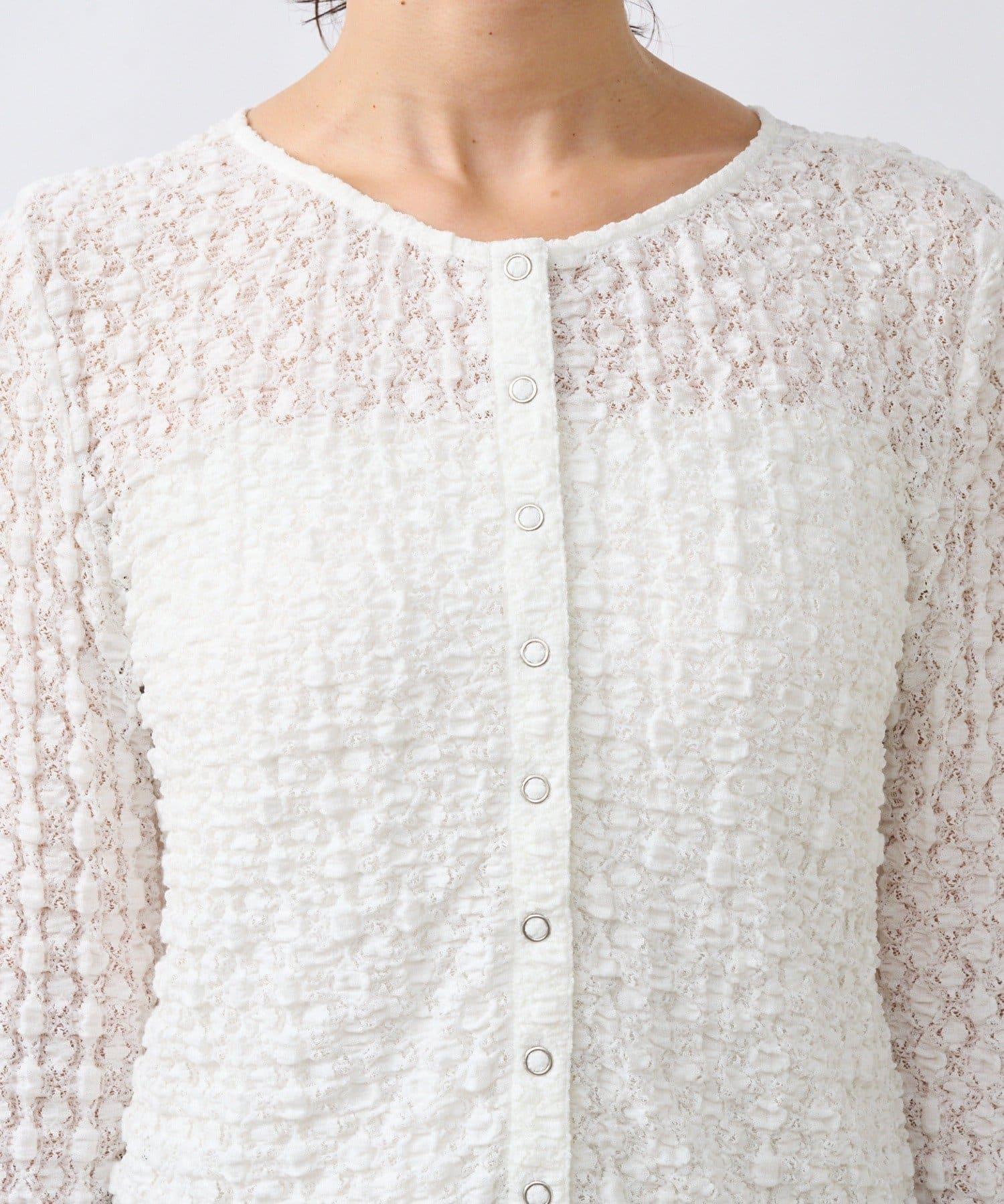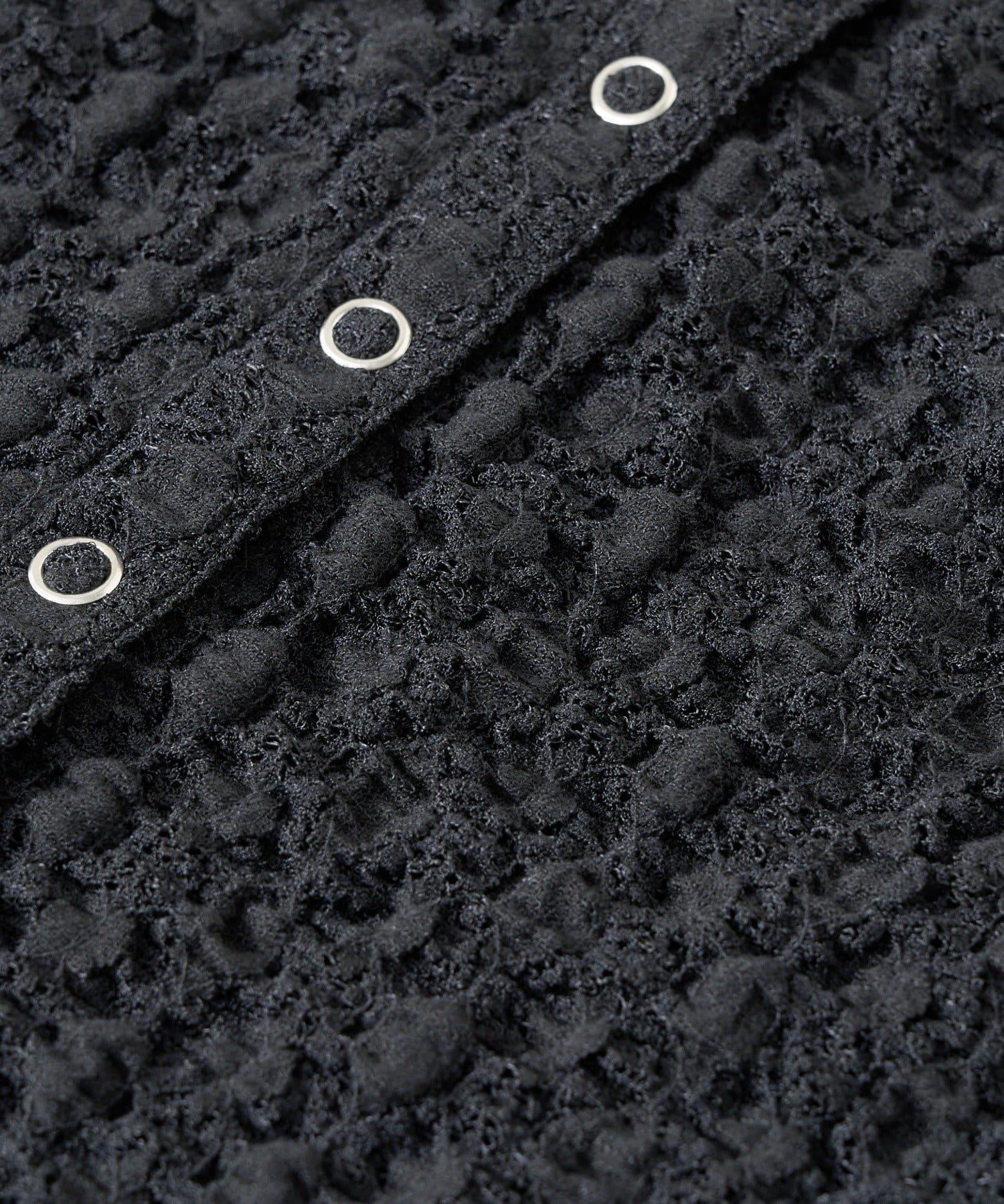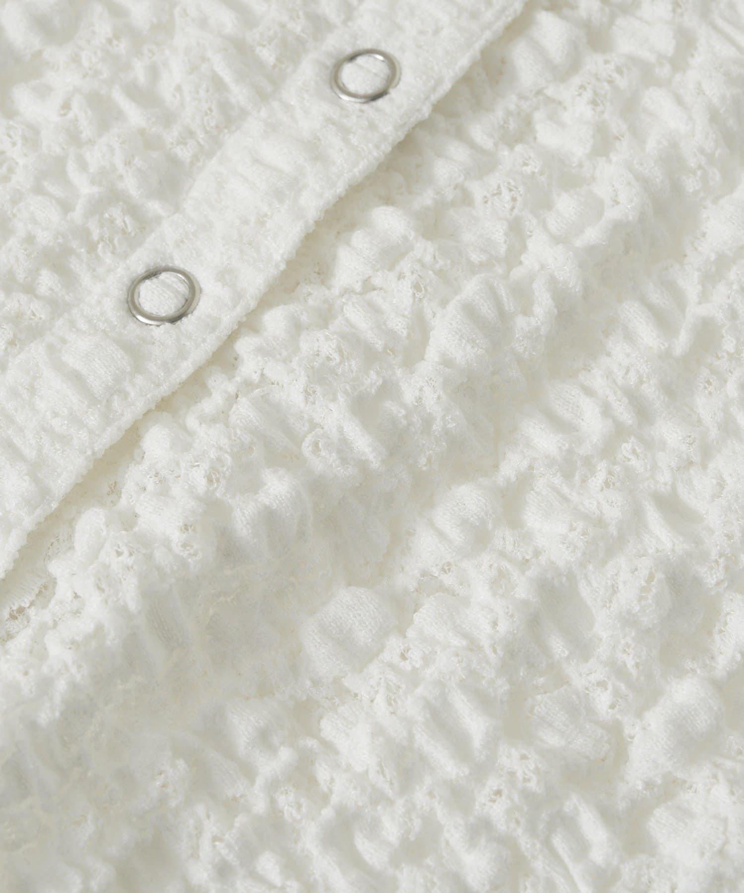 環形圓點紐扣是一大亮點。全開襟的設計讓衣領和下襬處輕鬆營造出寬鬆感。