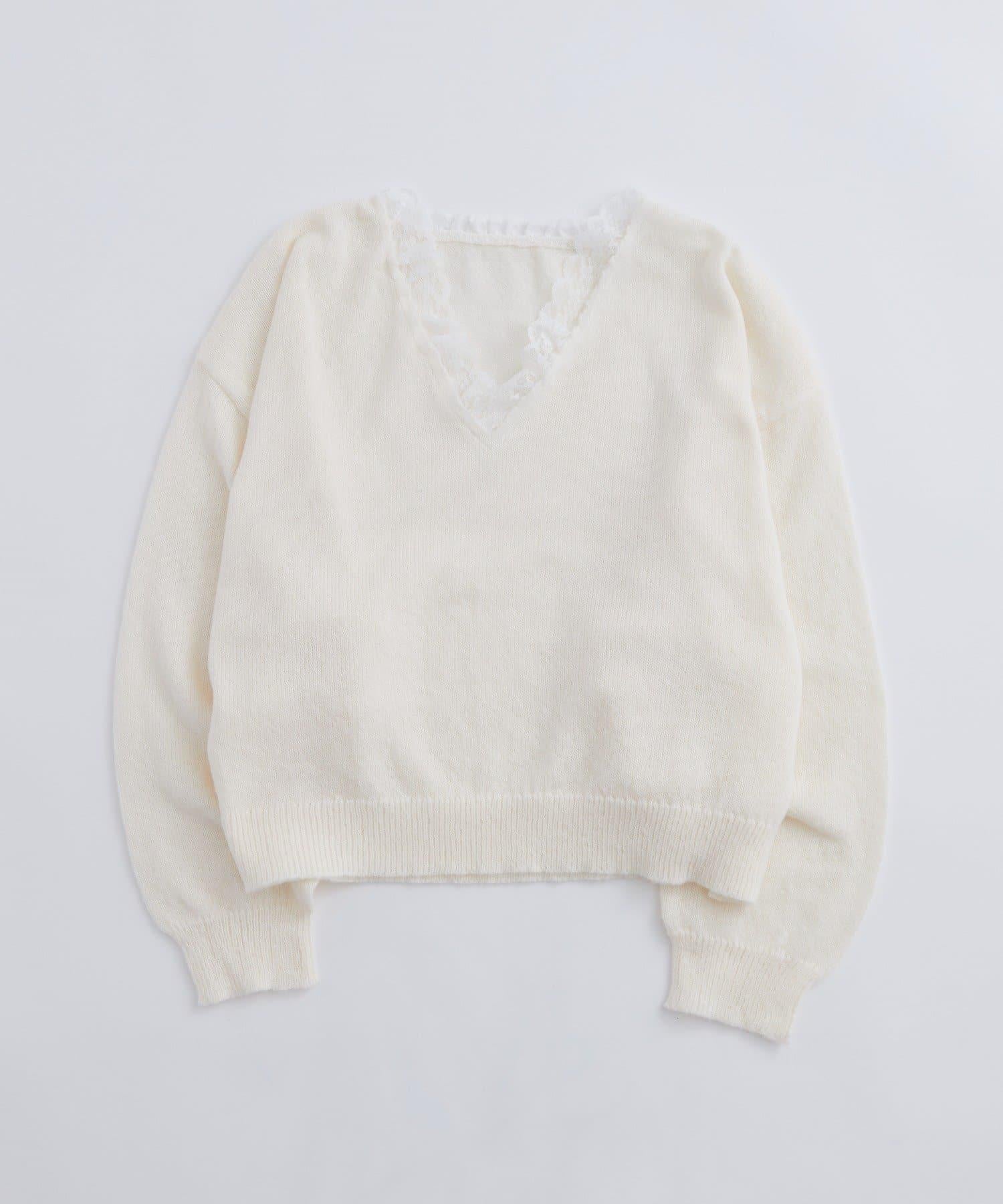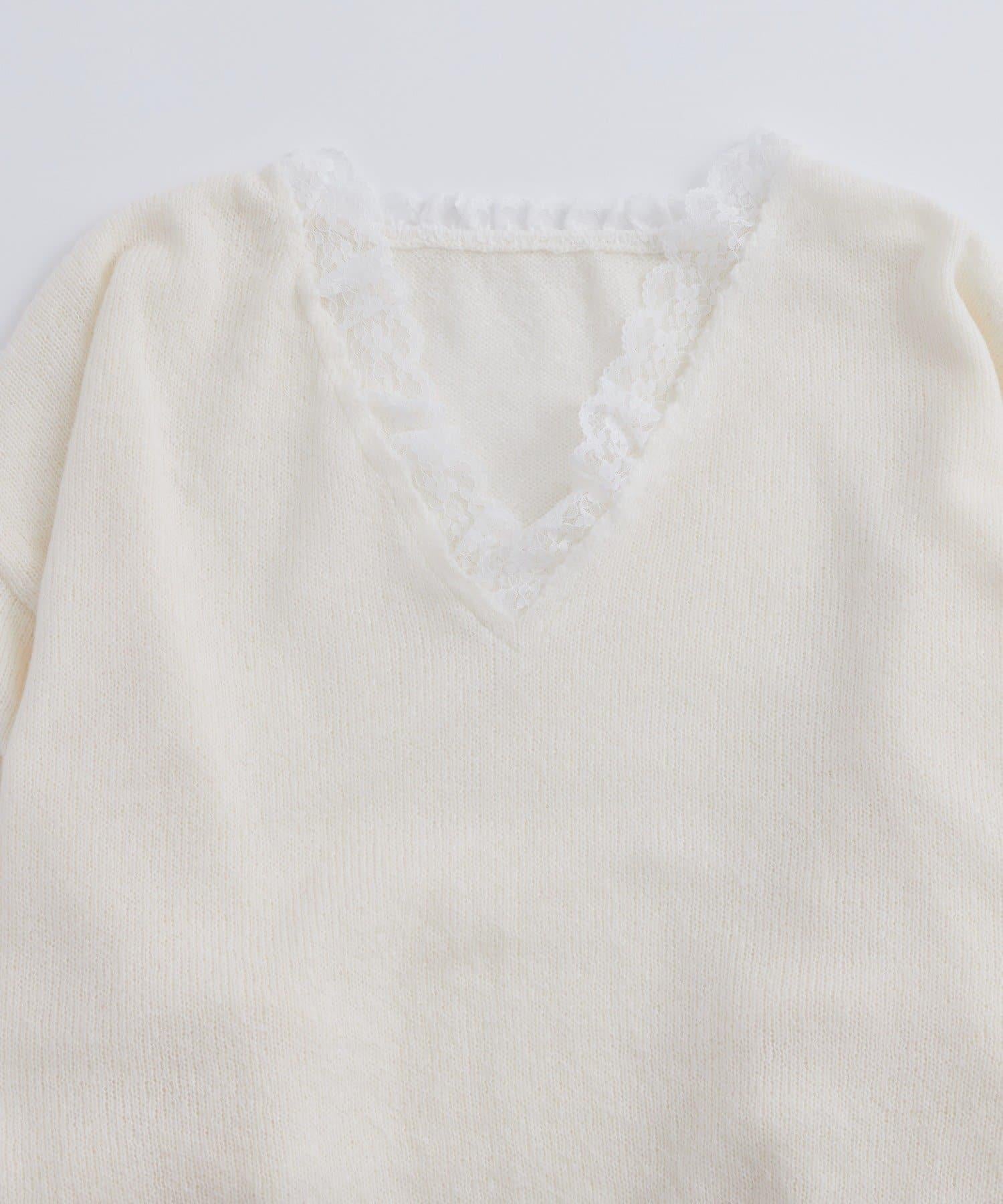 蕾絲V領針織衫