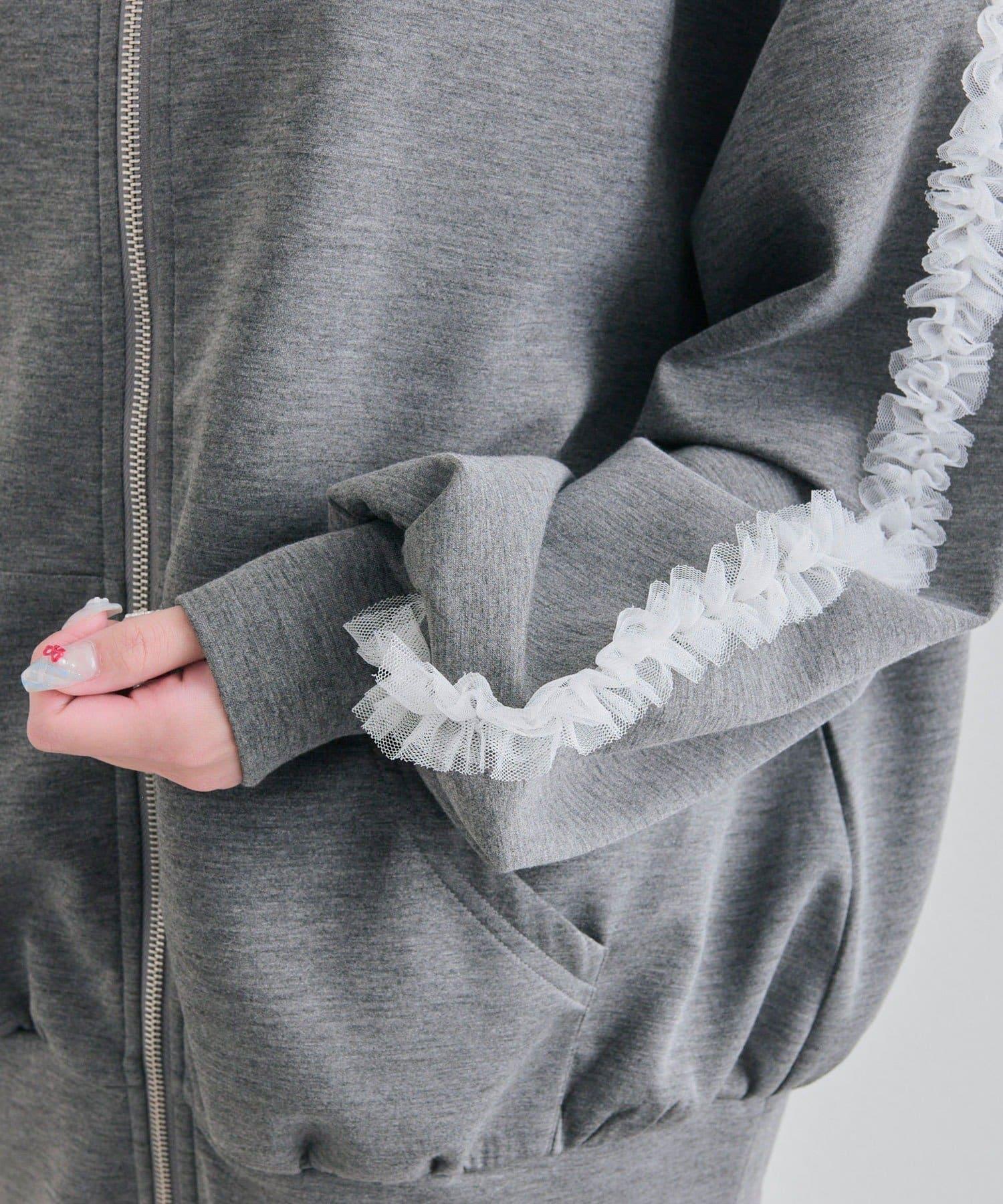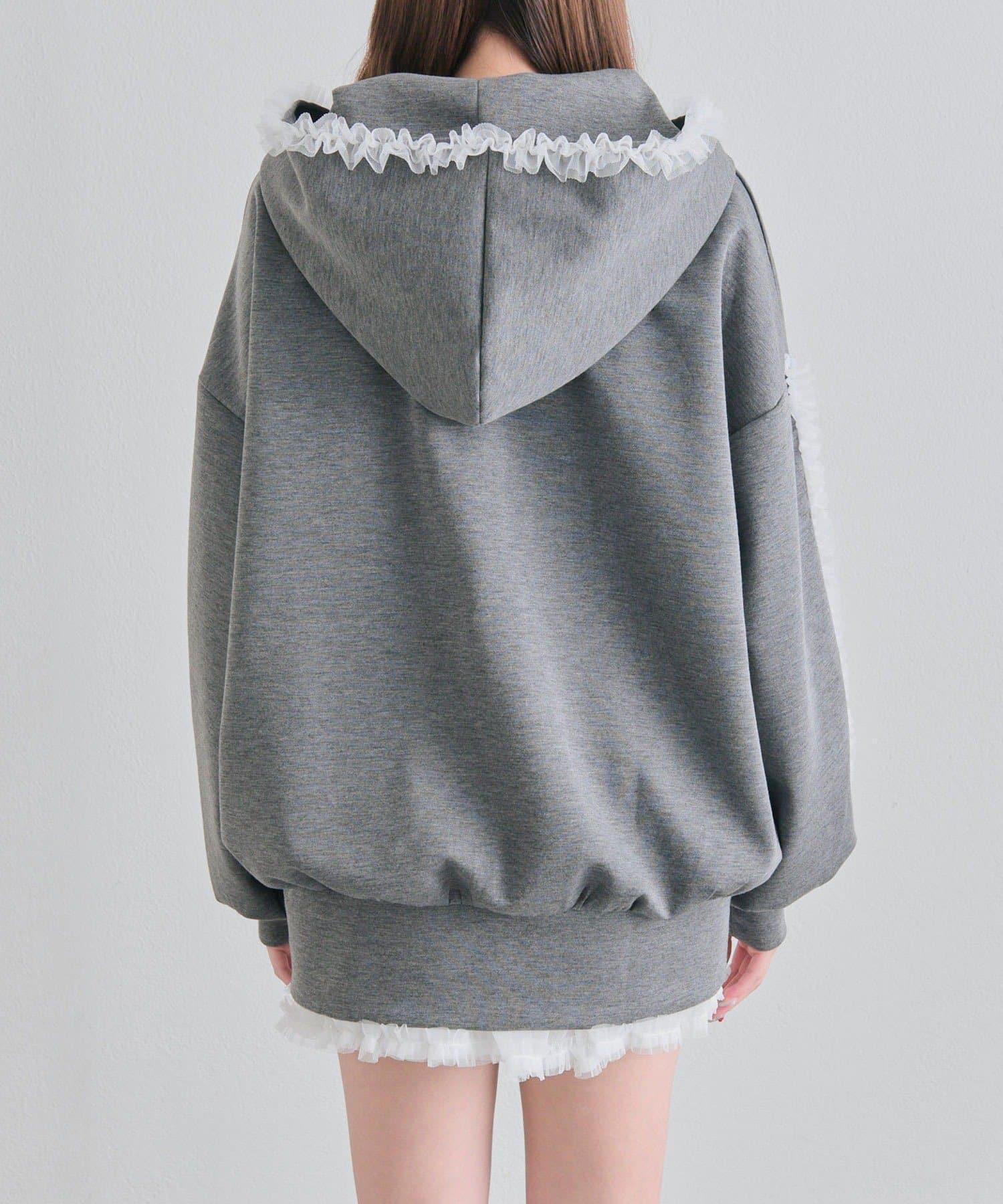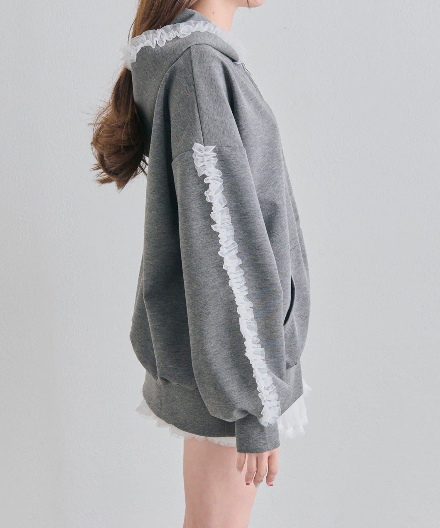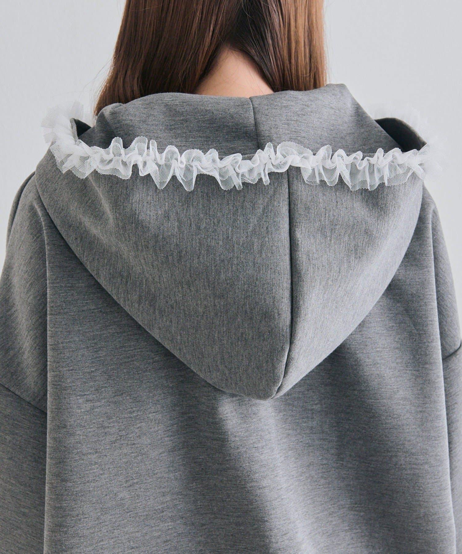 薄紗荷葉邊連帽衛衣