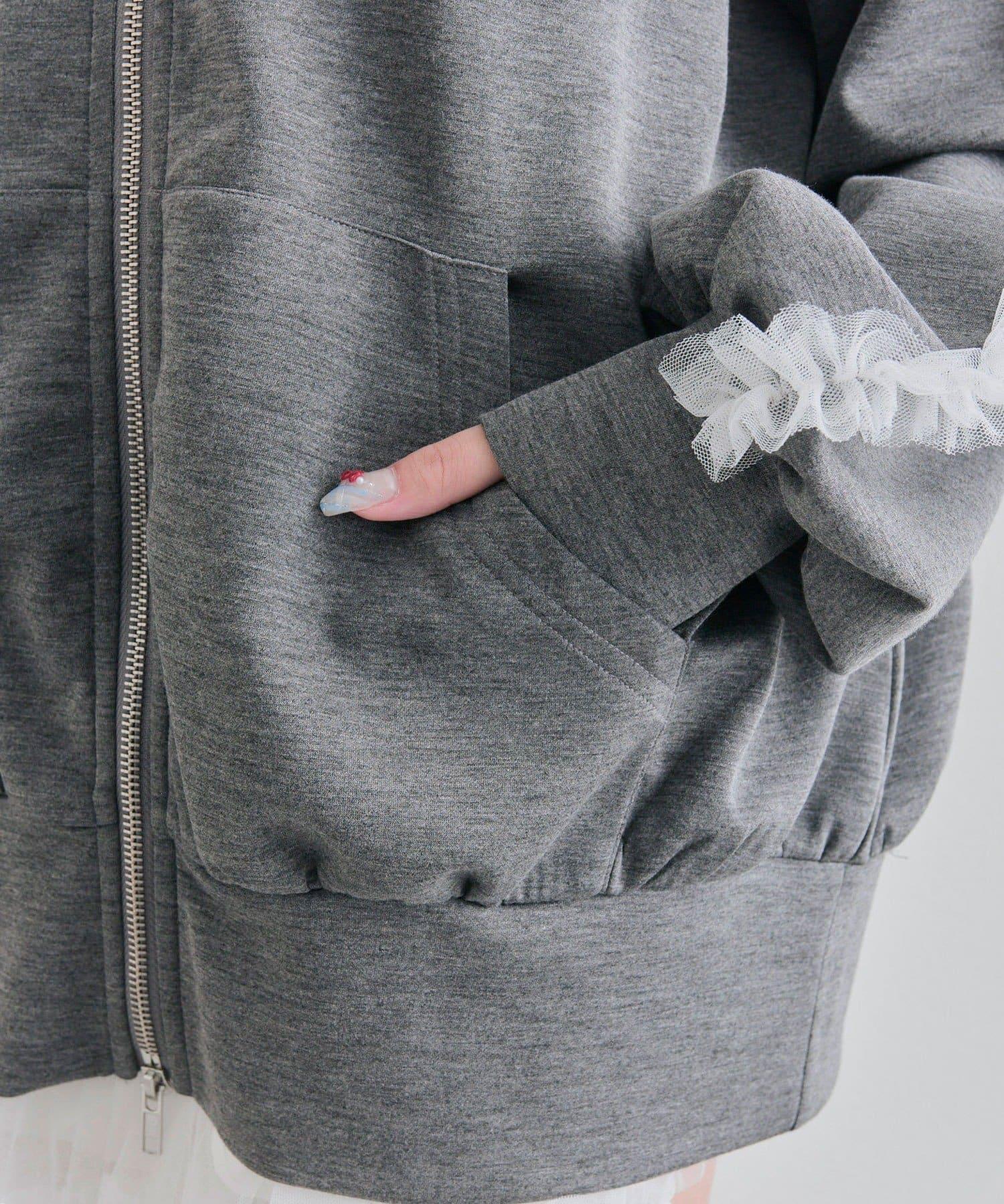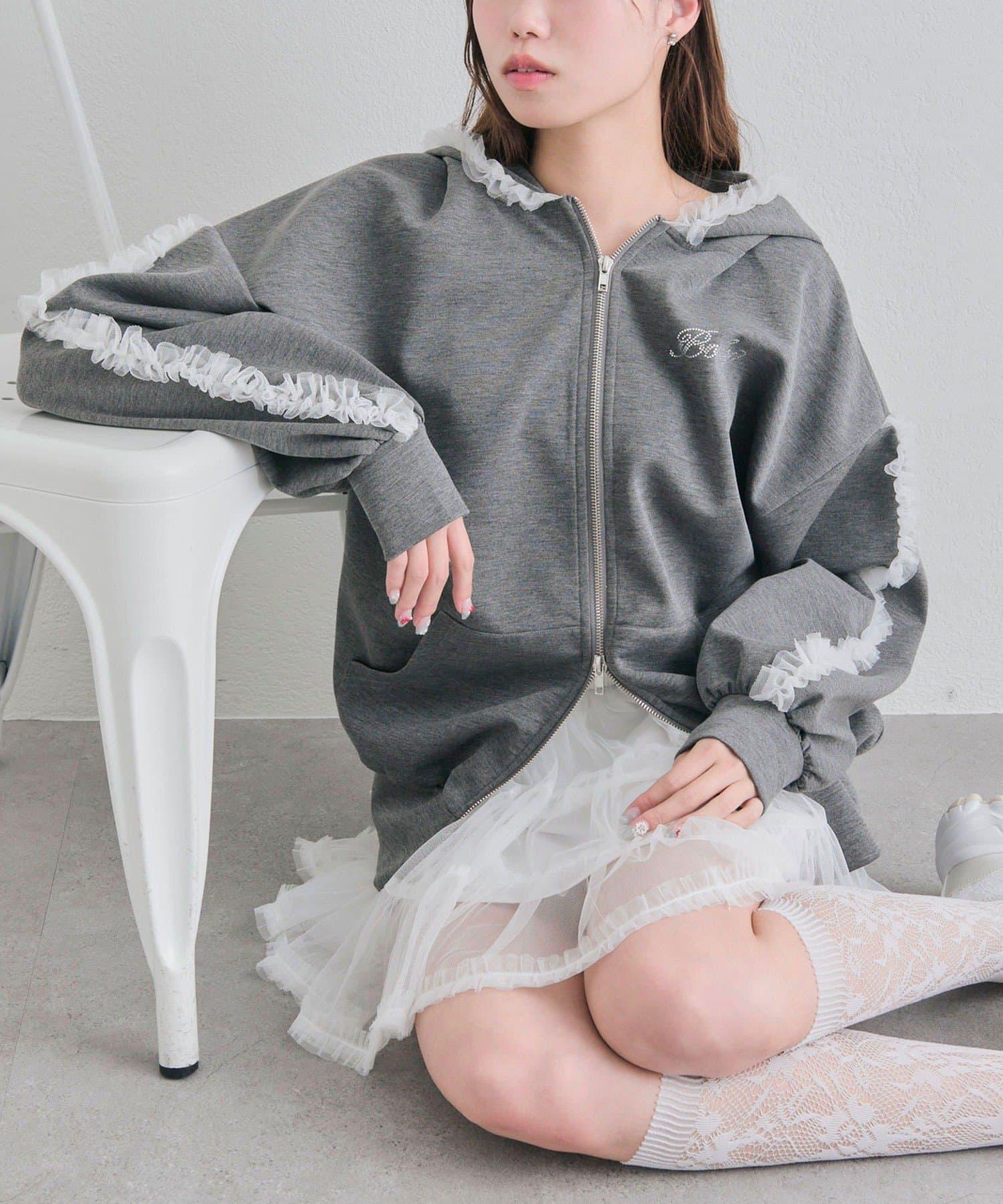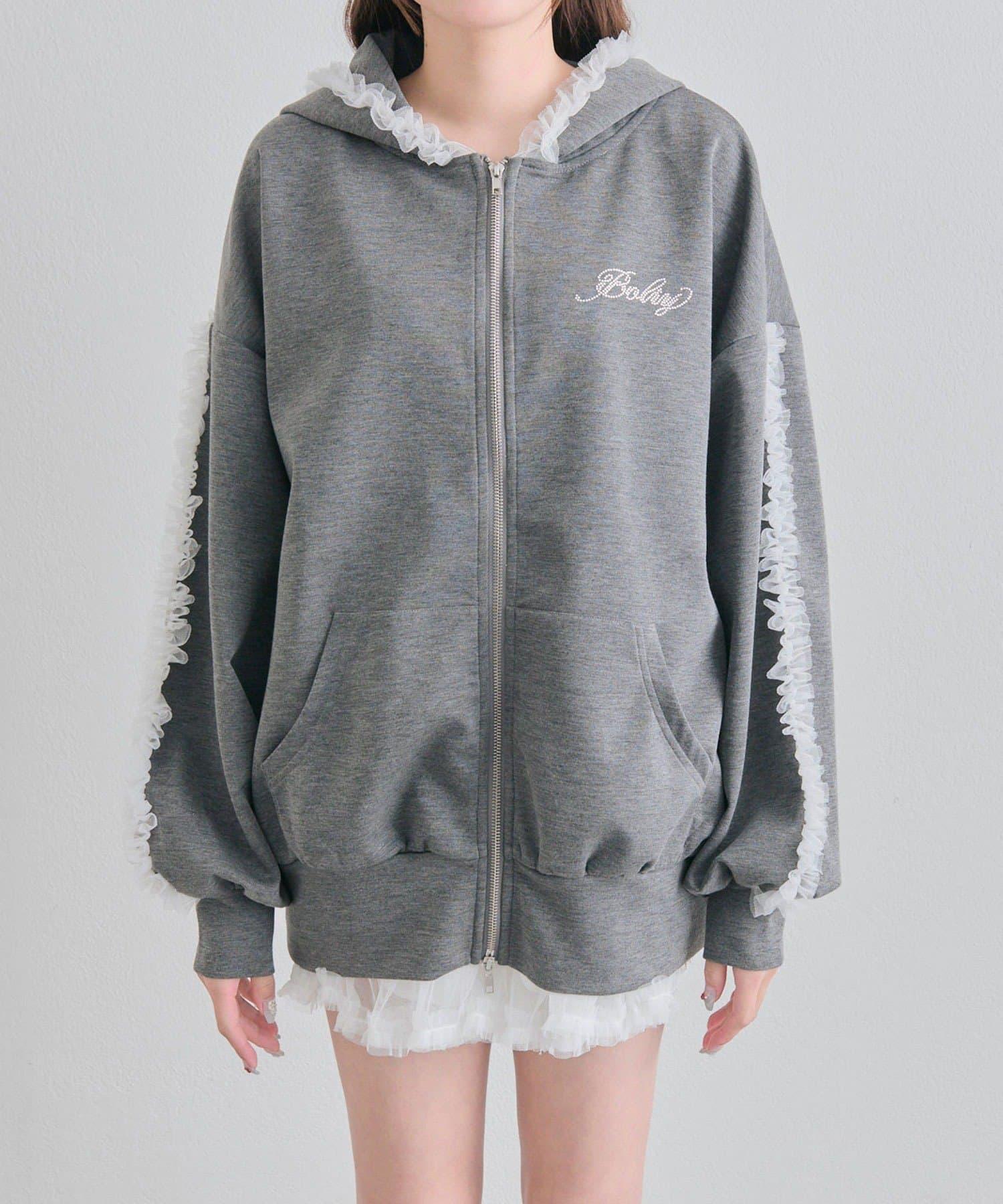 薄紗荷葉邊連帽衛衣