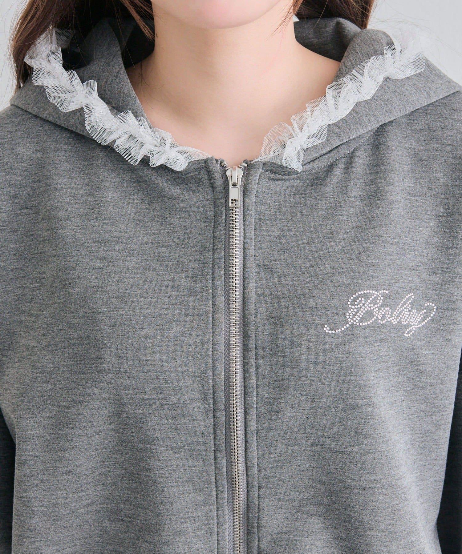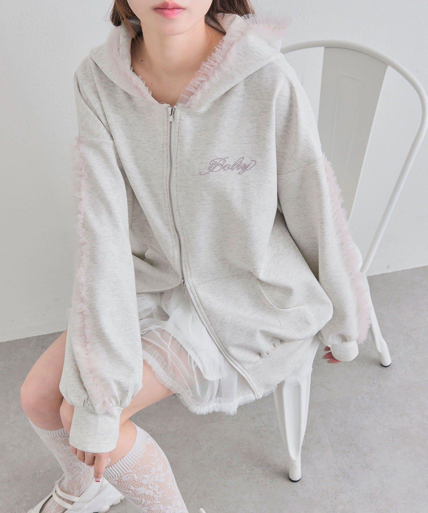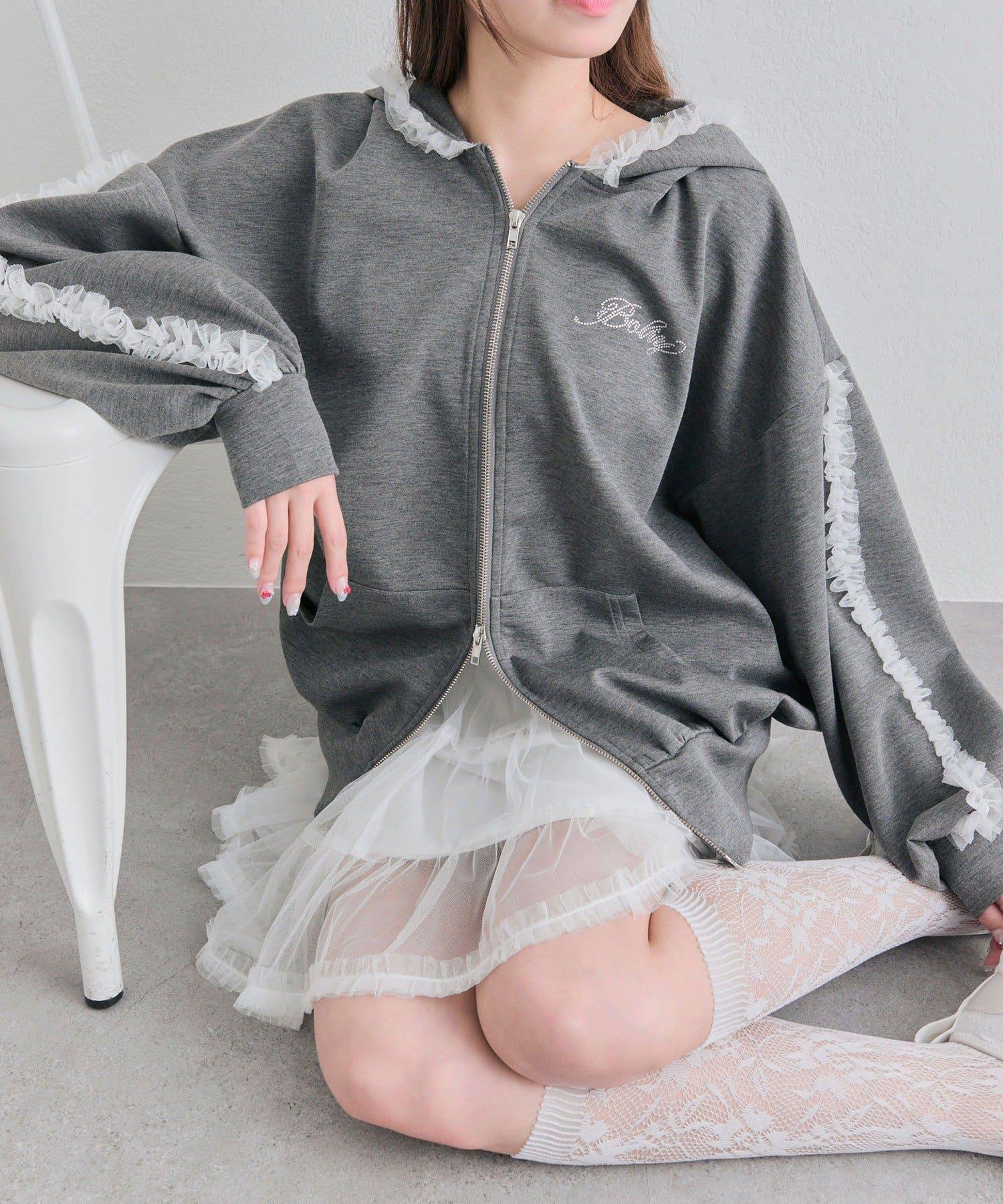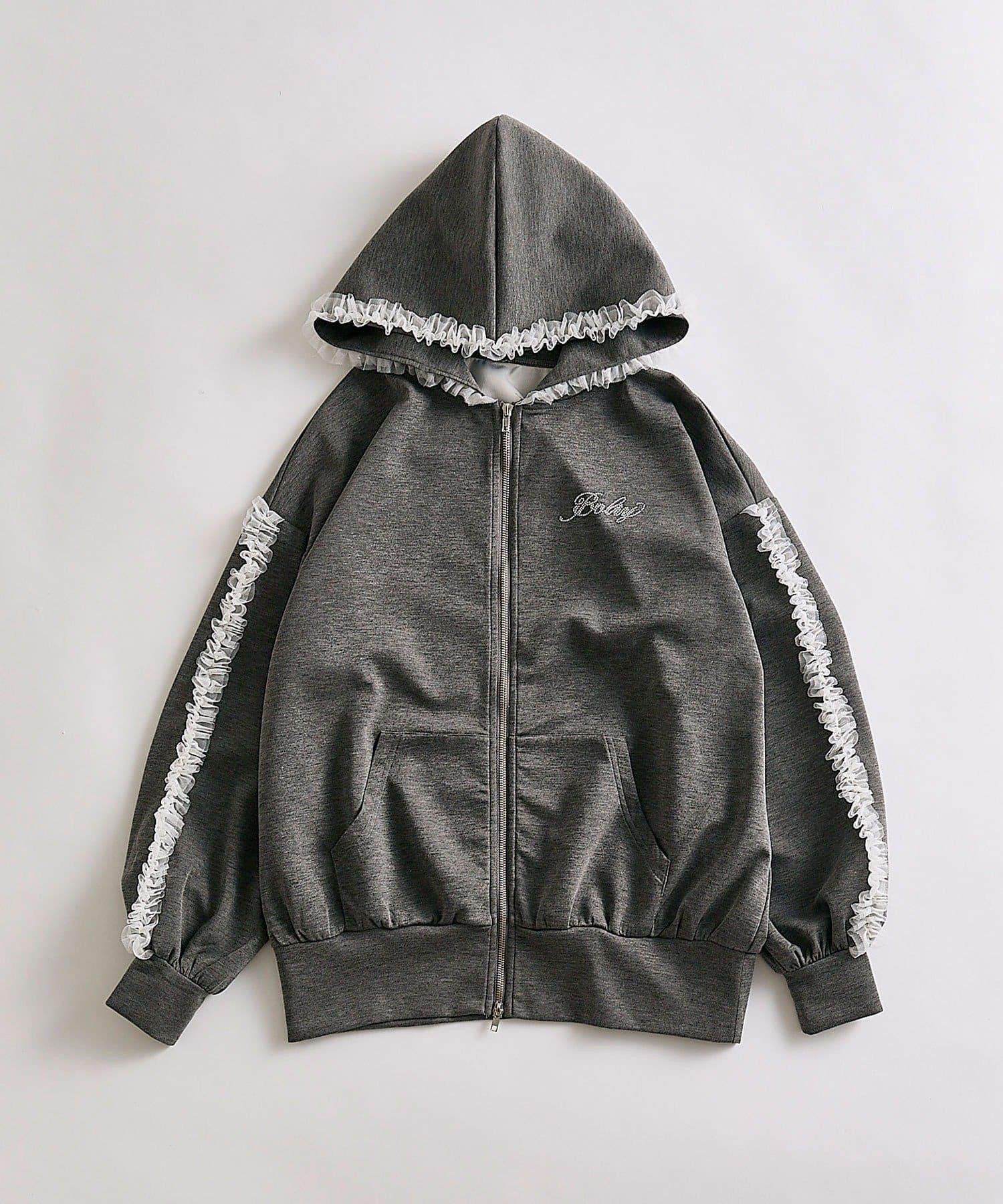 薄紗荷葉邊連帽衛衣