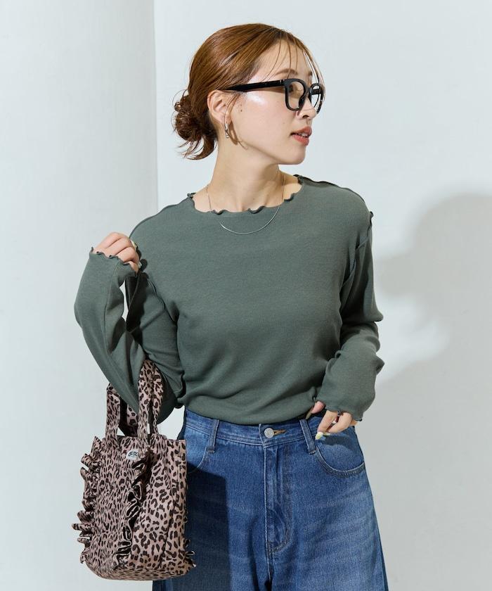 薑黃色荷葉邊長袖上衣