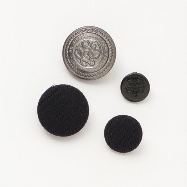 正面的紐扣可以在外層面料製成的胡桃木紐扣和金屬紐扣之間進行更換。