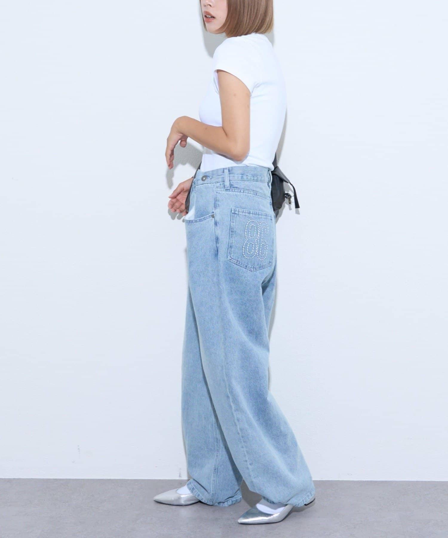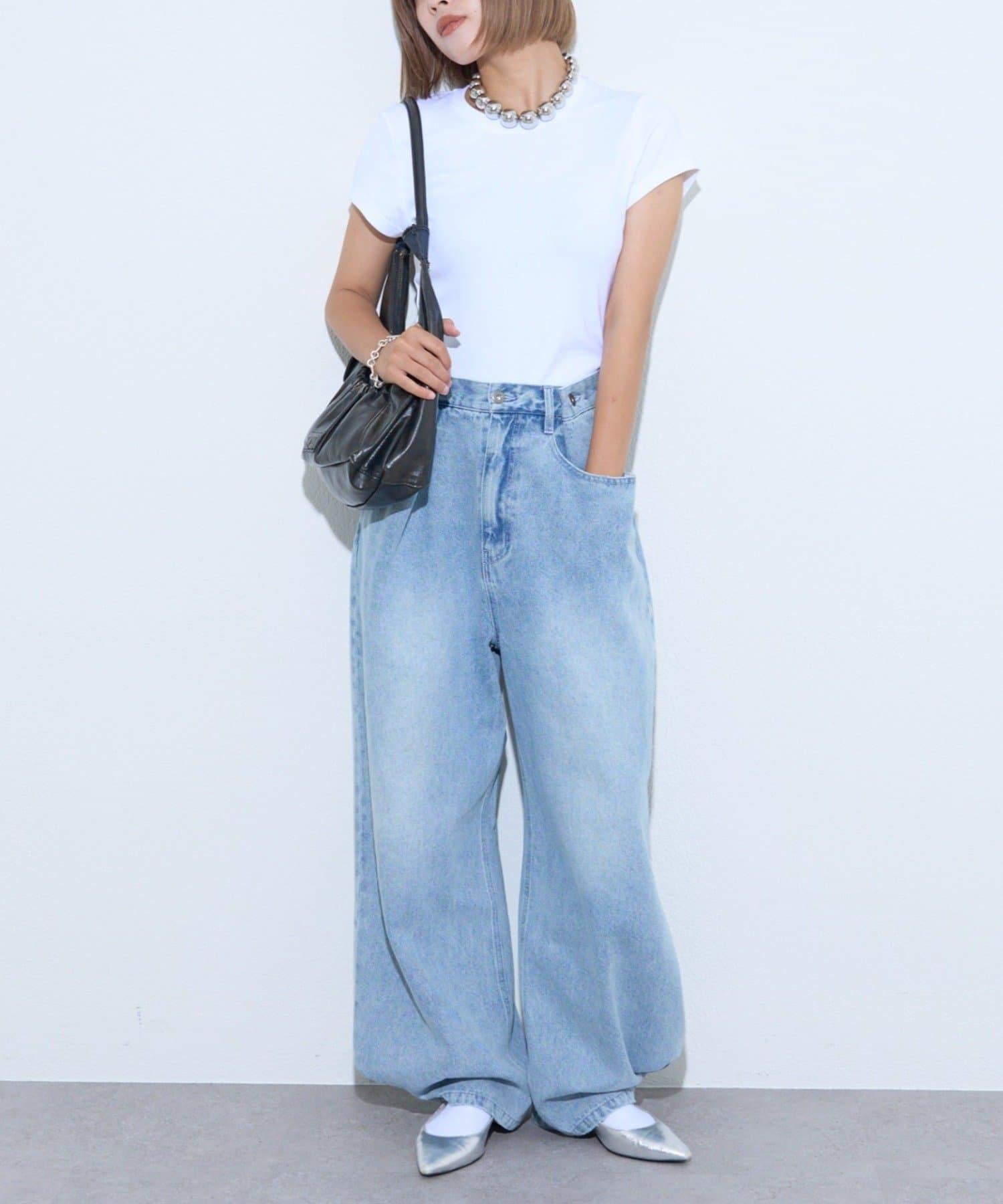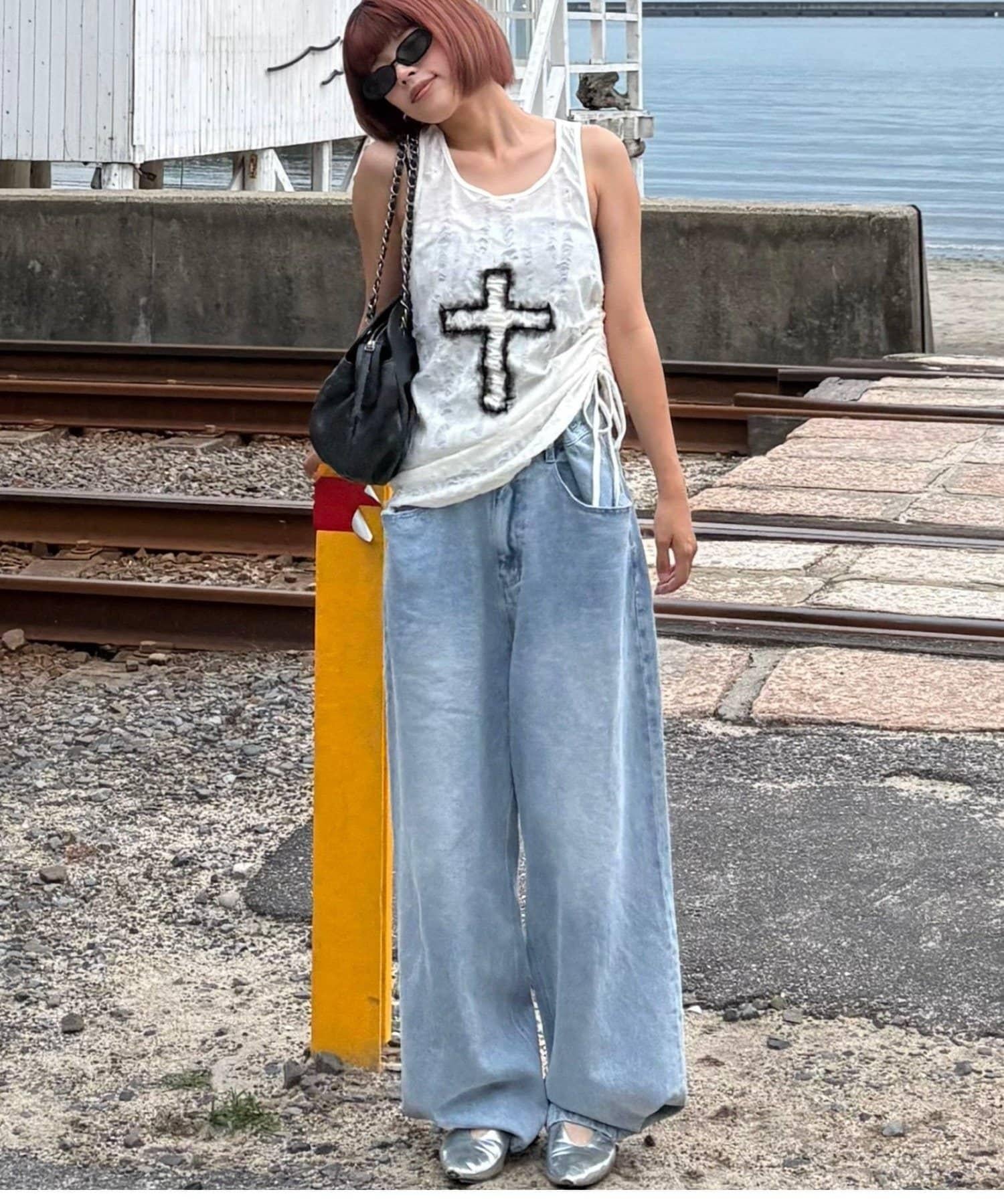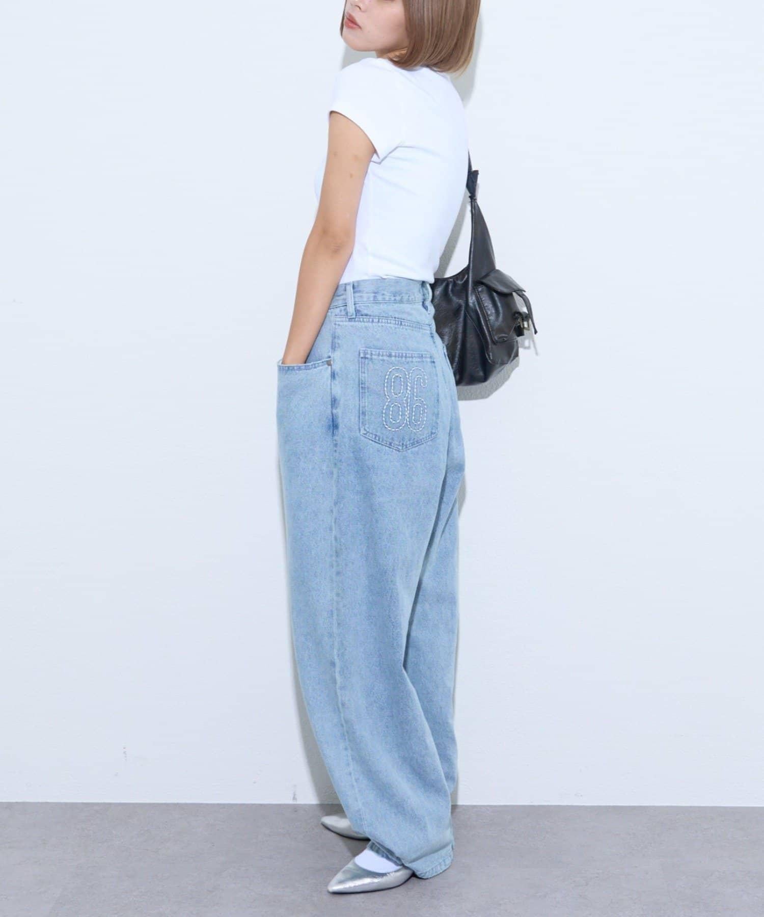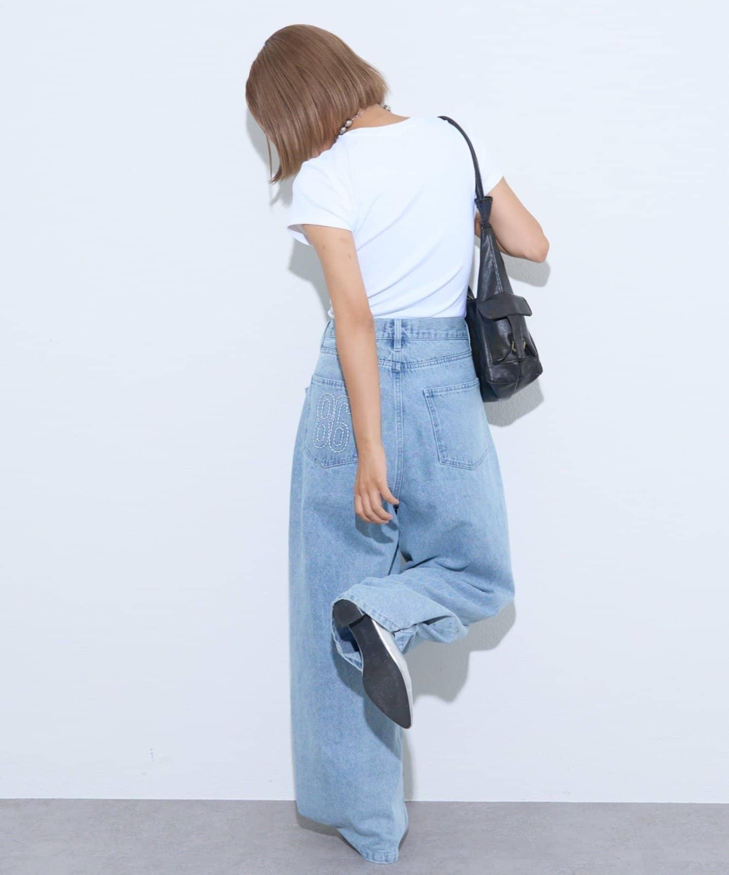 這款牛仔褲是全場的主角,可搭配簡單的上衣,完成協調的造型!
