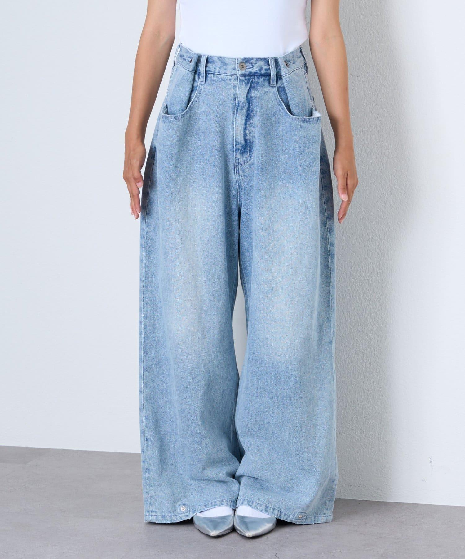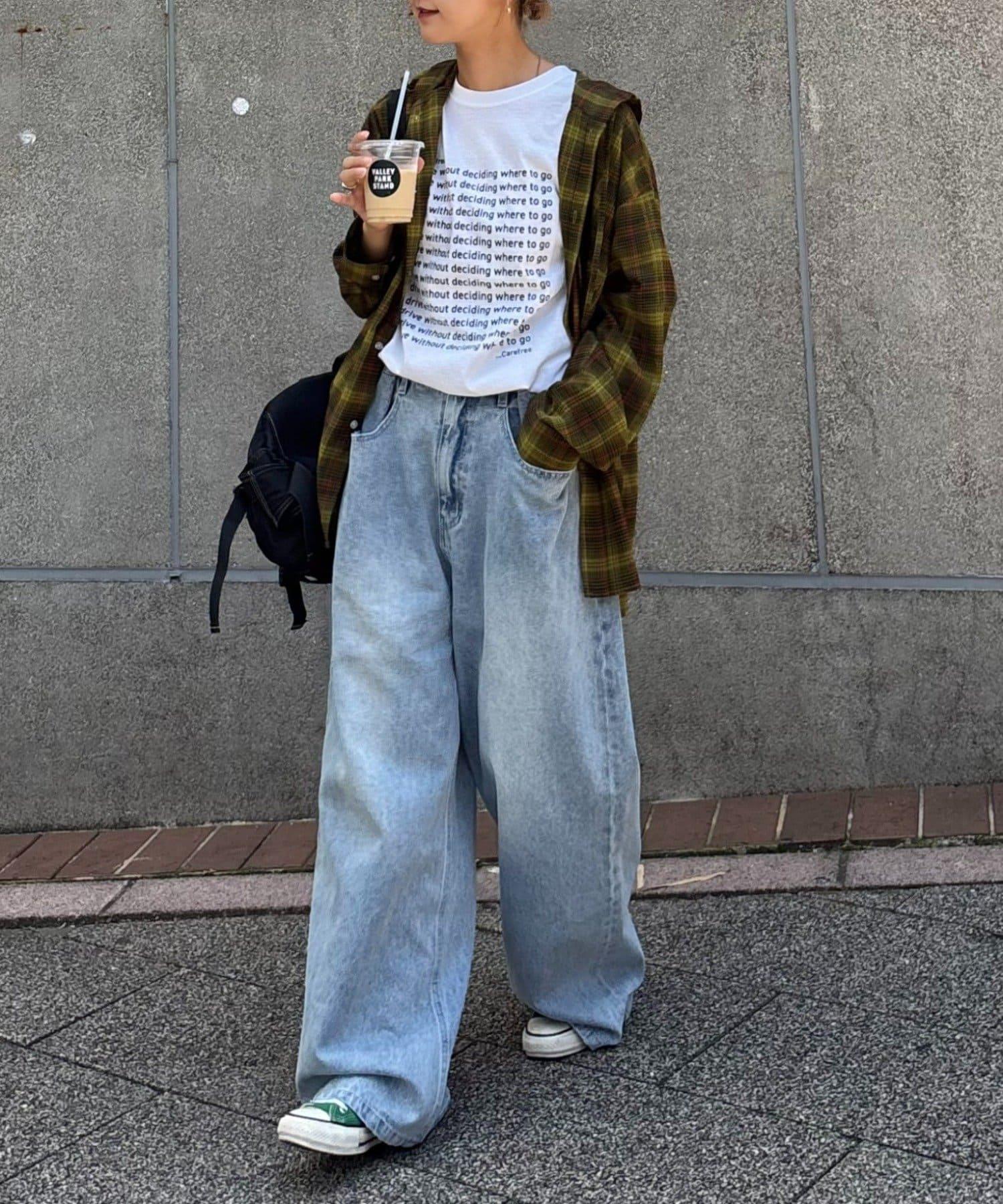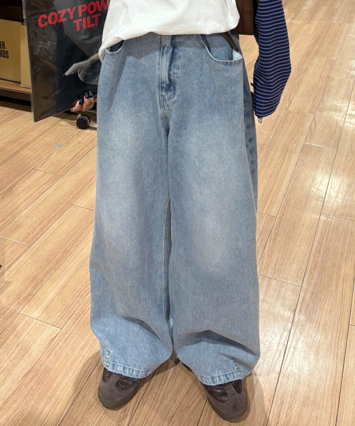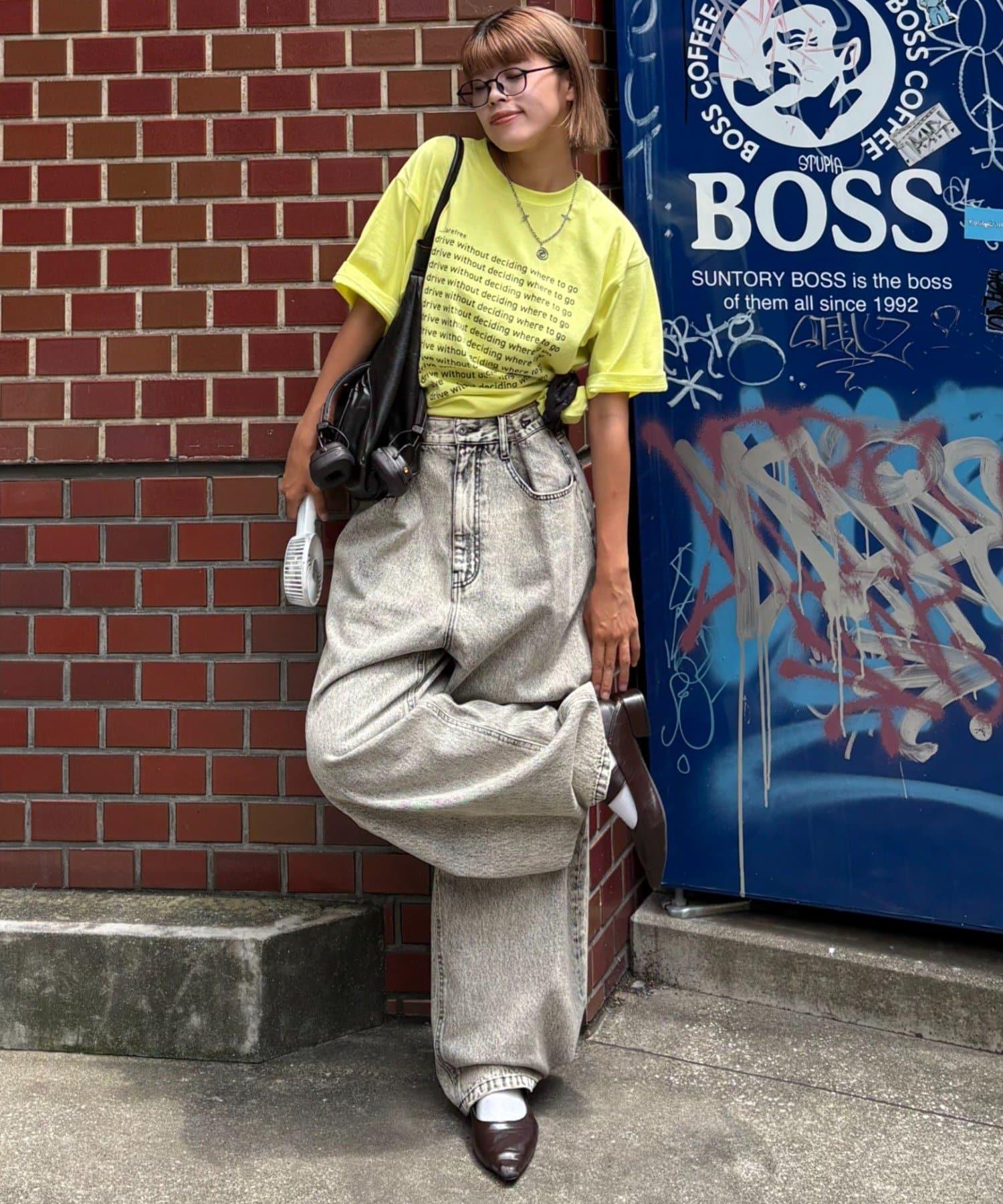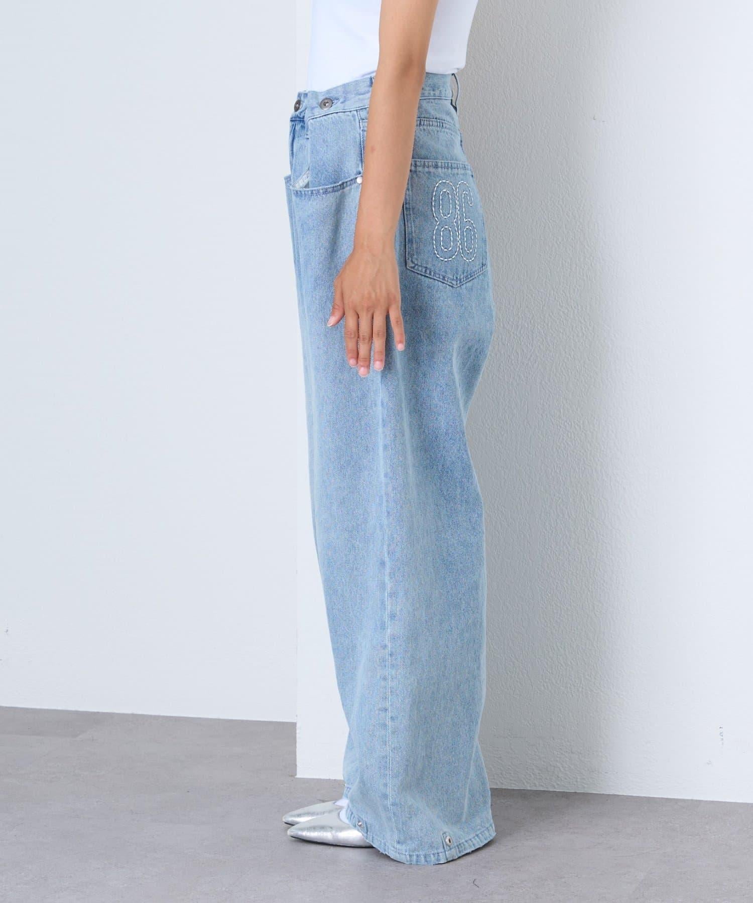 這款牛仔褲是全場的主角,可搭配簡單的上衣,完成協調的造型!