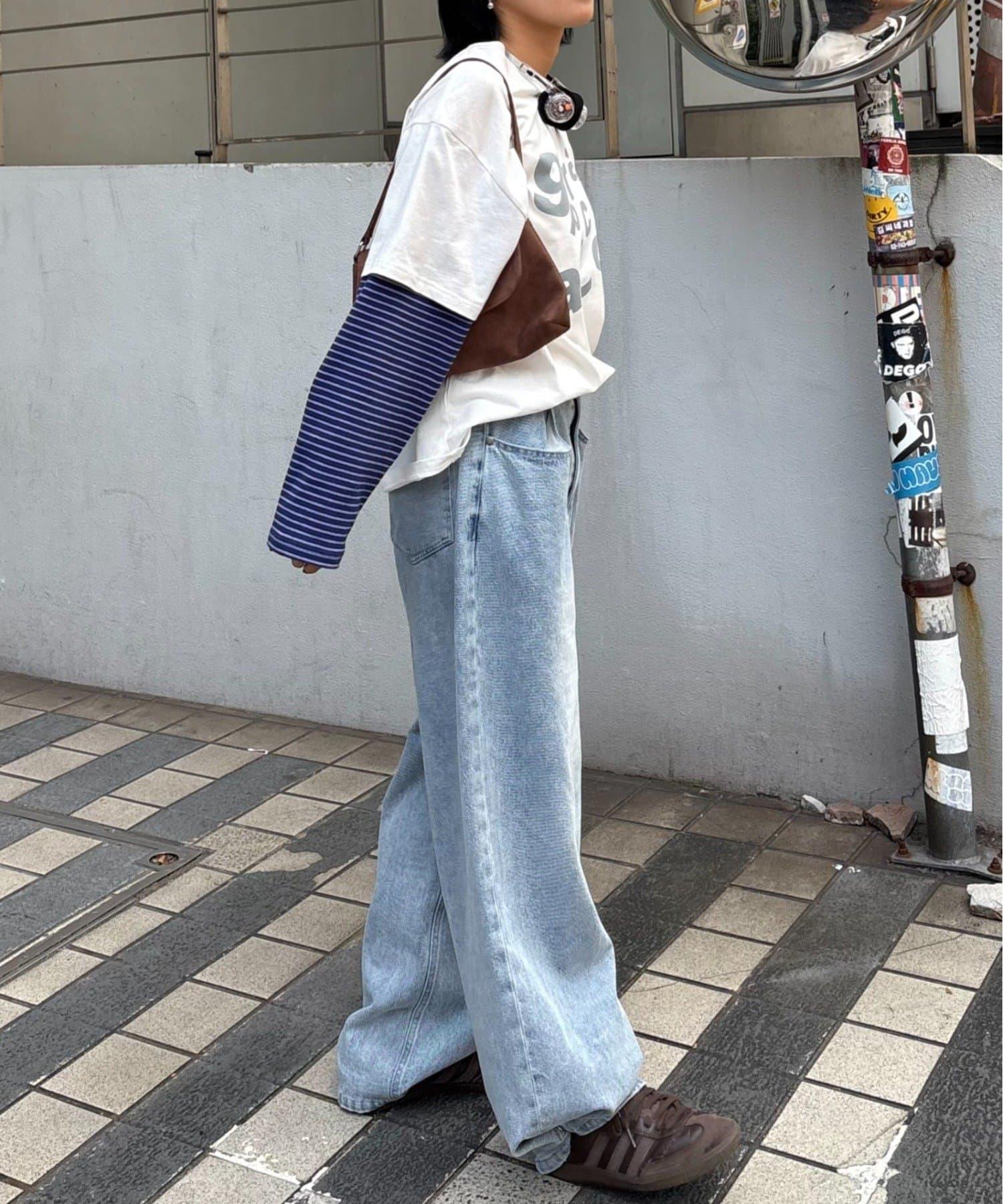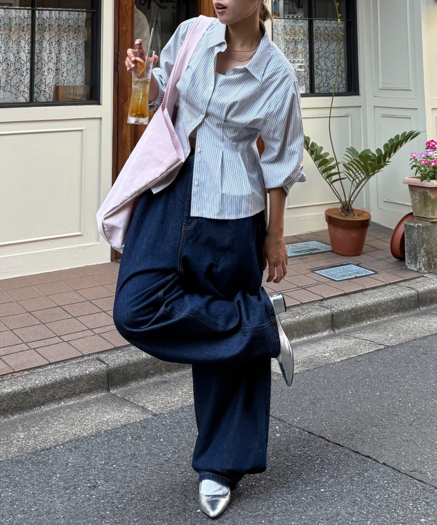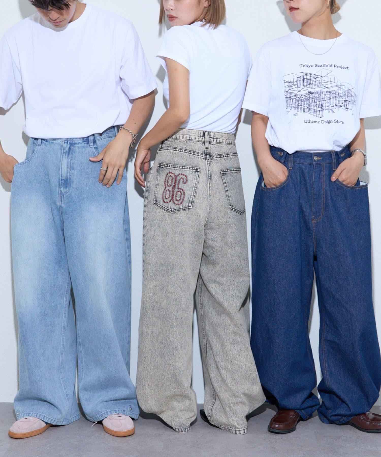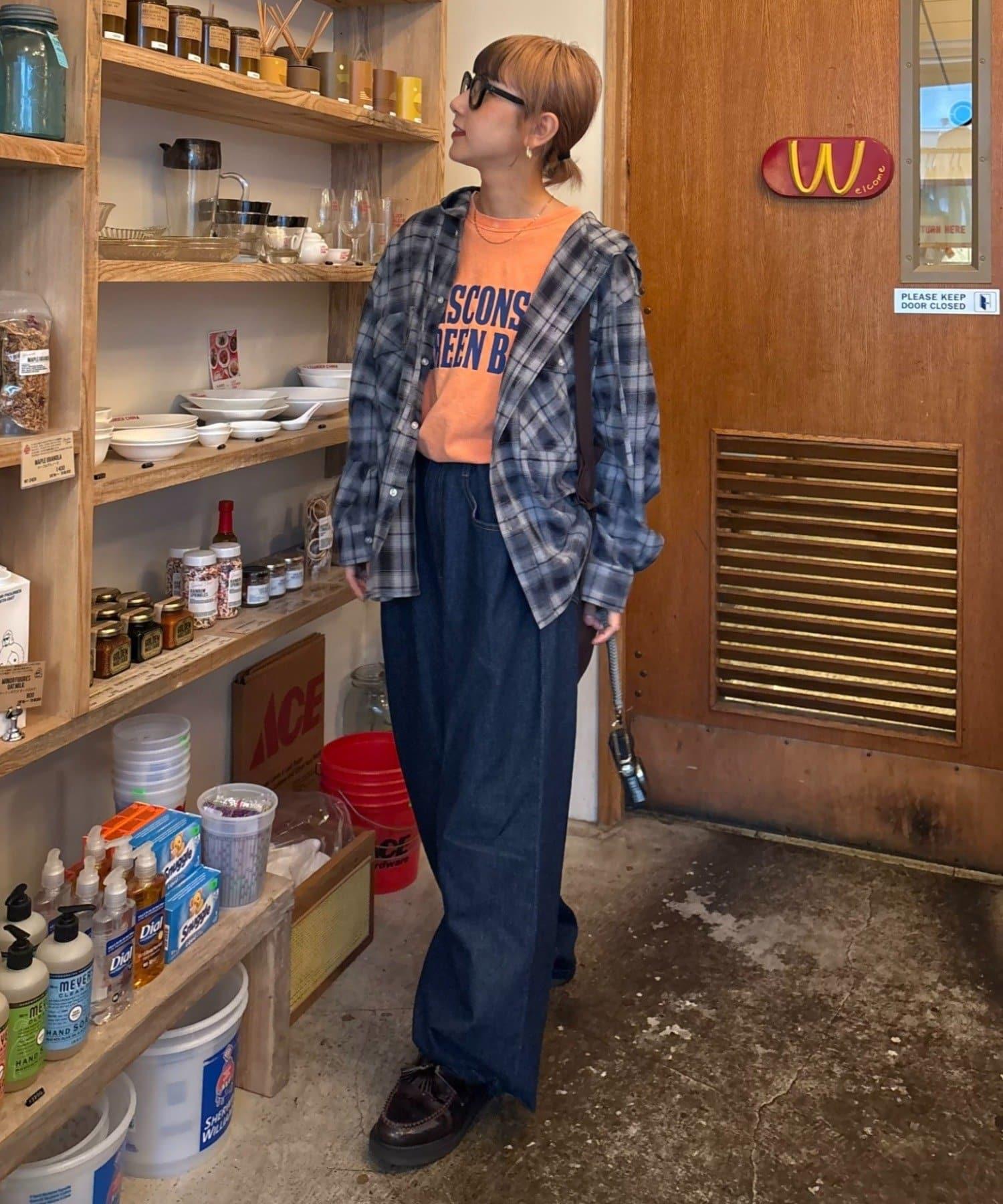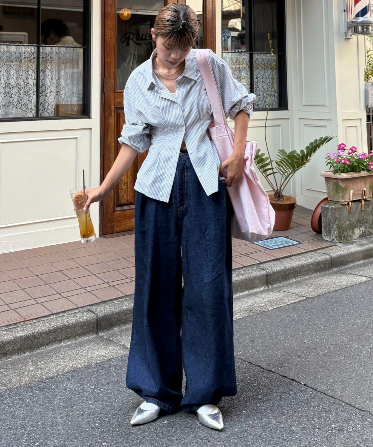 這款牛仔褲是全場的主角,可搭配簡單的上衣,完成協調的造型!