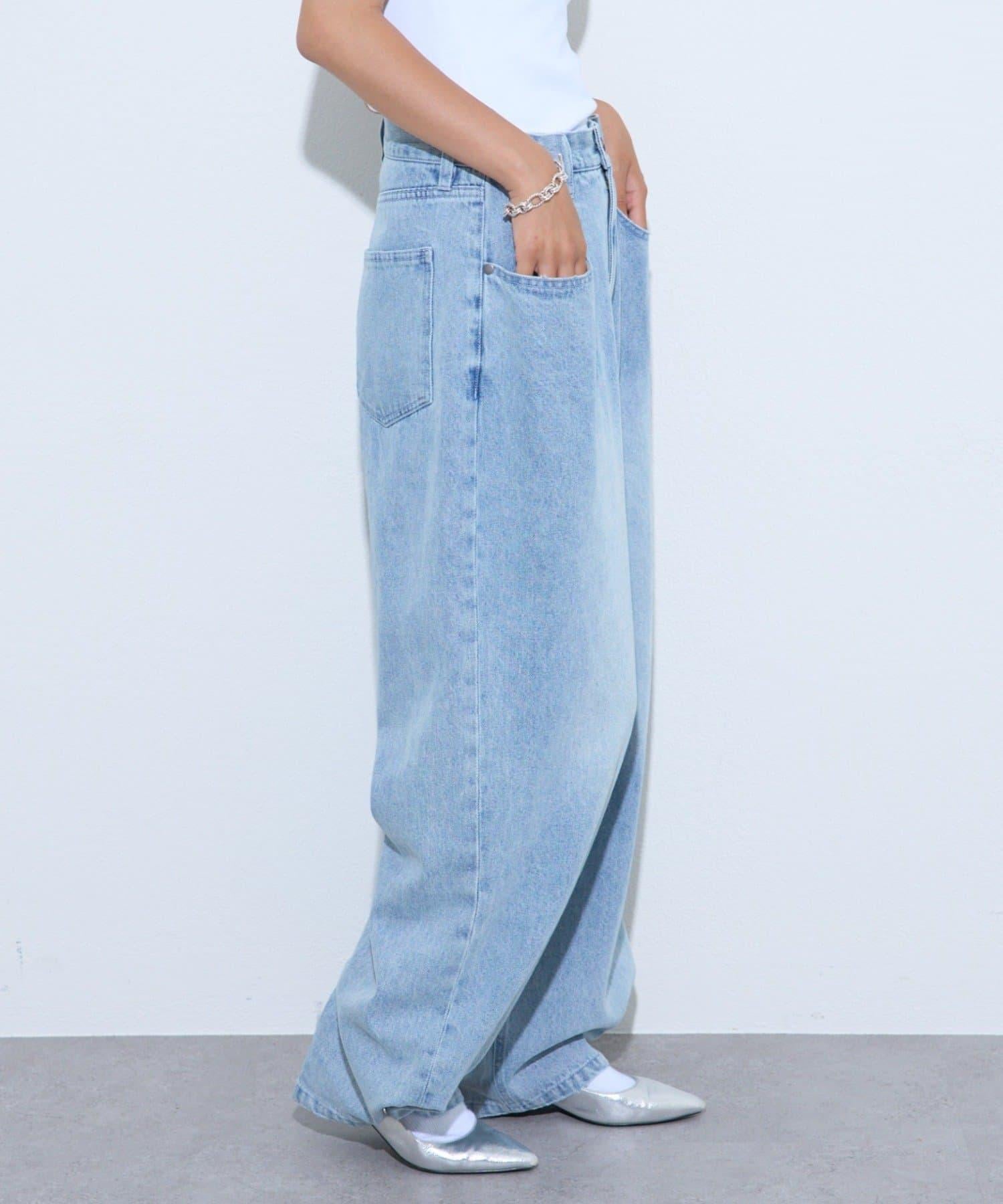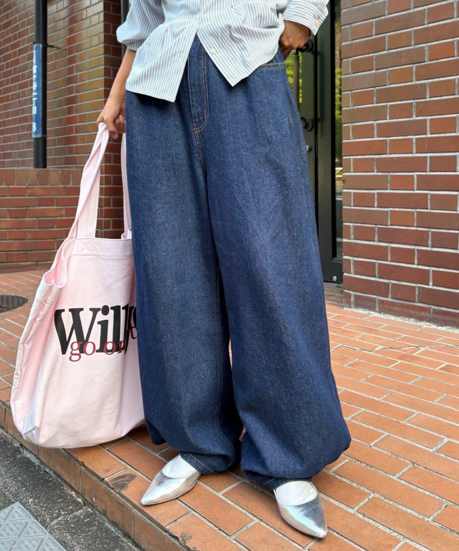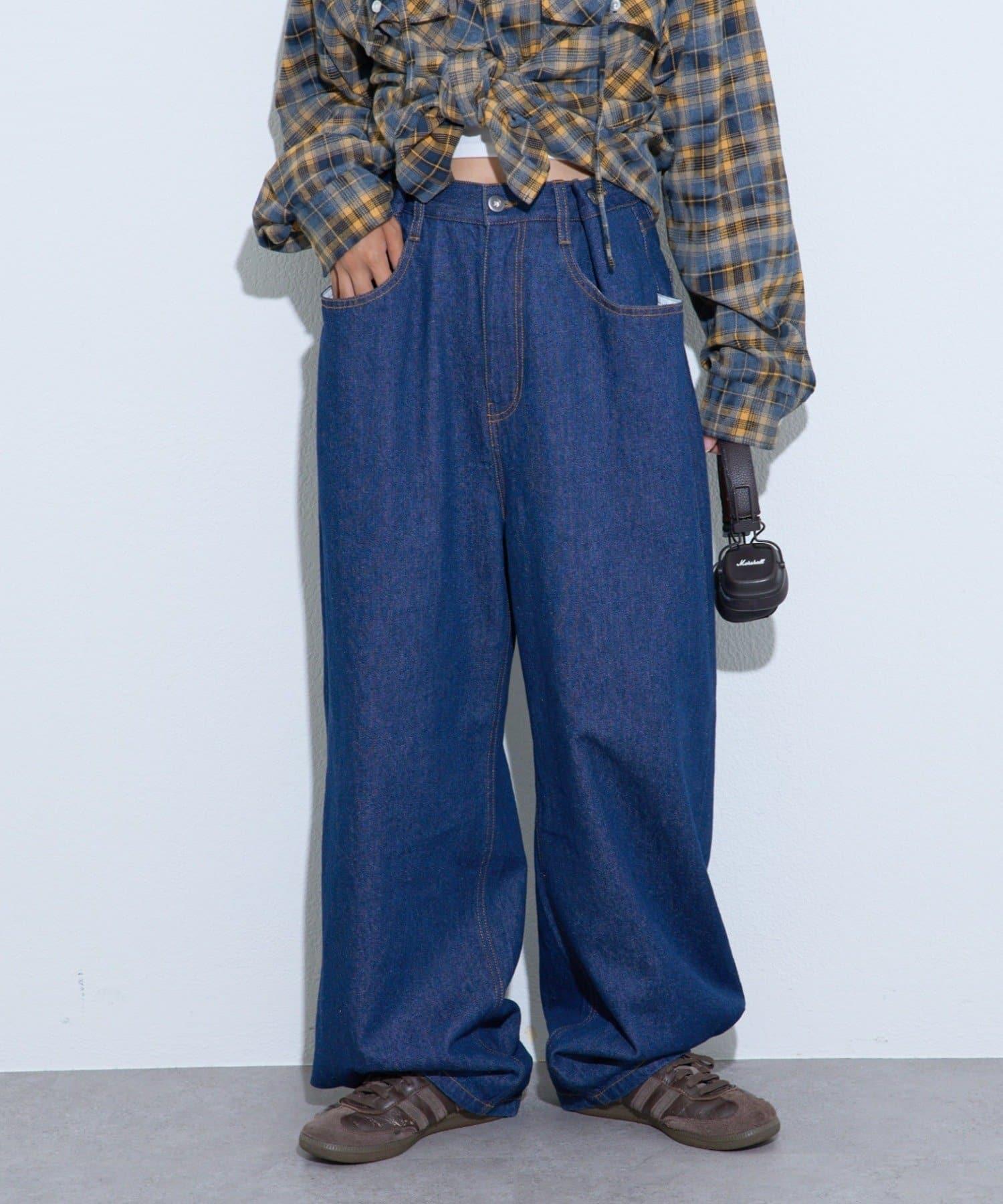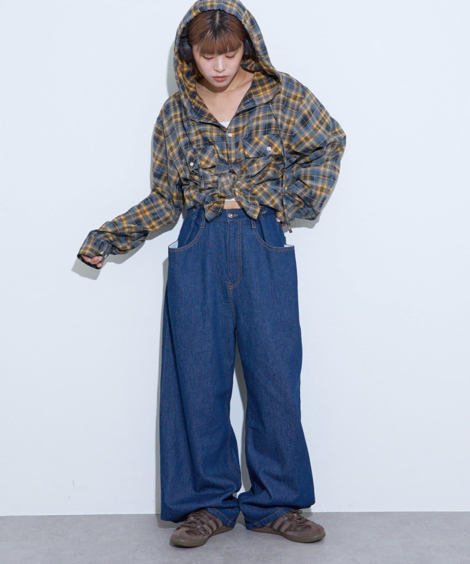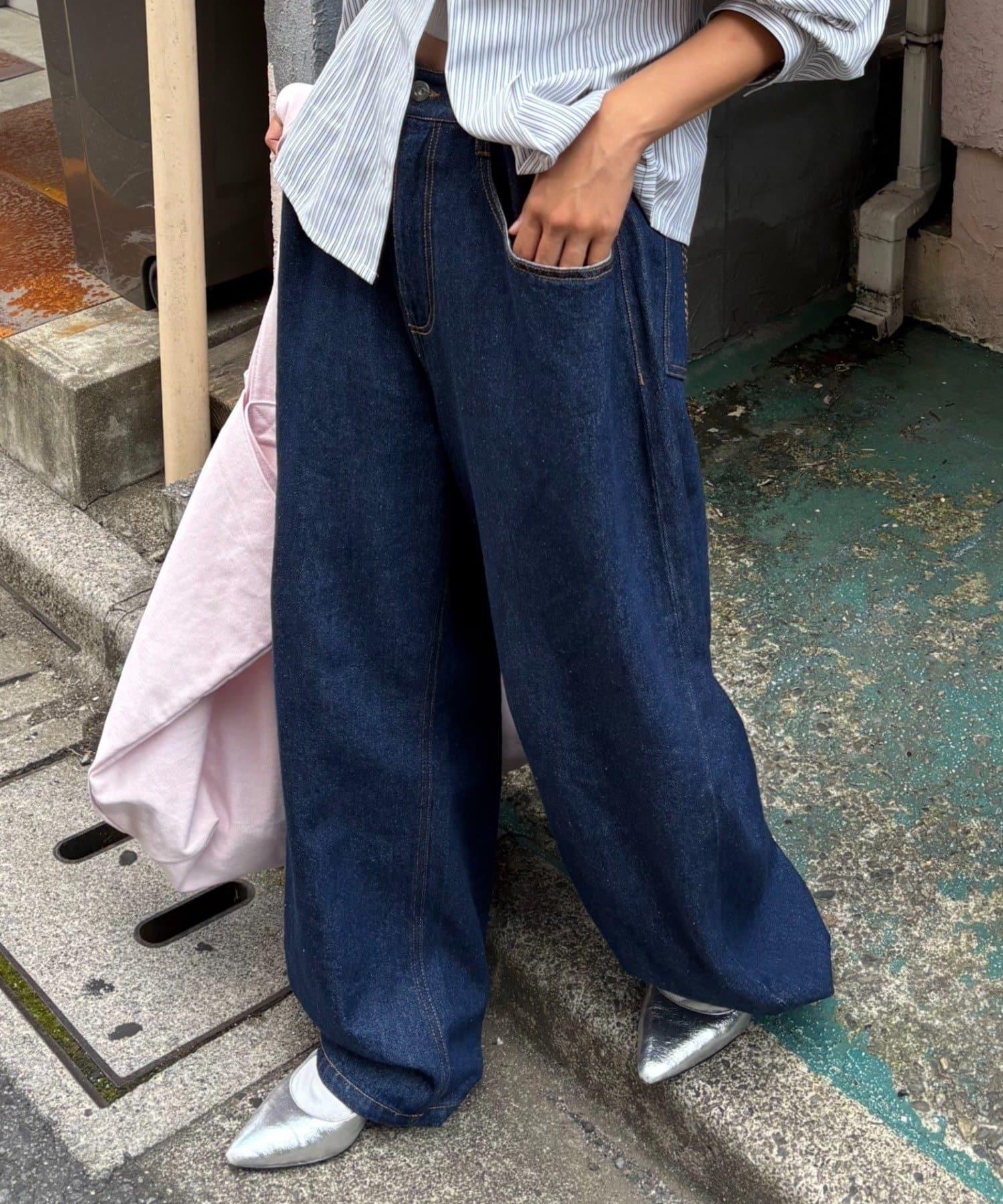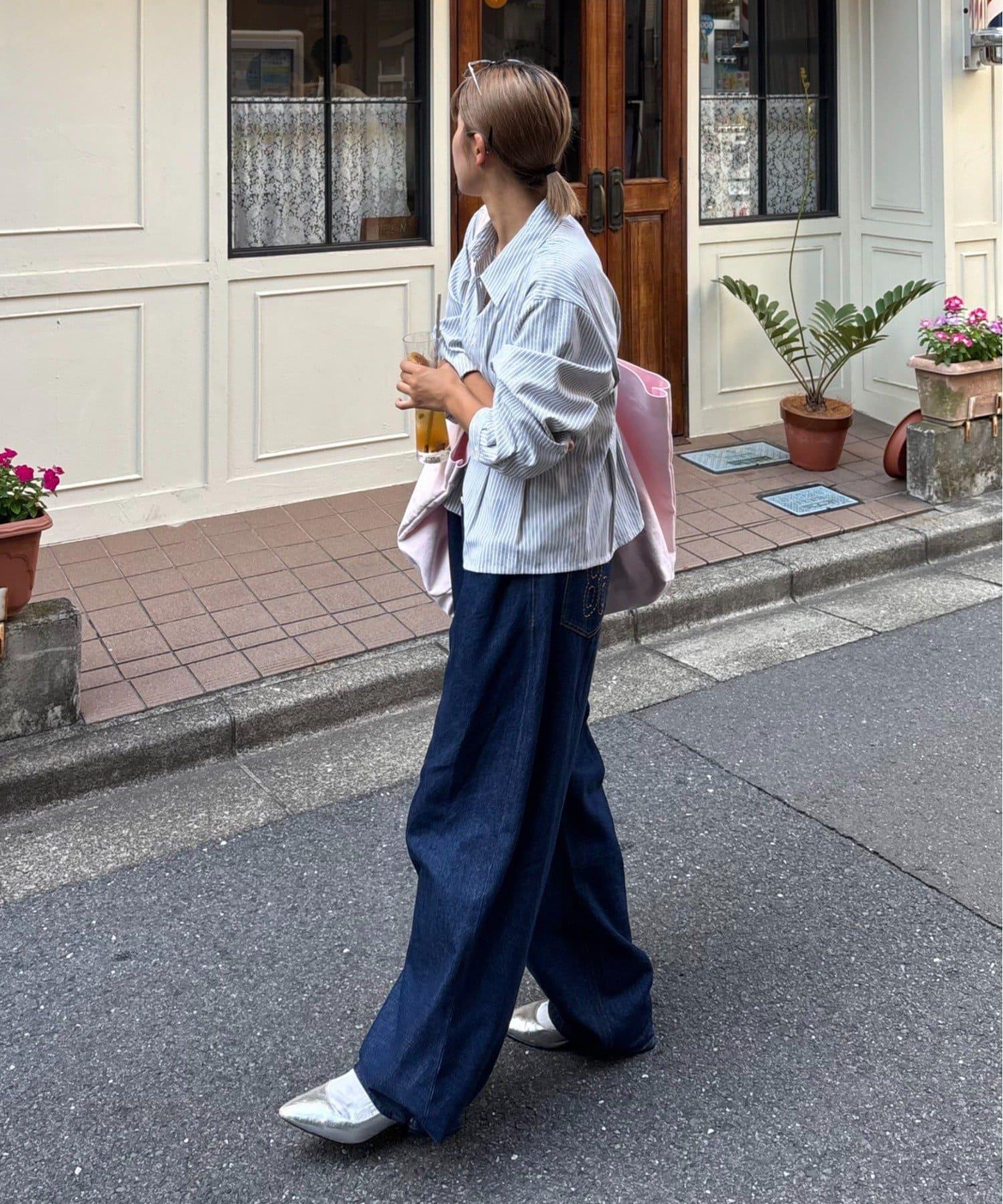 這款牛仔褲是全場的主角,可搭配簡單的上衣,完成協調的造型!